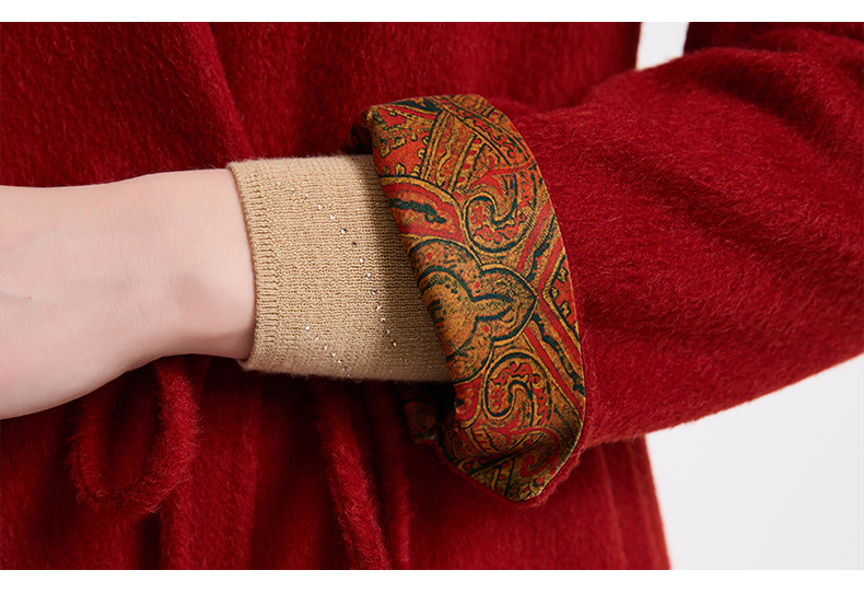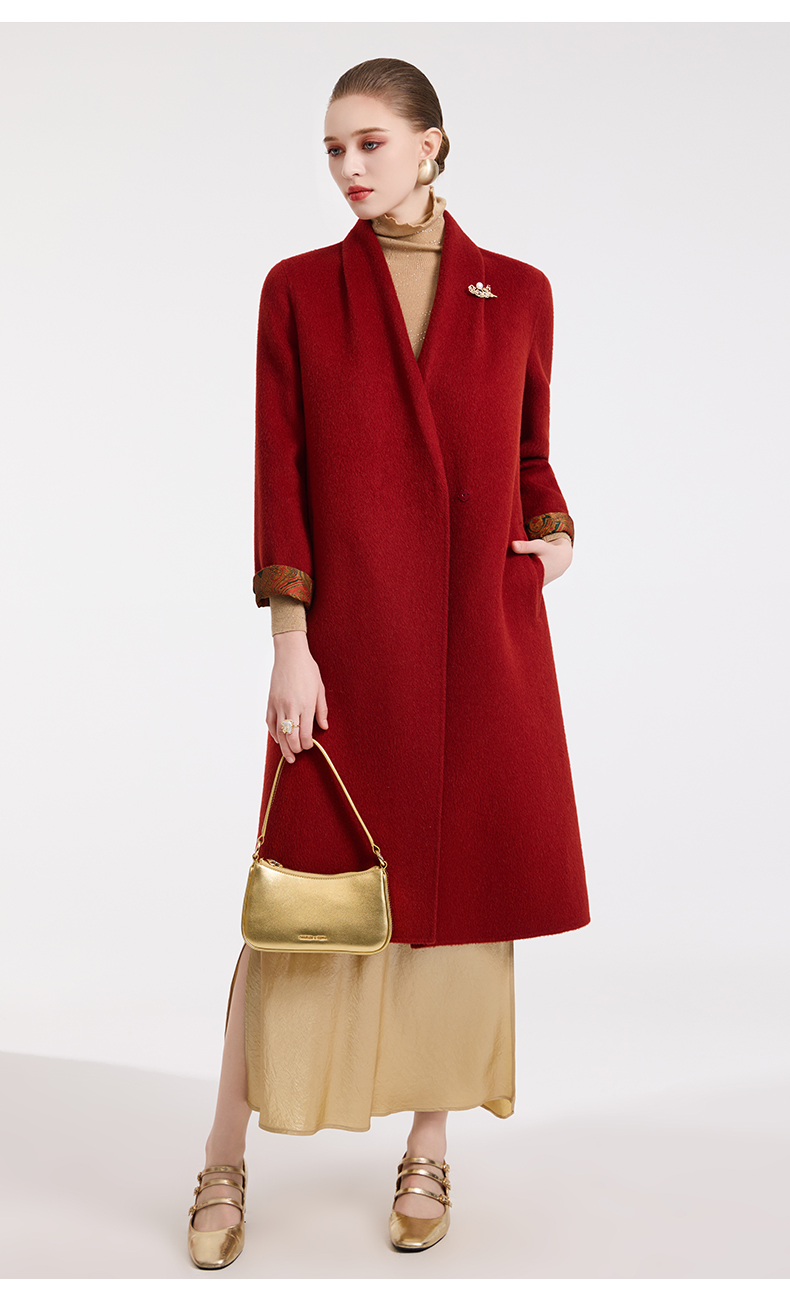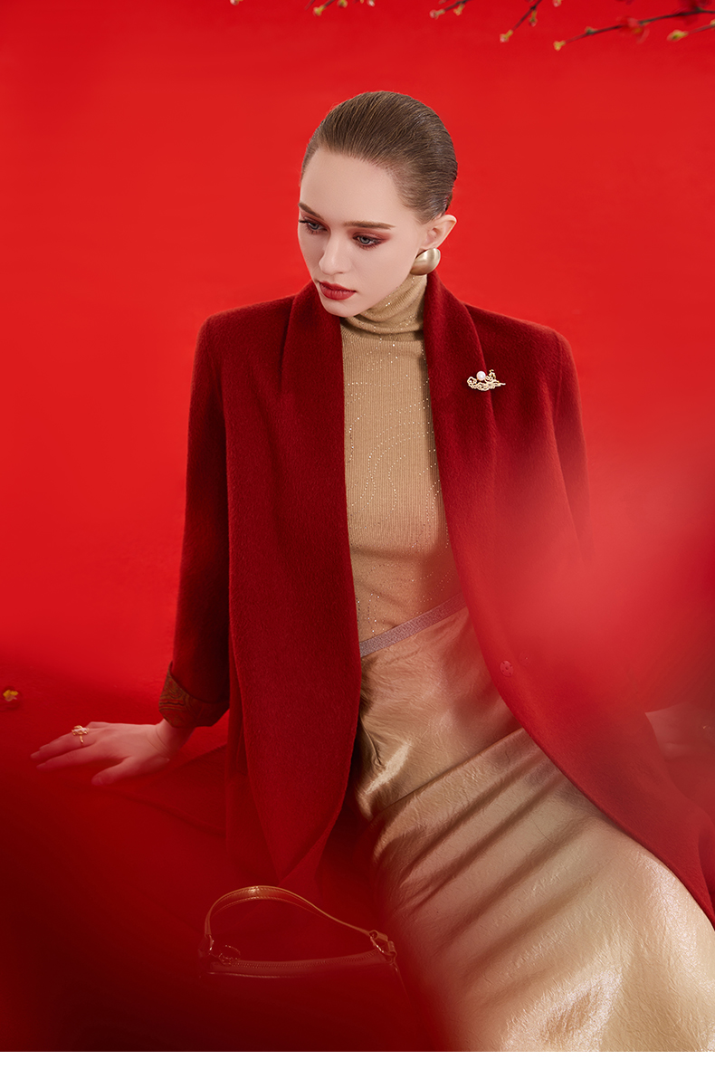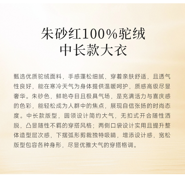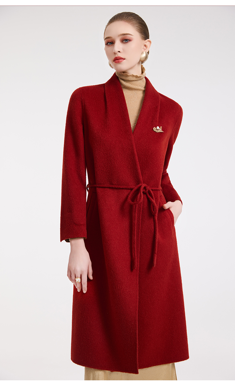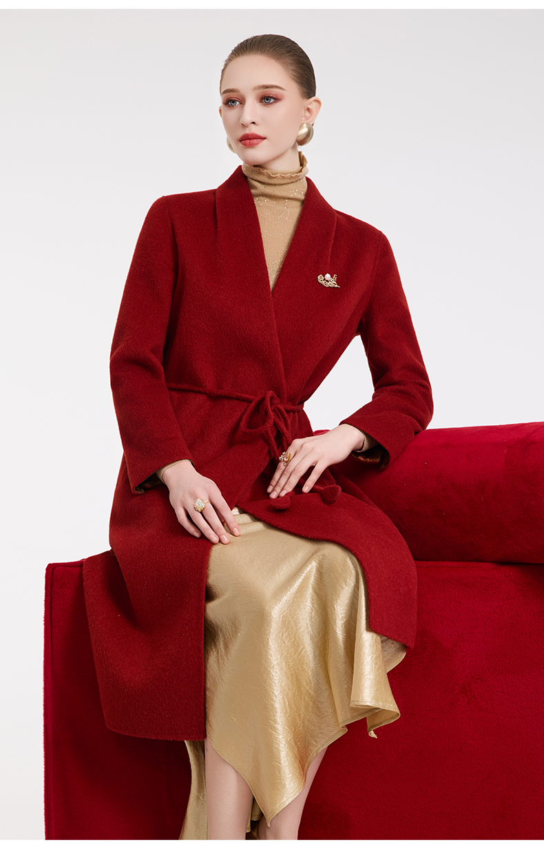 乔万尼100%驼绒气场朱砂红高级感中长款毛呢大衣ED4A740