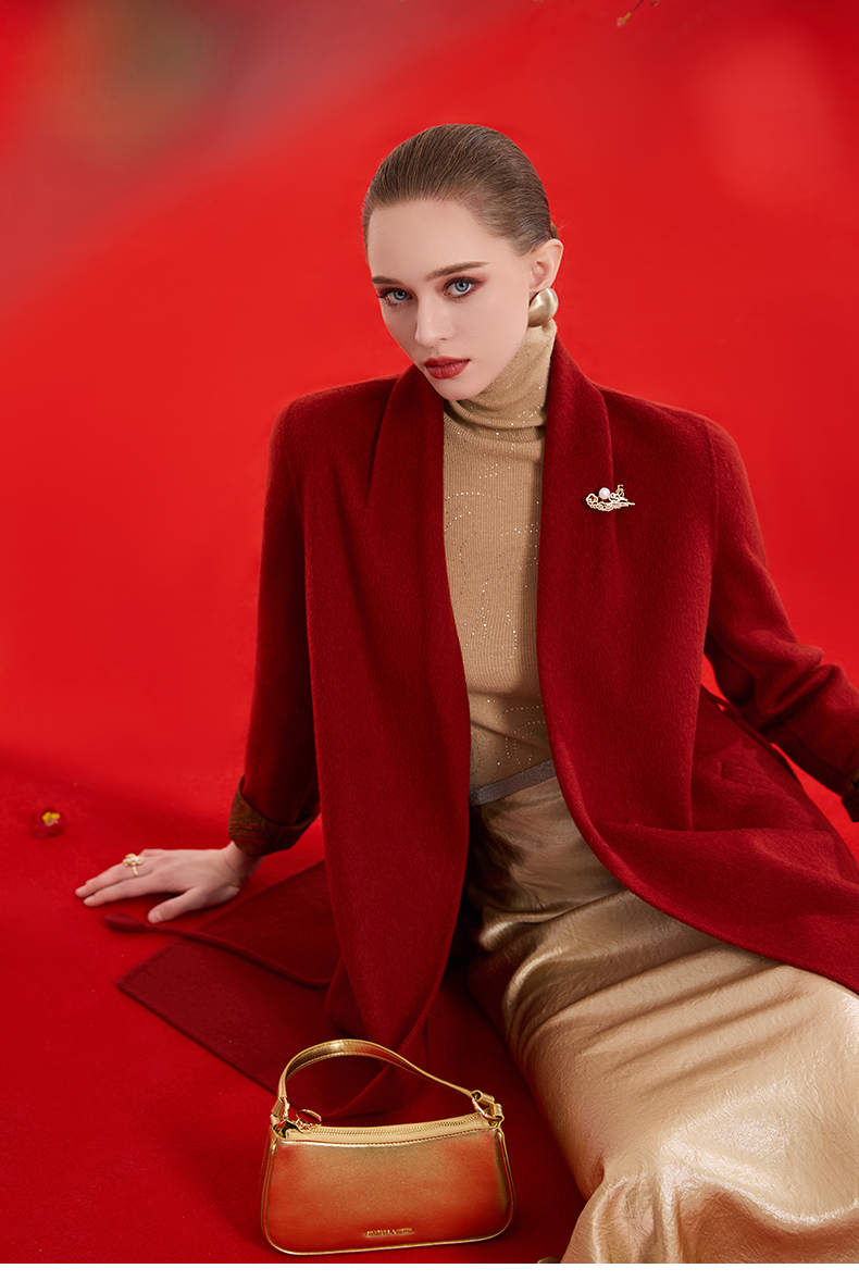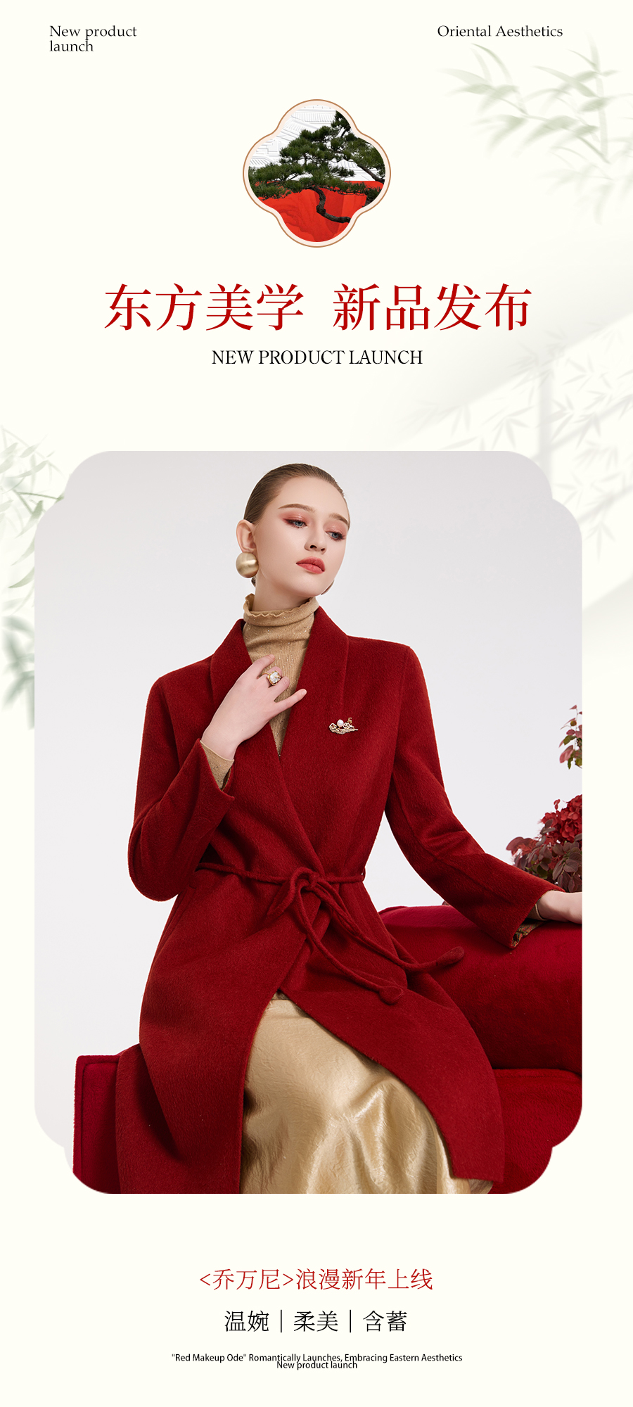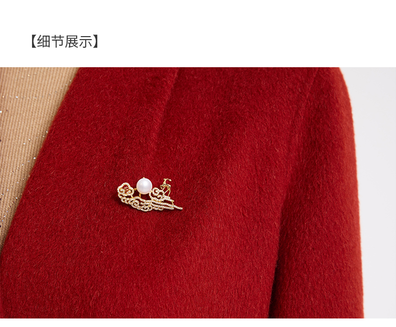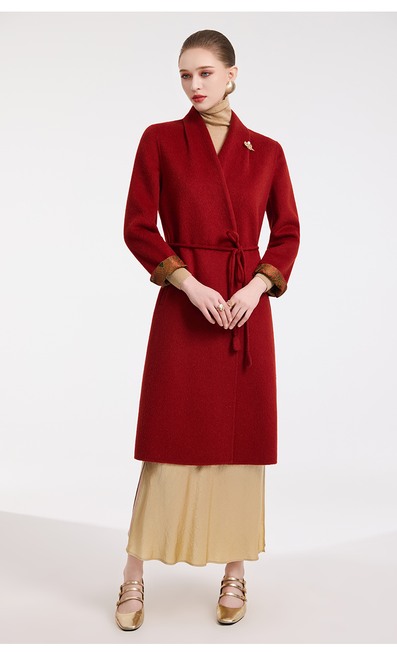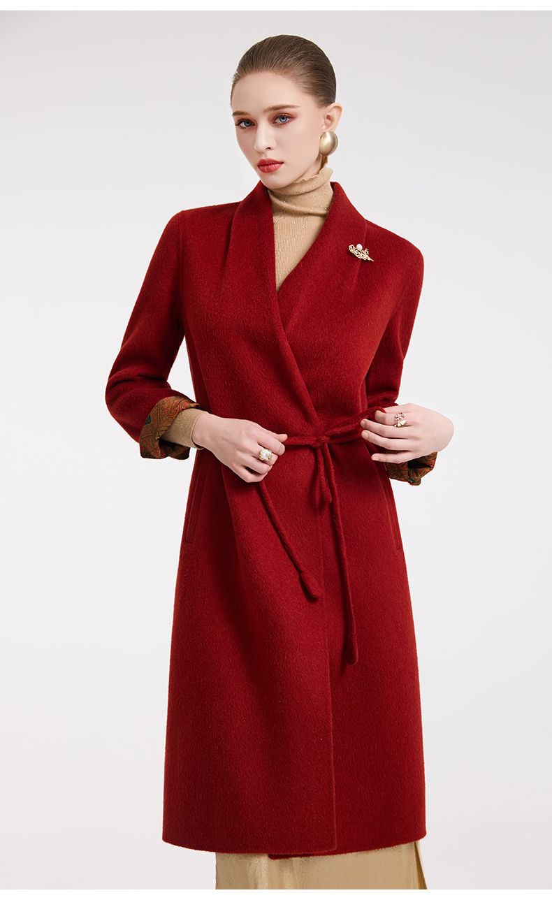 乔万尼100%驼绒气场朱砂红高级感中长款毛呢大衣ED4A740