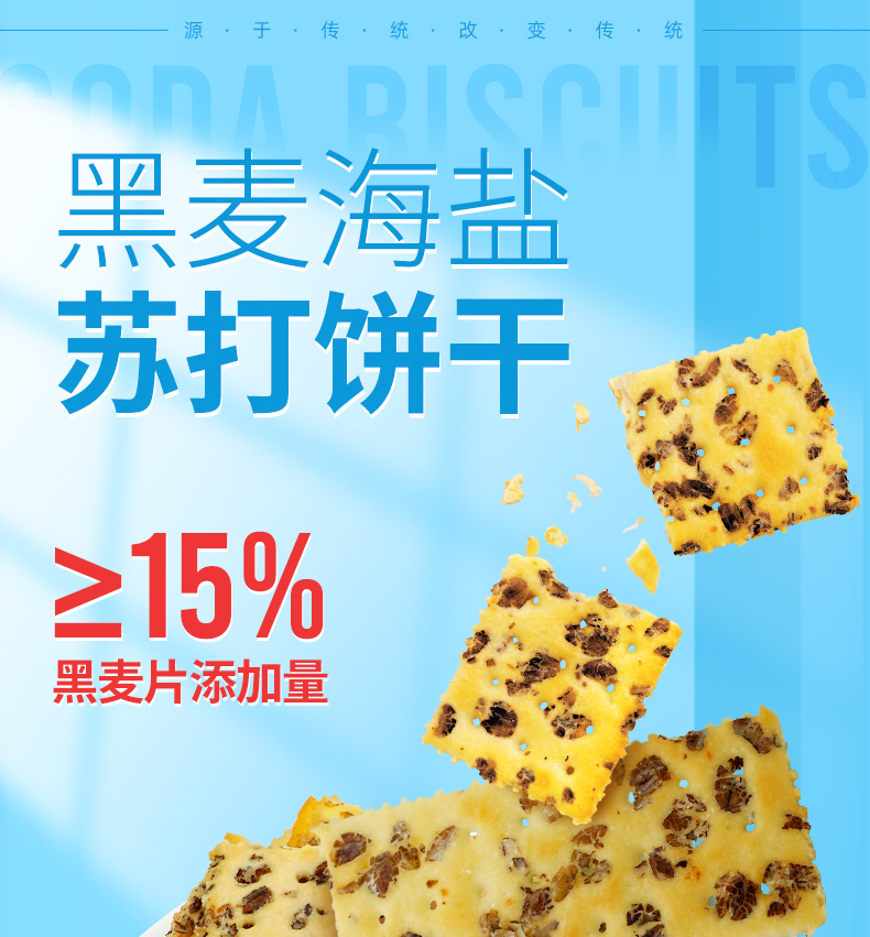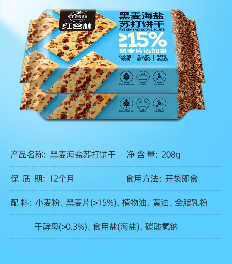 红谷林黑全麦黑芝麻苏打饼干208g碱性饼干黑麦海盐苏打奇亚籽苏打饼干