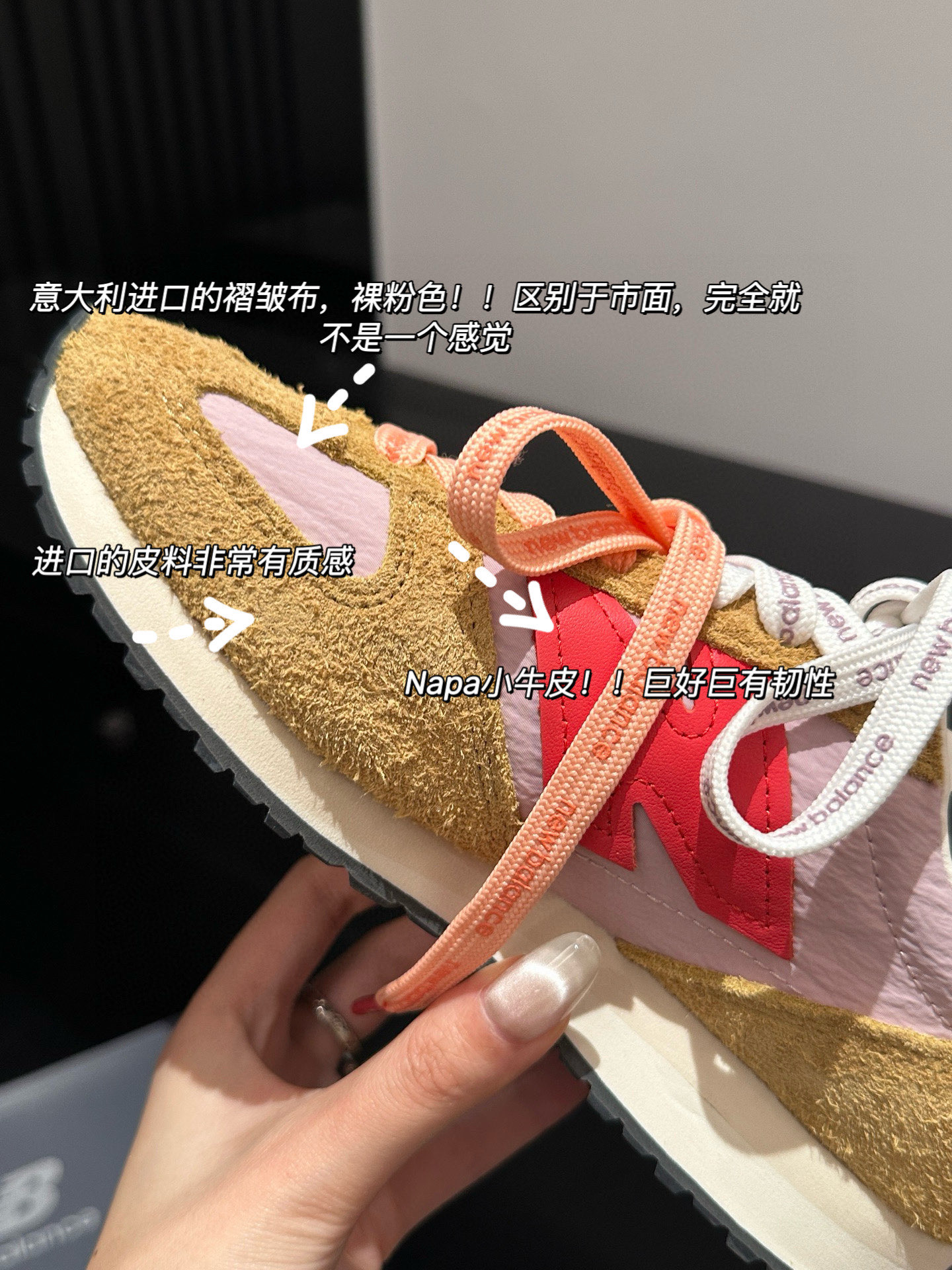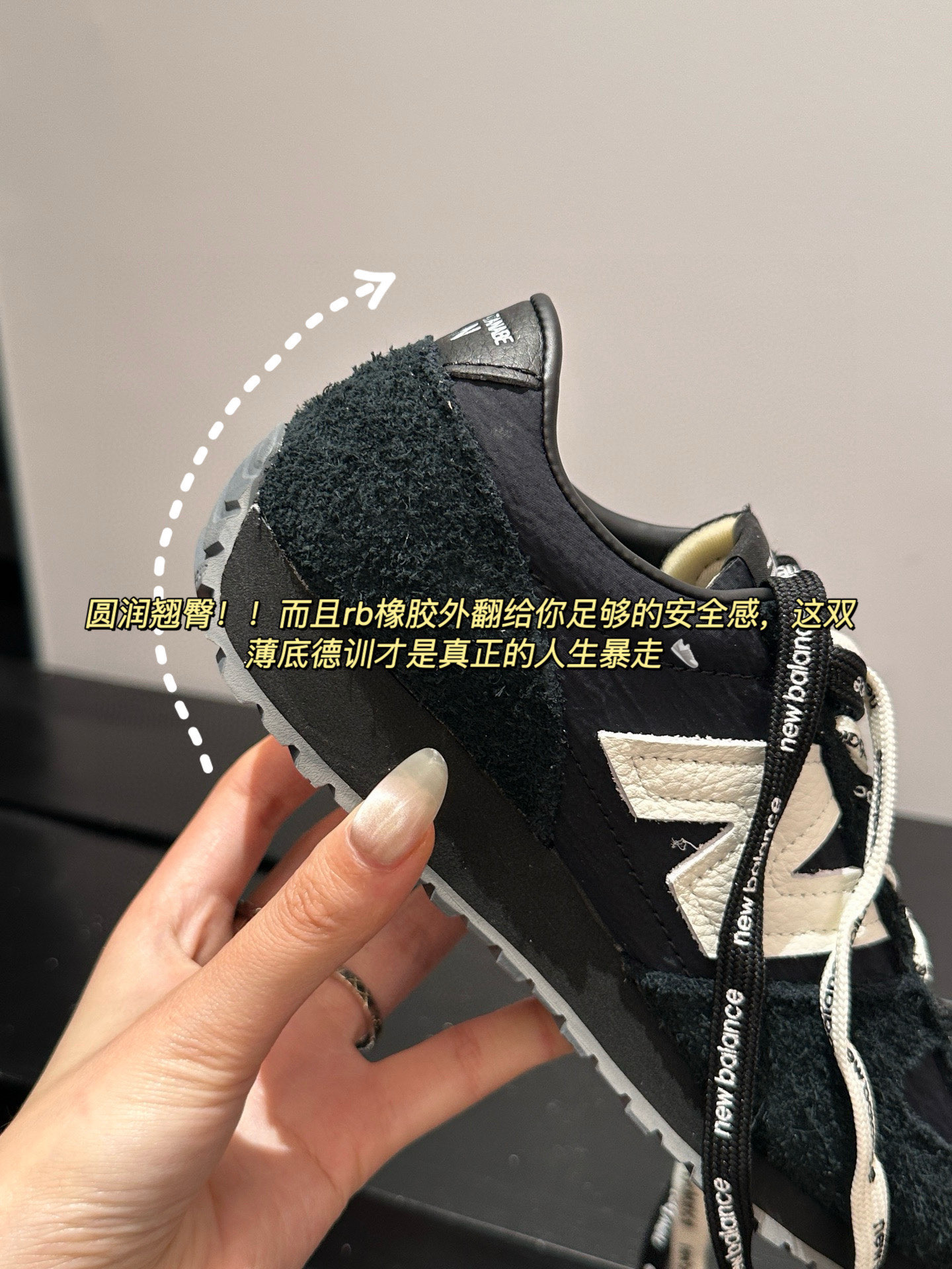 重点看鞋型❗️太正了!!唯一一单原楦的 在薄底和舒适度直接做到了很好的平衡!!只有真正上脚你才能懂它的魅力 简直就是爆发的黑马!!它以1976年封神跑鞋320为原型改版升级,用纤细鞋楦+低帮薄底设计,完美平衡复古灵魂与解构风,并且延续薄底轻量化让你暴走无压力,这双鞋必须要用原厂的鞋楦才能出来这个味道❗️ 前掌加宽,后跟收拢,足弓有支撑上脚是真的好看!非常秀气,流线型很好