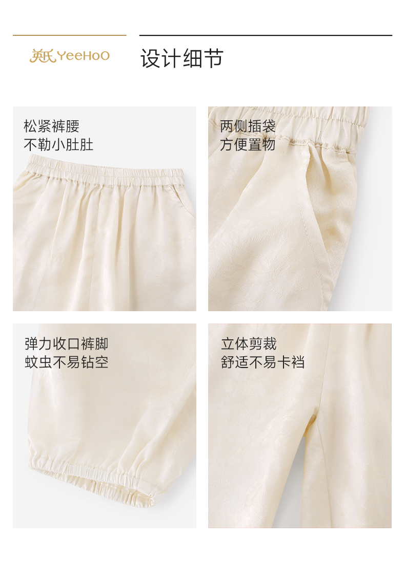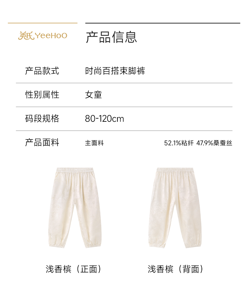 【高定系列】英氏儿童裤子女童夏季薄款长裤浅香槟色束脚裤26新款