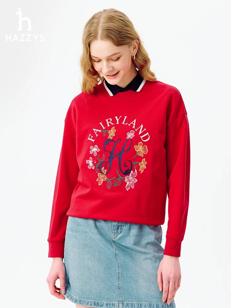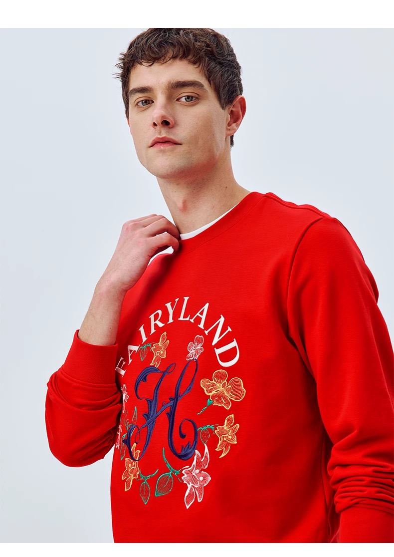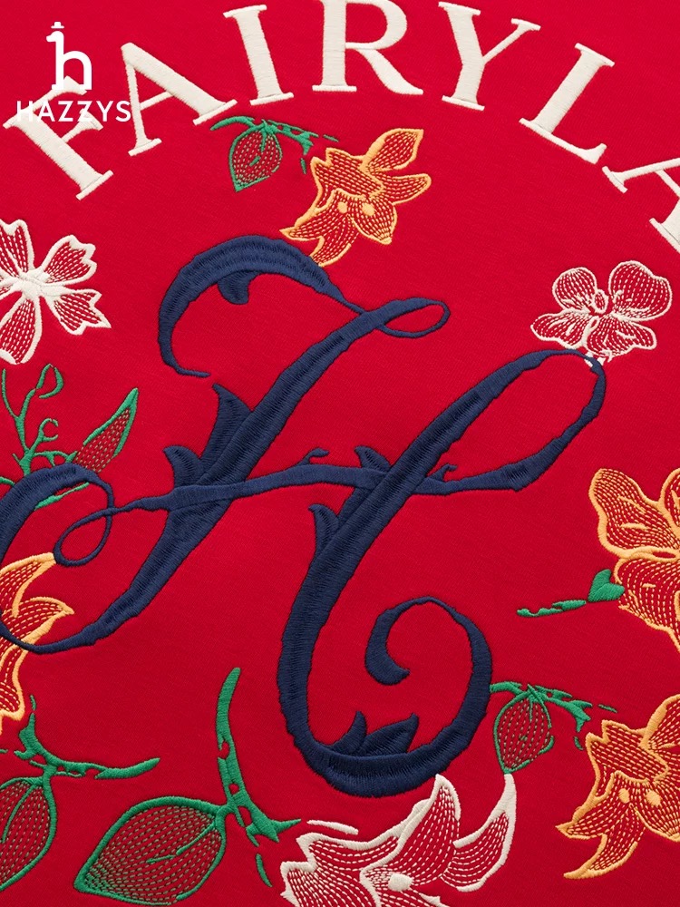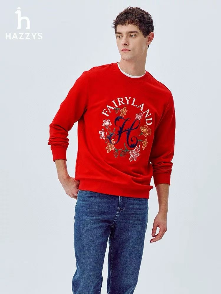 Hazzys哈吉斯春夏休闲男士圆领红色