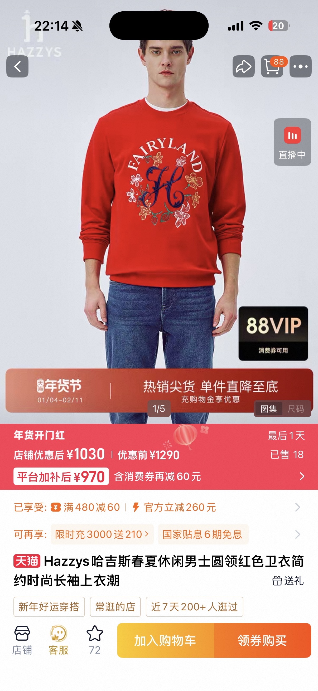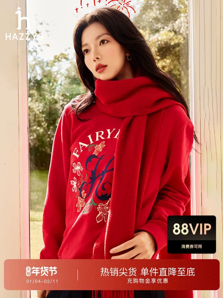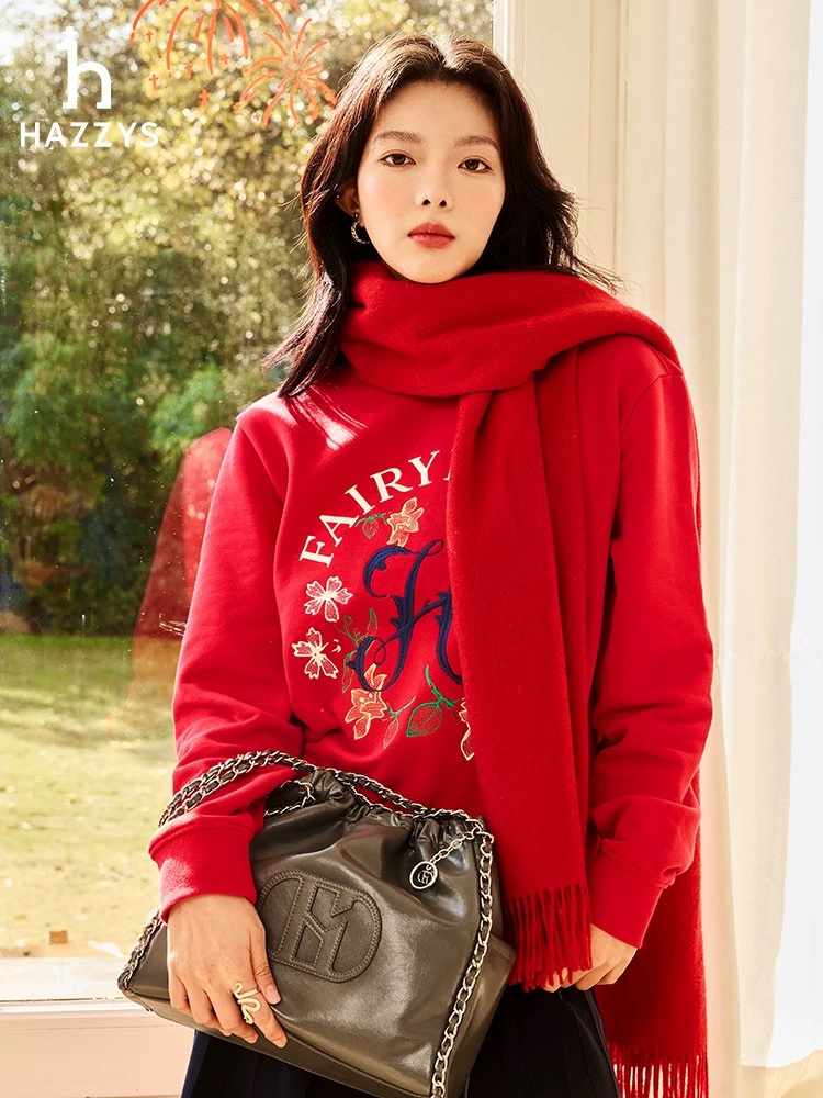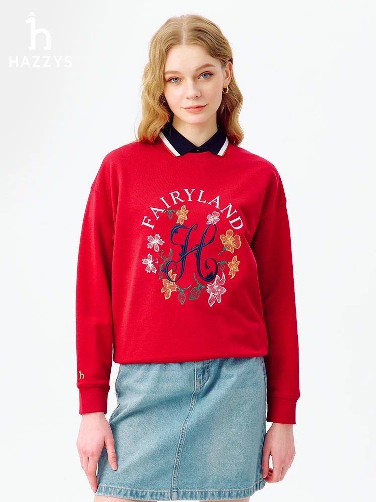 Hazzys哈吉斯春夏休闲男士圆领红色
