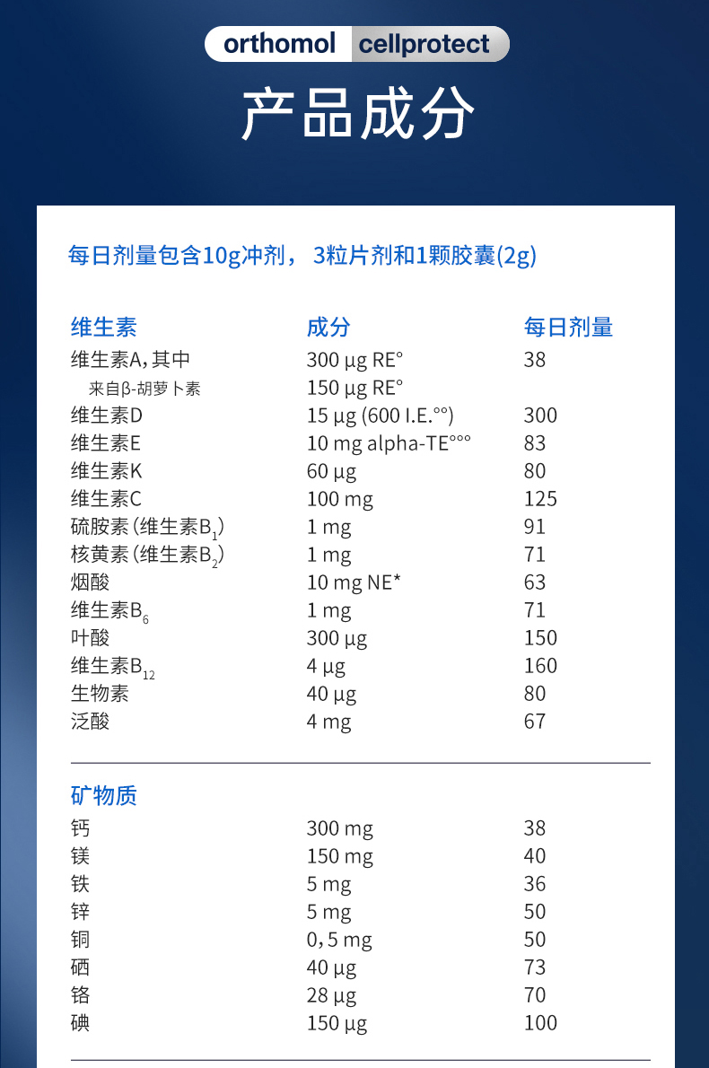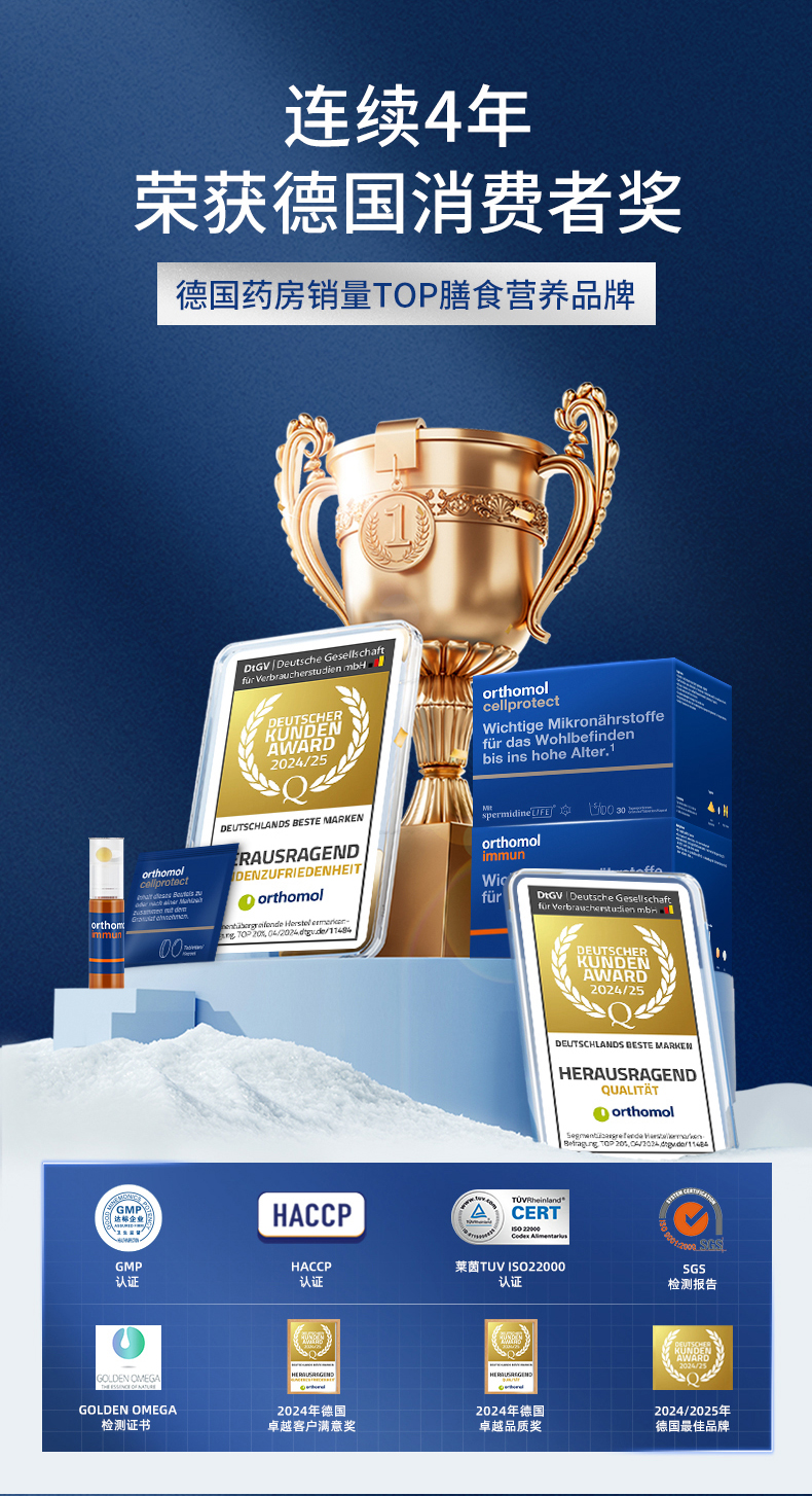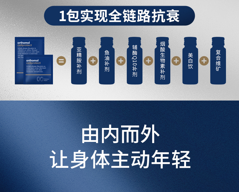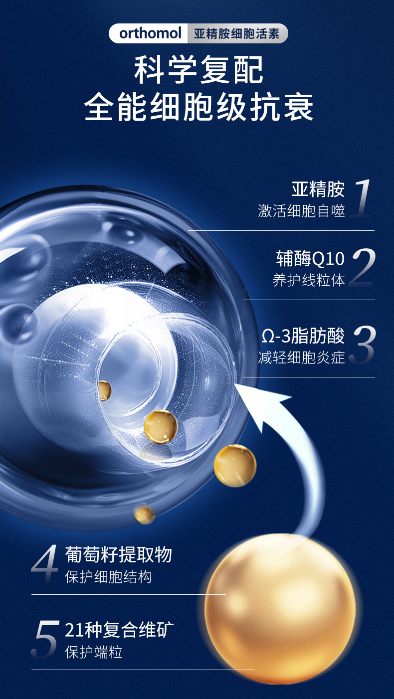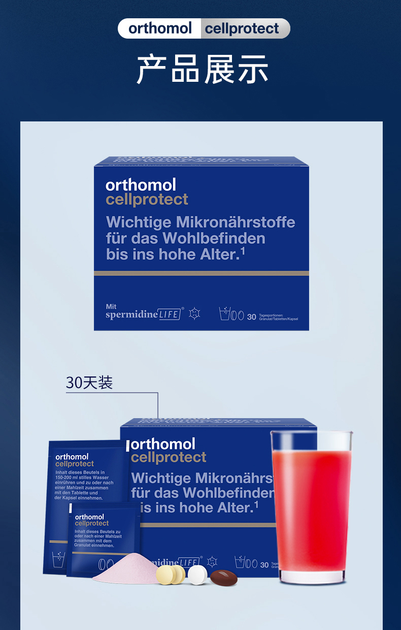 德国进口奥适宝orthomol亚精胺逆龄细胞素线粒体补充剂焕龄CP饮细胞营养素 30包/盒【保税仓放货】