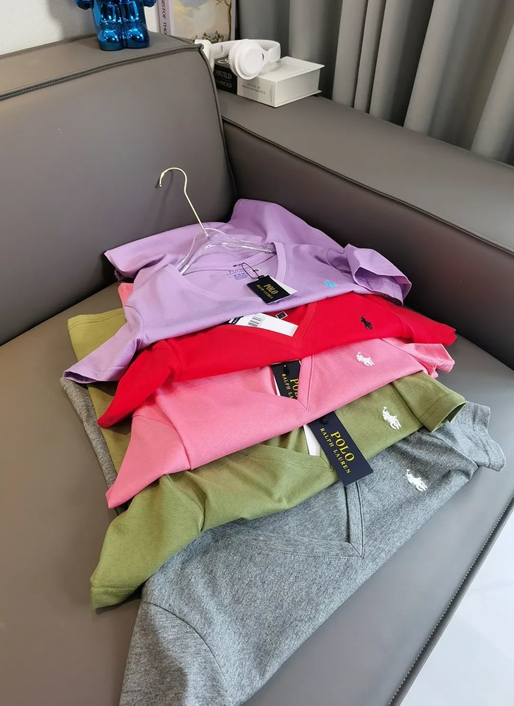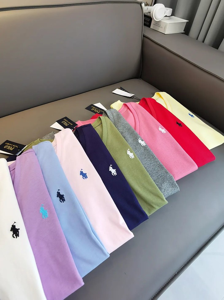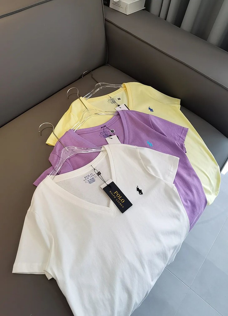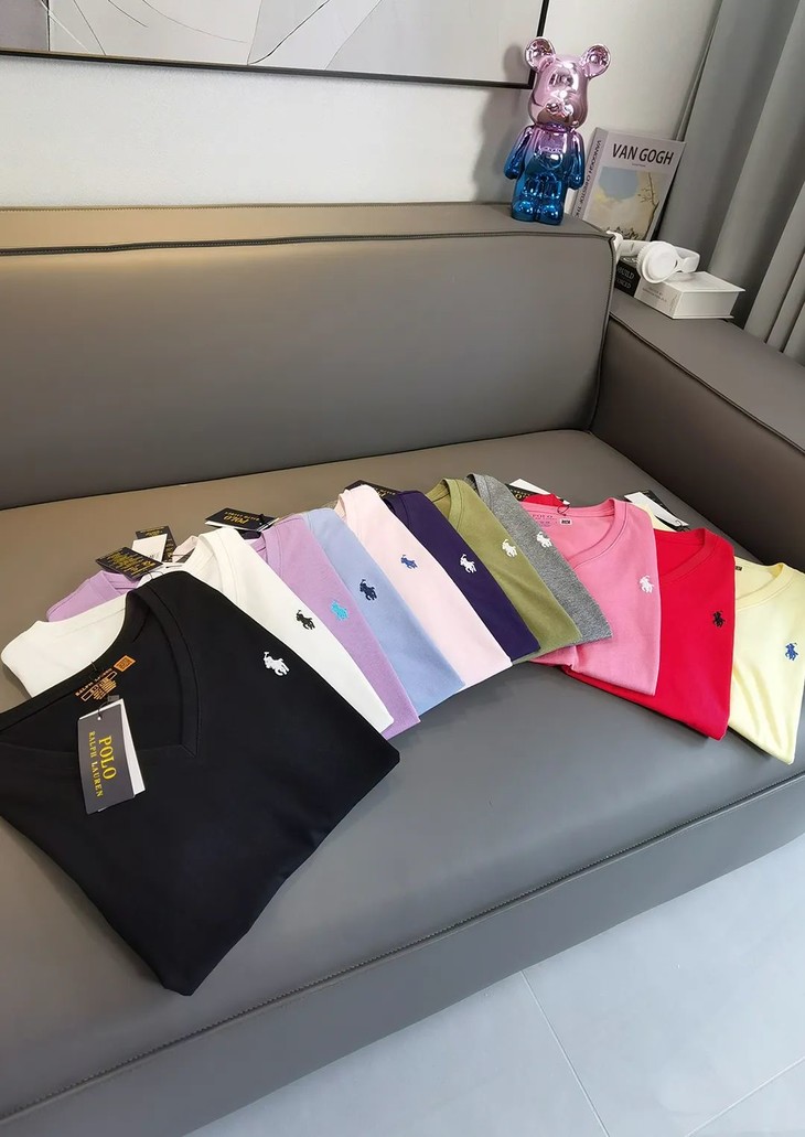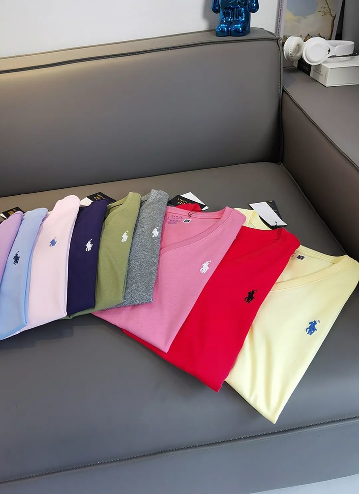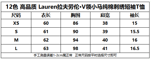 经典12色~赵露思同款拉夫劳*仑 V领纯棉刺绣小战马刺绣短袖