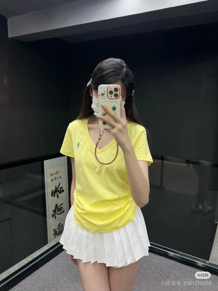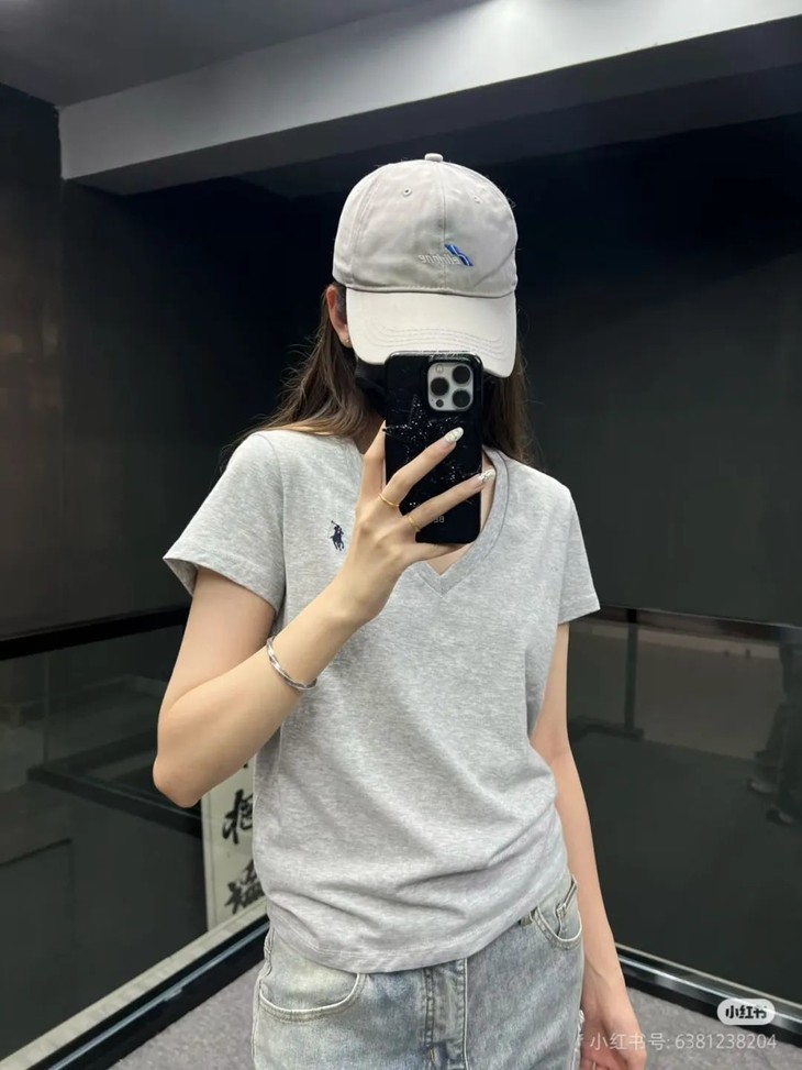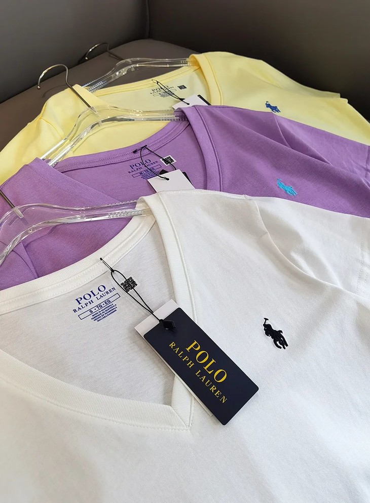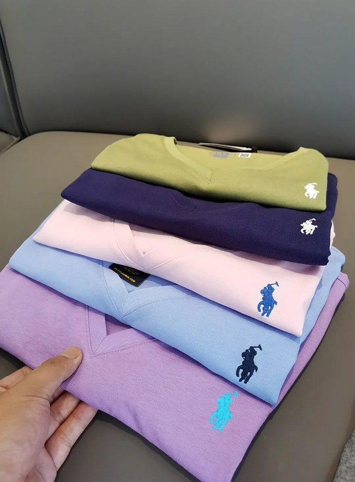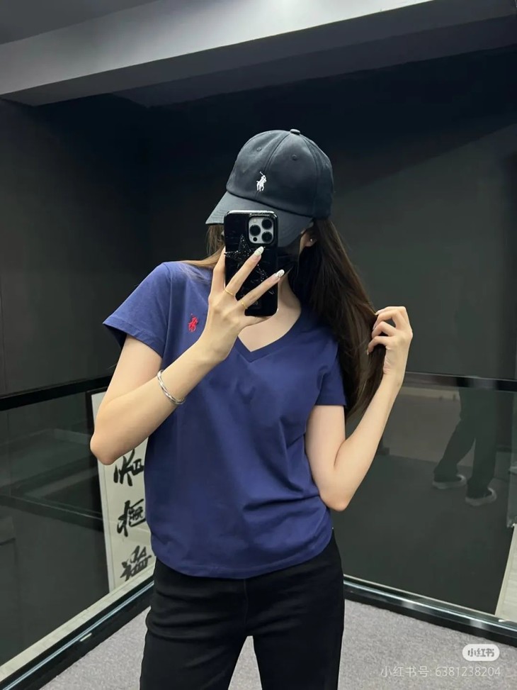 经典12色~赵露思同款拉夫劳*仑 V领纯棉刺绣小战马刺绣短袖