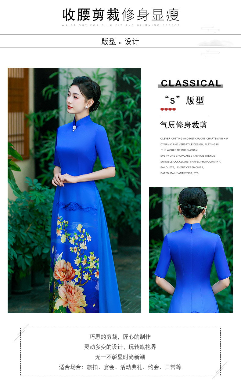 QC190奥黛走秀旗袍高端大气改良版