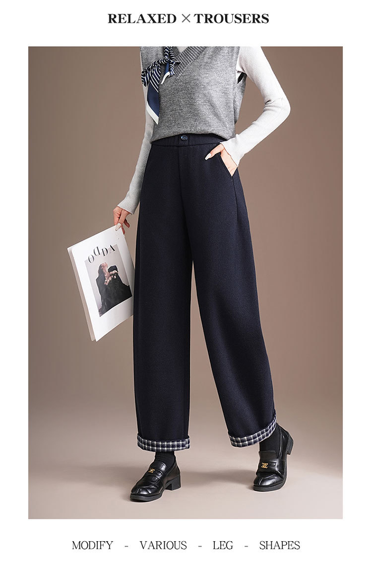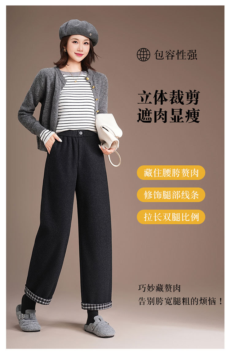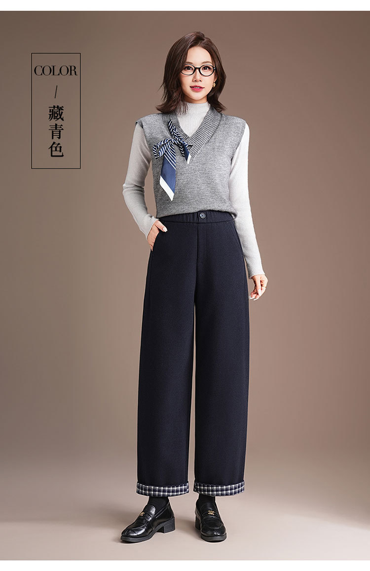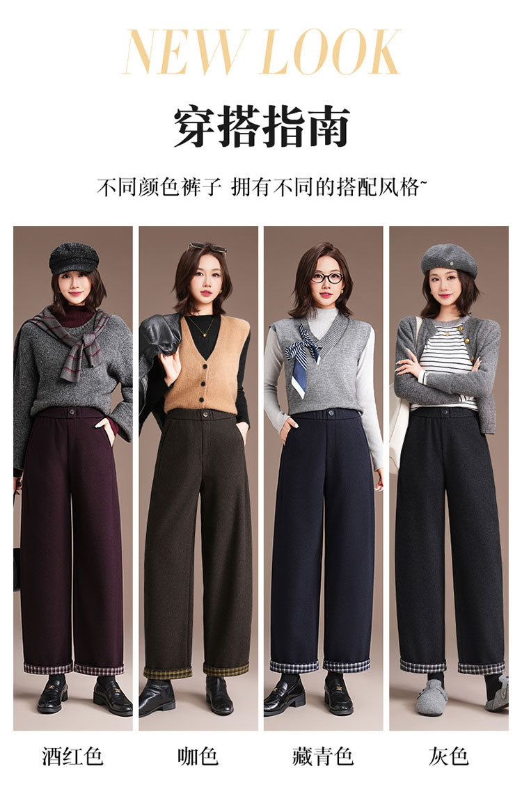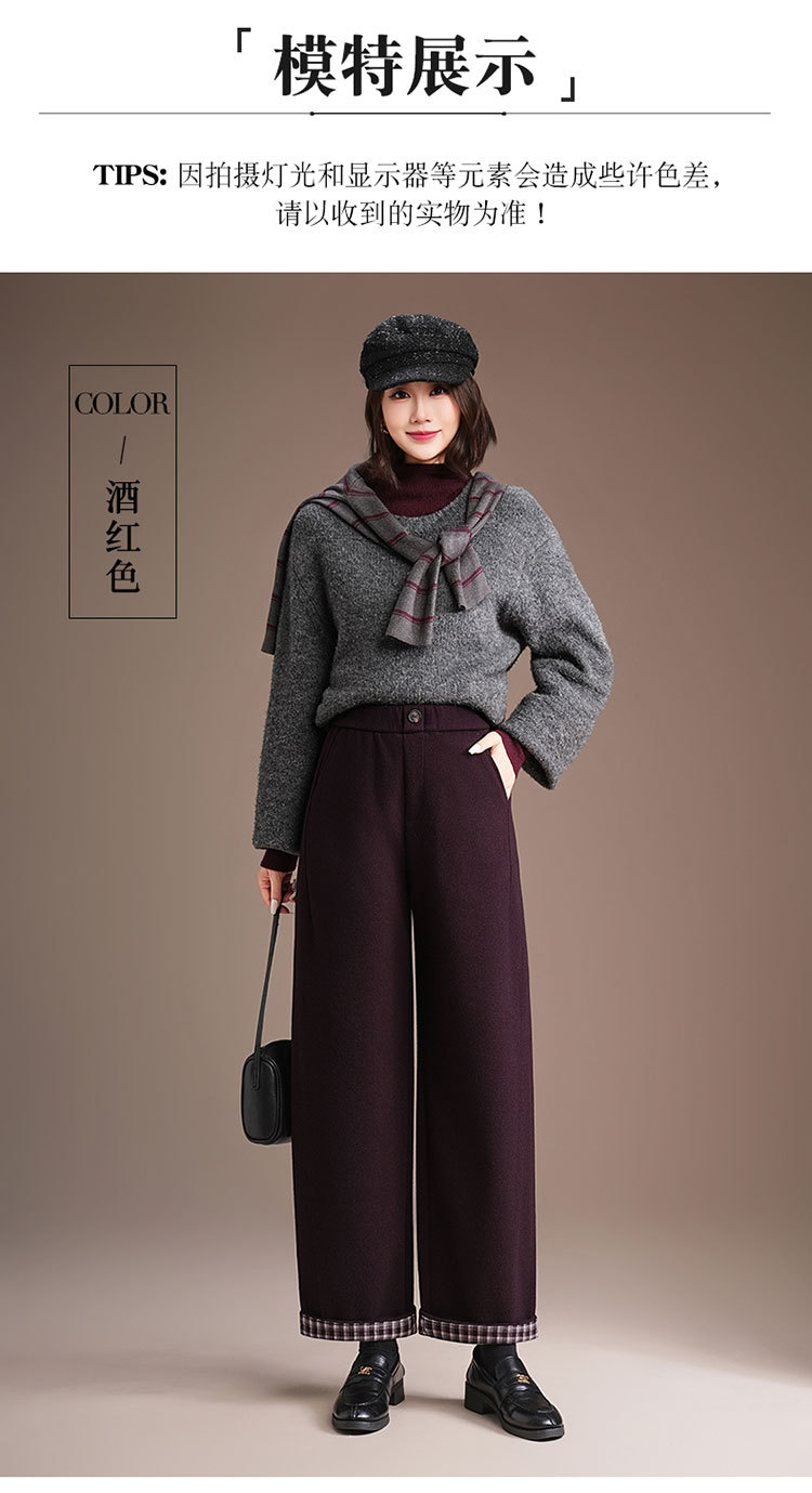 QYM H628-Y格子拼结阔腿裤厚款毛呢裤宽松休闲直筒休闲裤 商品图4