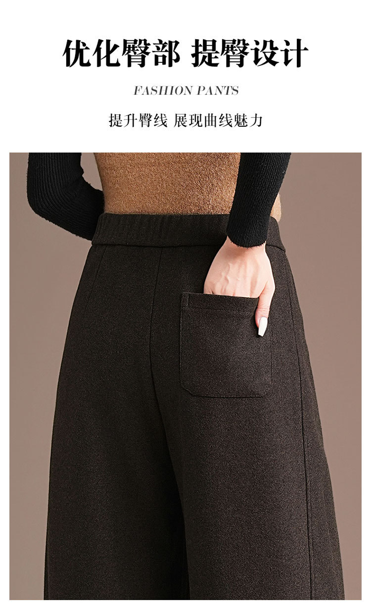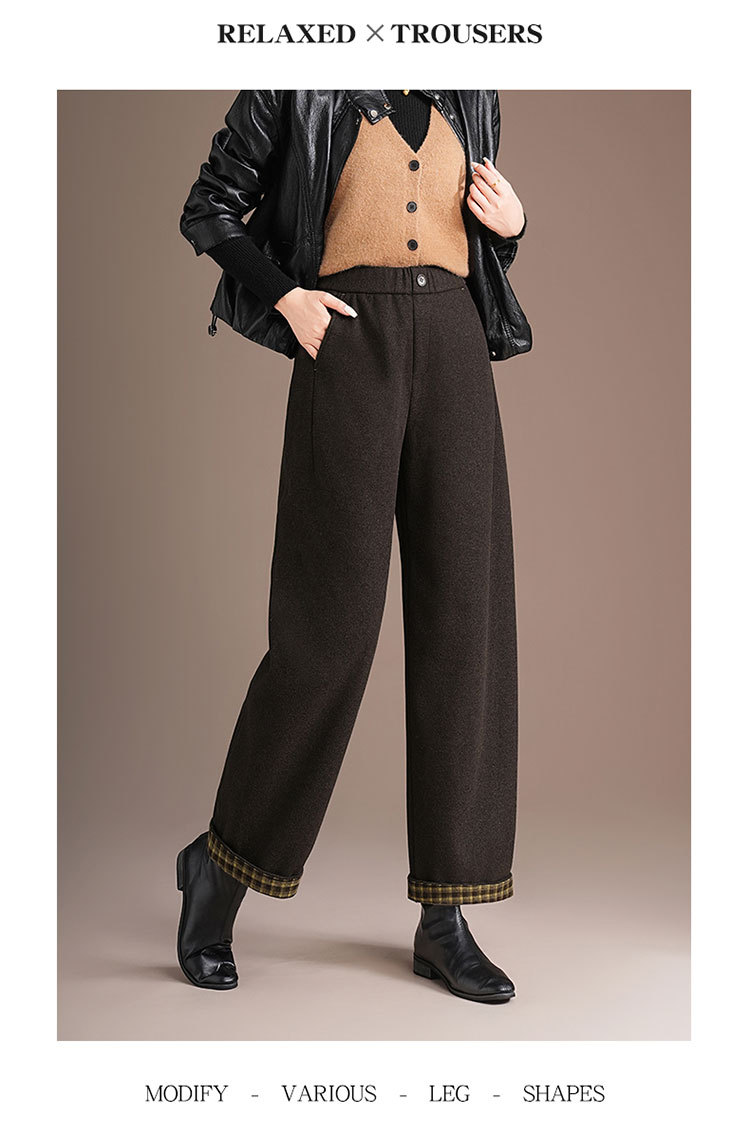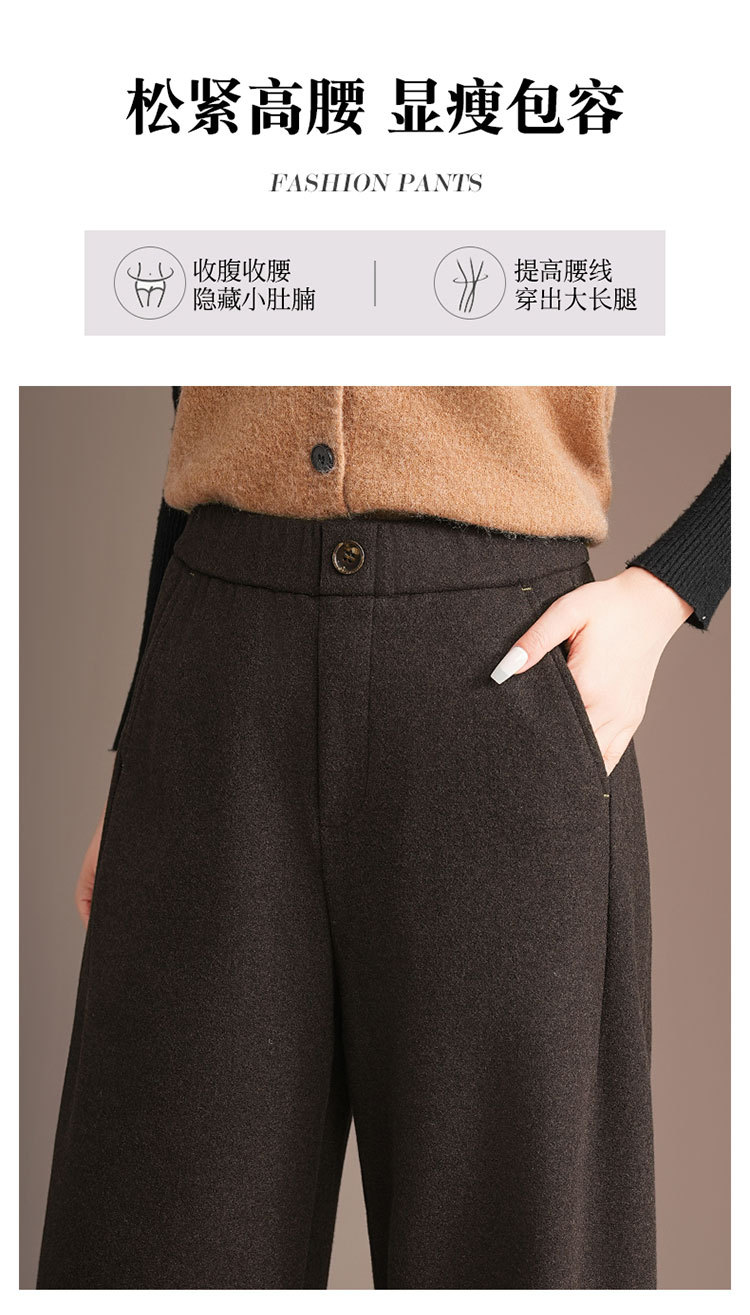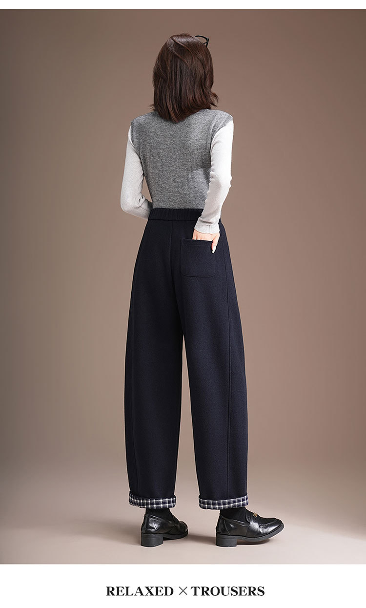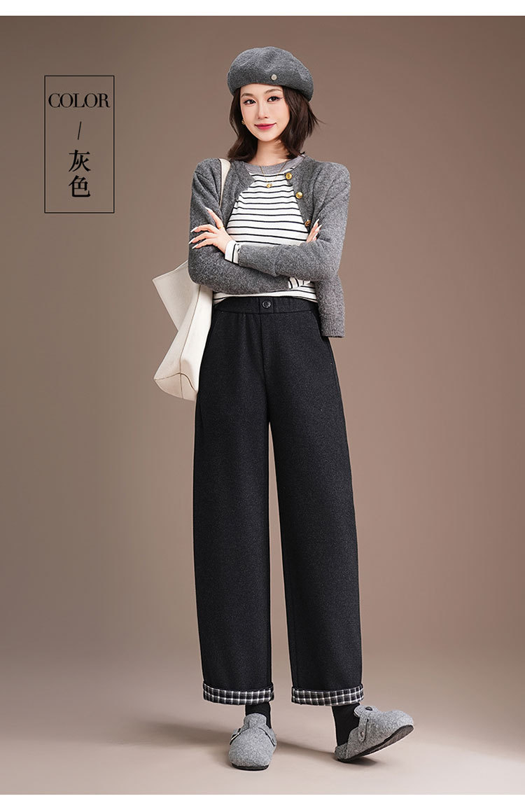 QYM H628-Y格子拼结阔腿裤厚款毛呢裤宽松休闲直筒休闲裤 商品图4