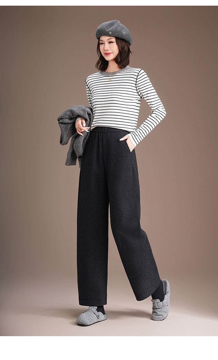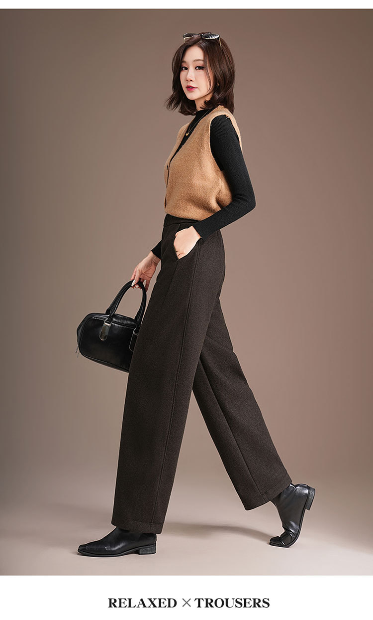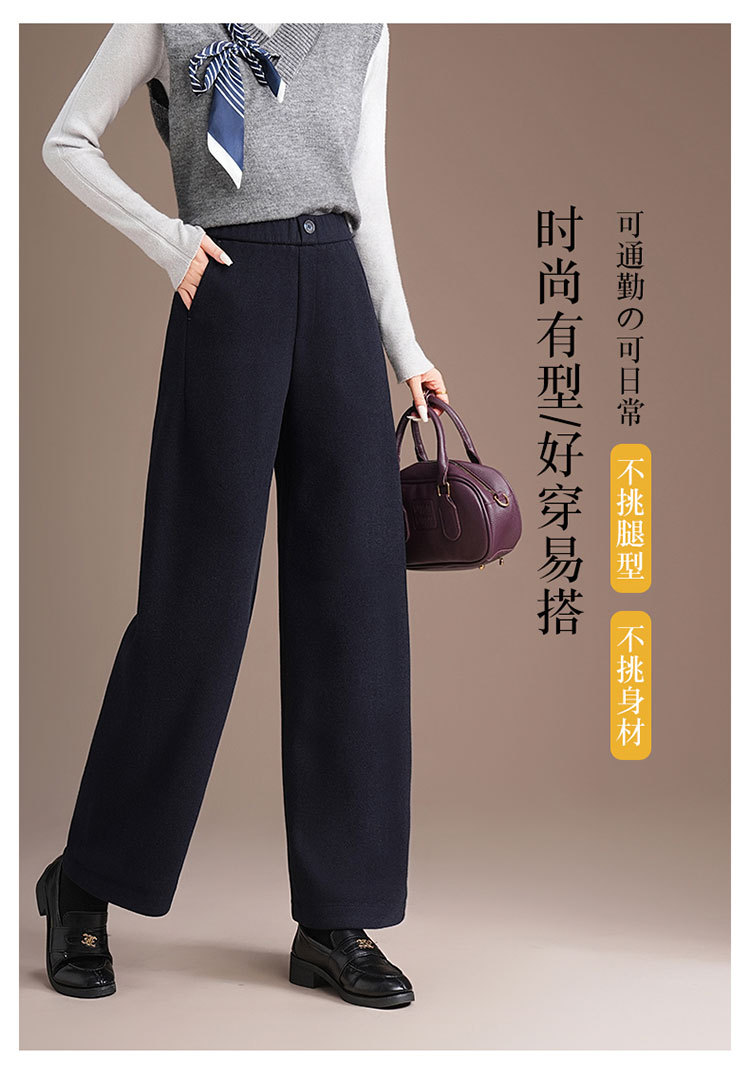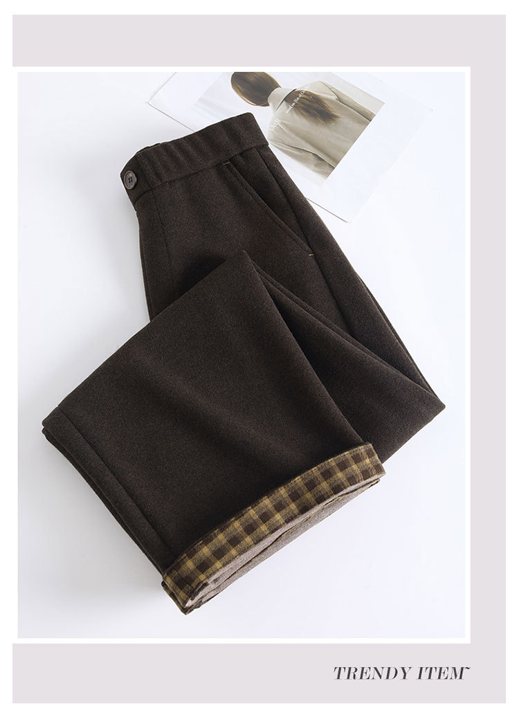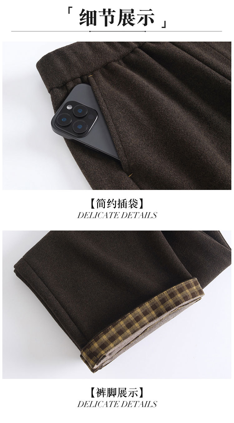 QYM H628-Y格子拼结阔腿裤厚款毛呢裤宽松休闲直筒休闲裤 商品图4