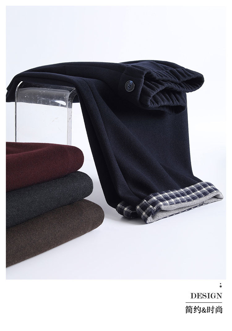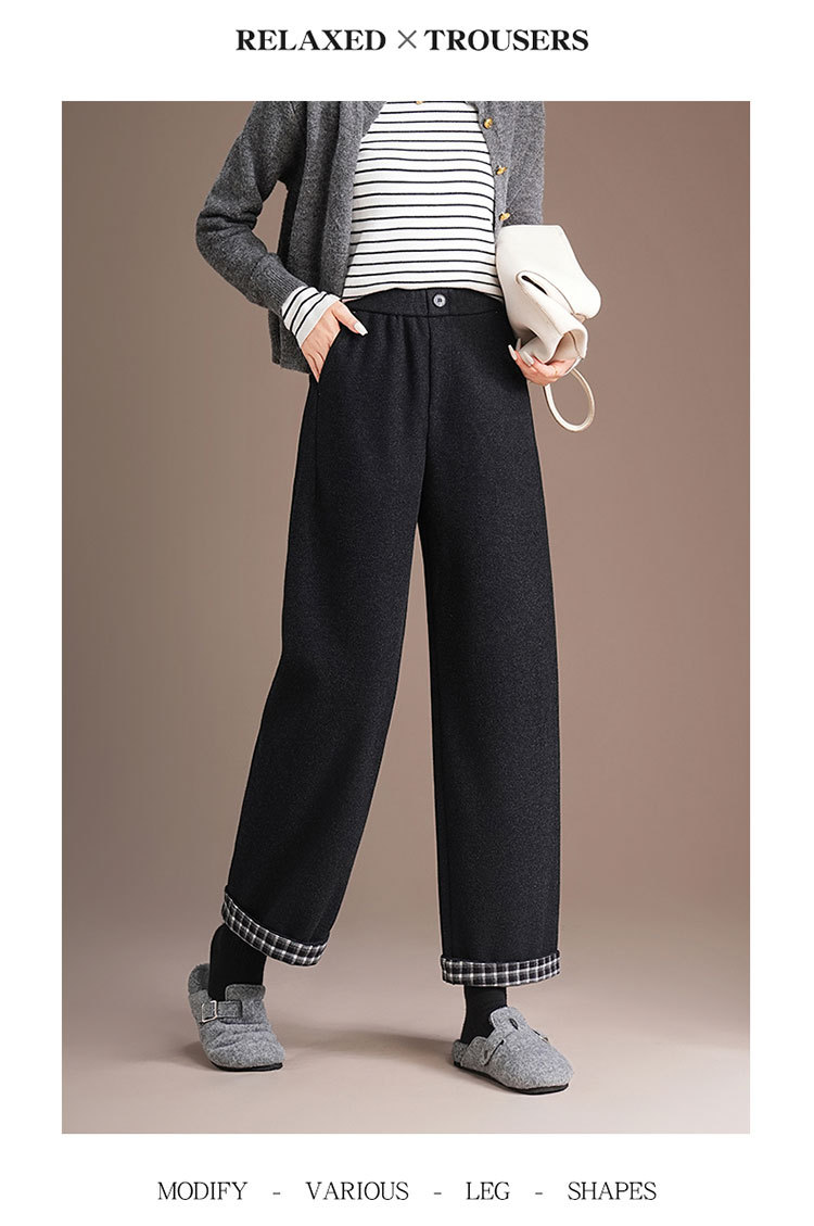 QYM H628-Y格子拼结阔腿裤厚款毛呢裤宽松休闲直筒休闲裤 商品图2