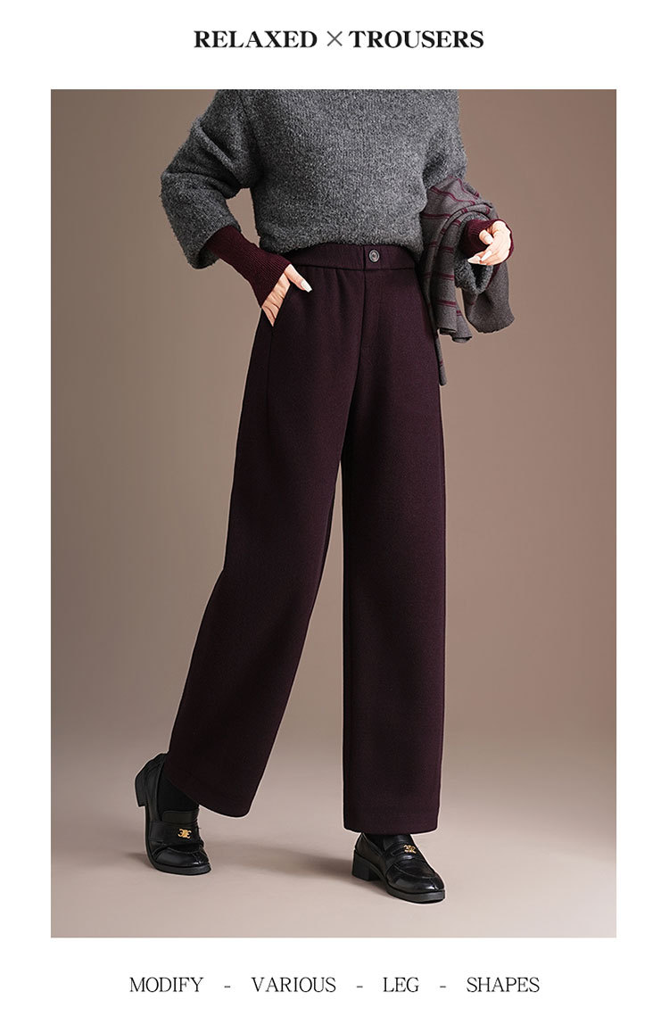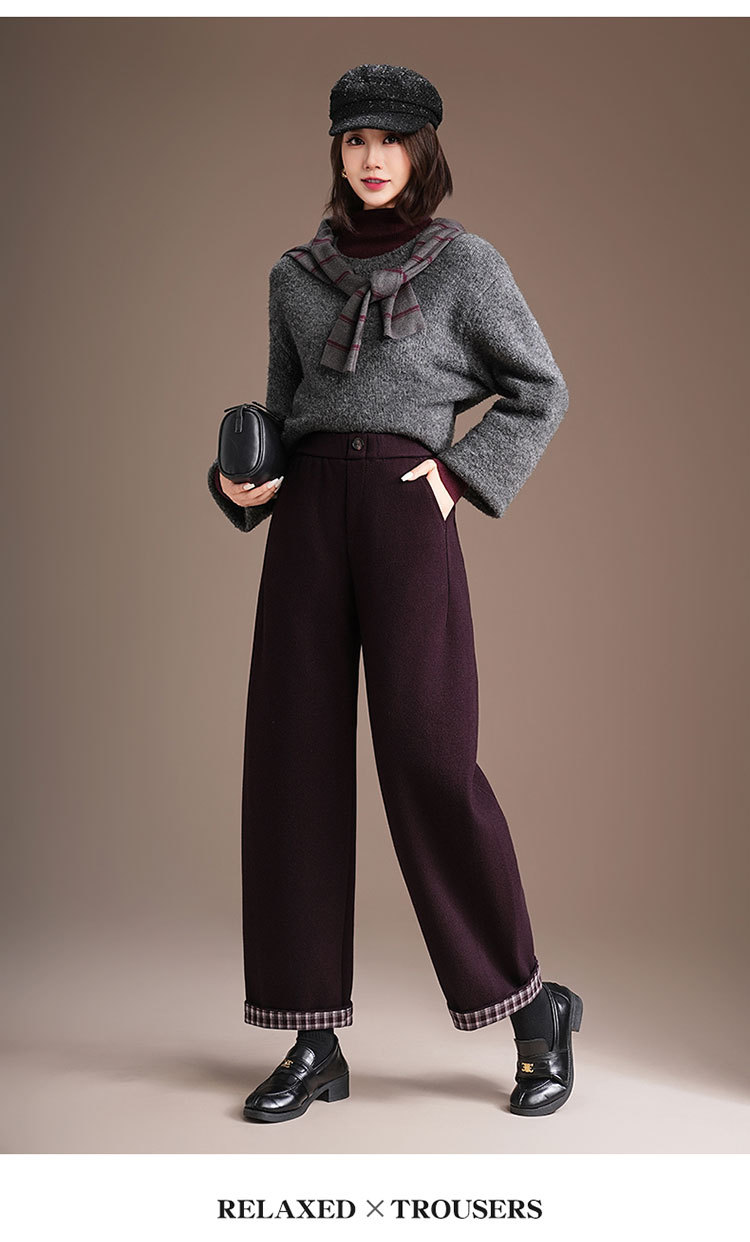 QYM H628-Y格子拼结阔腿裤厚款毛呢裤宽松休闲直筒休闲裤 商品图0