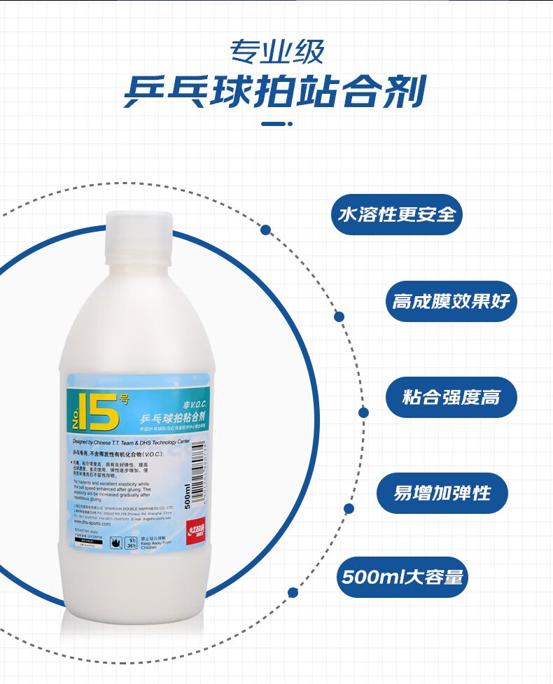 简介:红双喜15号无机胶水,无毒、粘合强度高。具有良好的弹性,提高出球速度,多次使用,弹性逐步增加。使用完毕清洗后不留残存物。众多国手的选择!