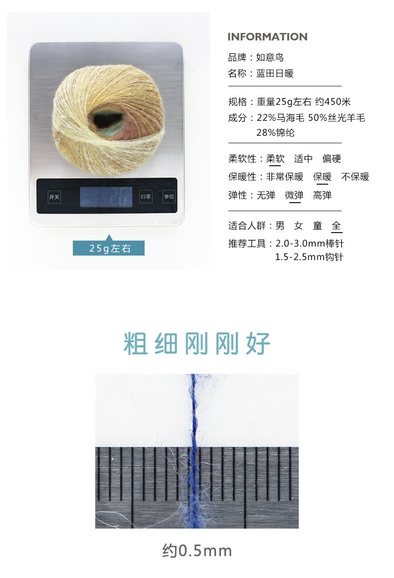 如意鸟蓝田日暖手编细毛线钩针线披肩围巾线长距离段染毛线