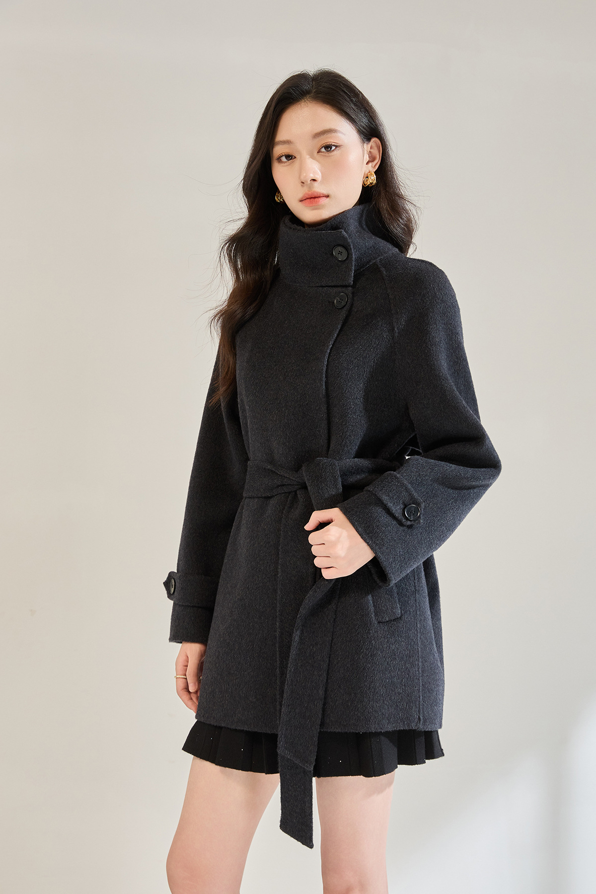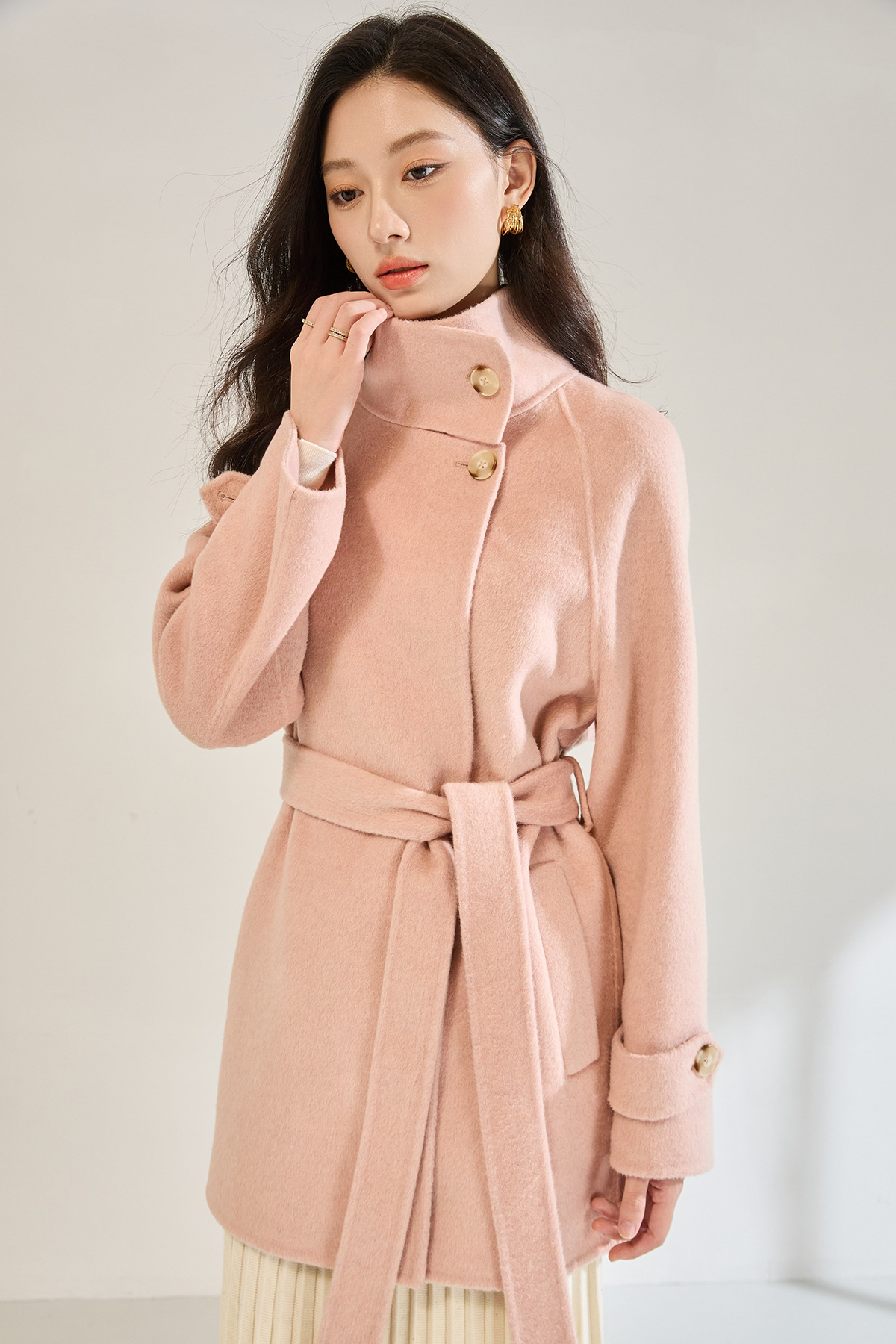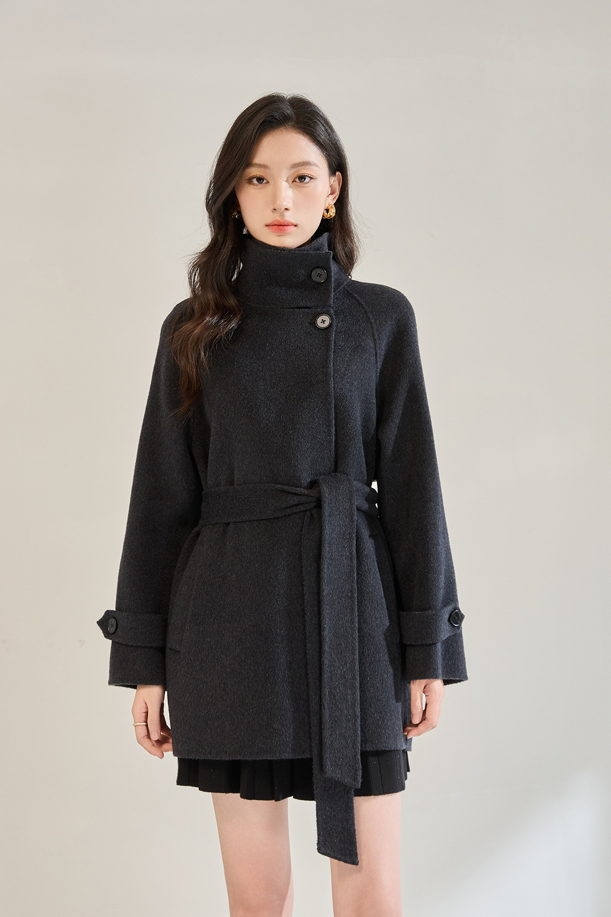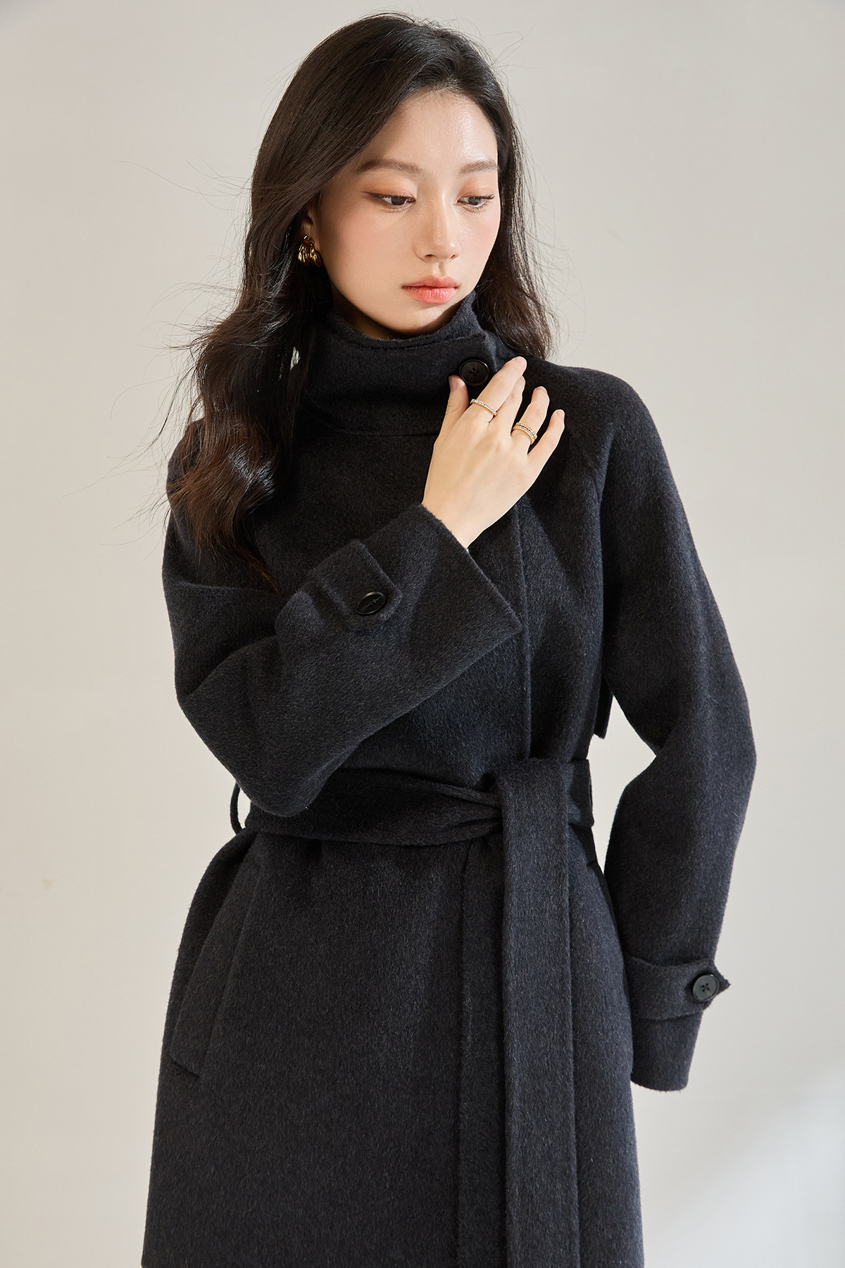 「高货sh」全新升级【铂金会员643/天猫869/差价226】(00148)洛诗琳2025秋冬气质半高领两穿领高级感双面呢中长款外套
