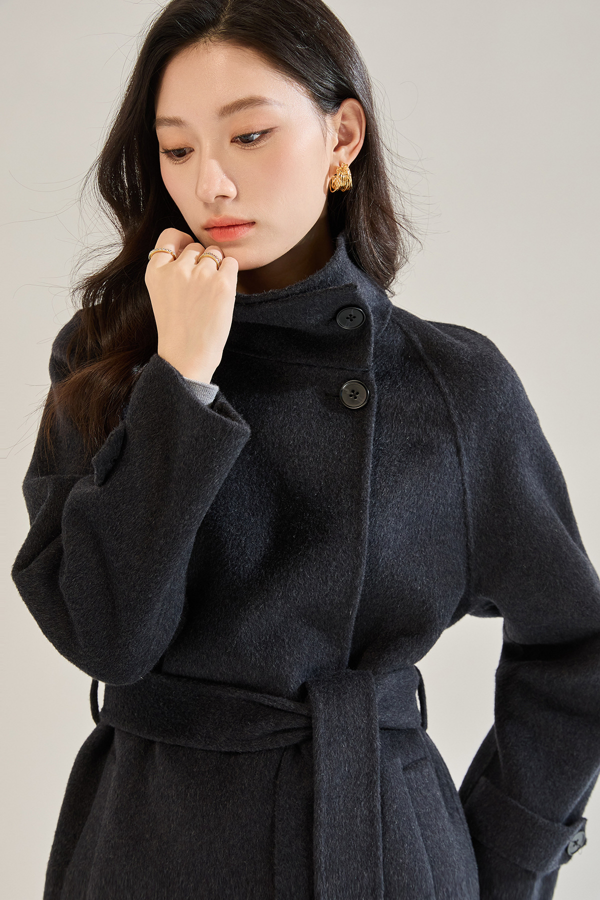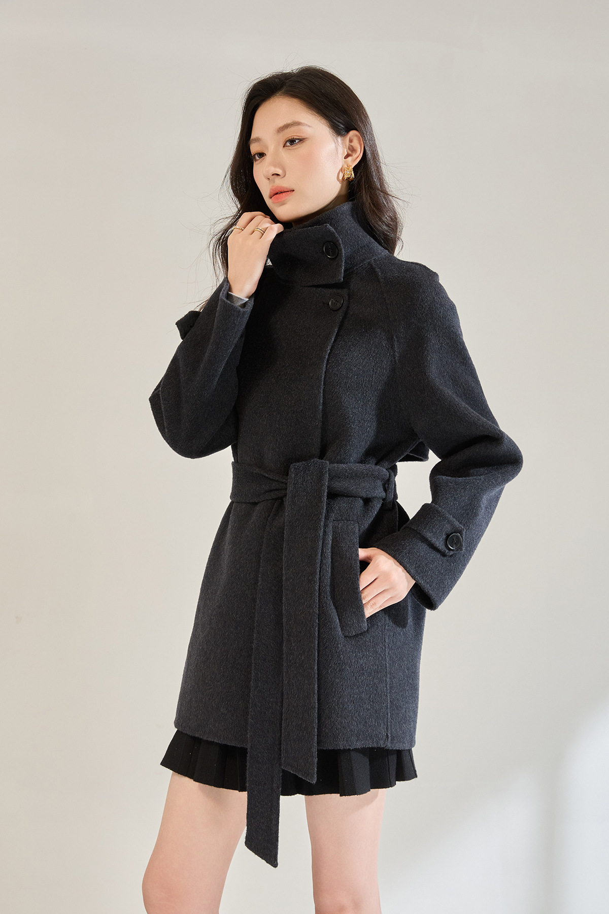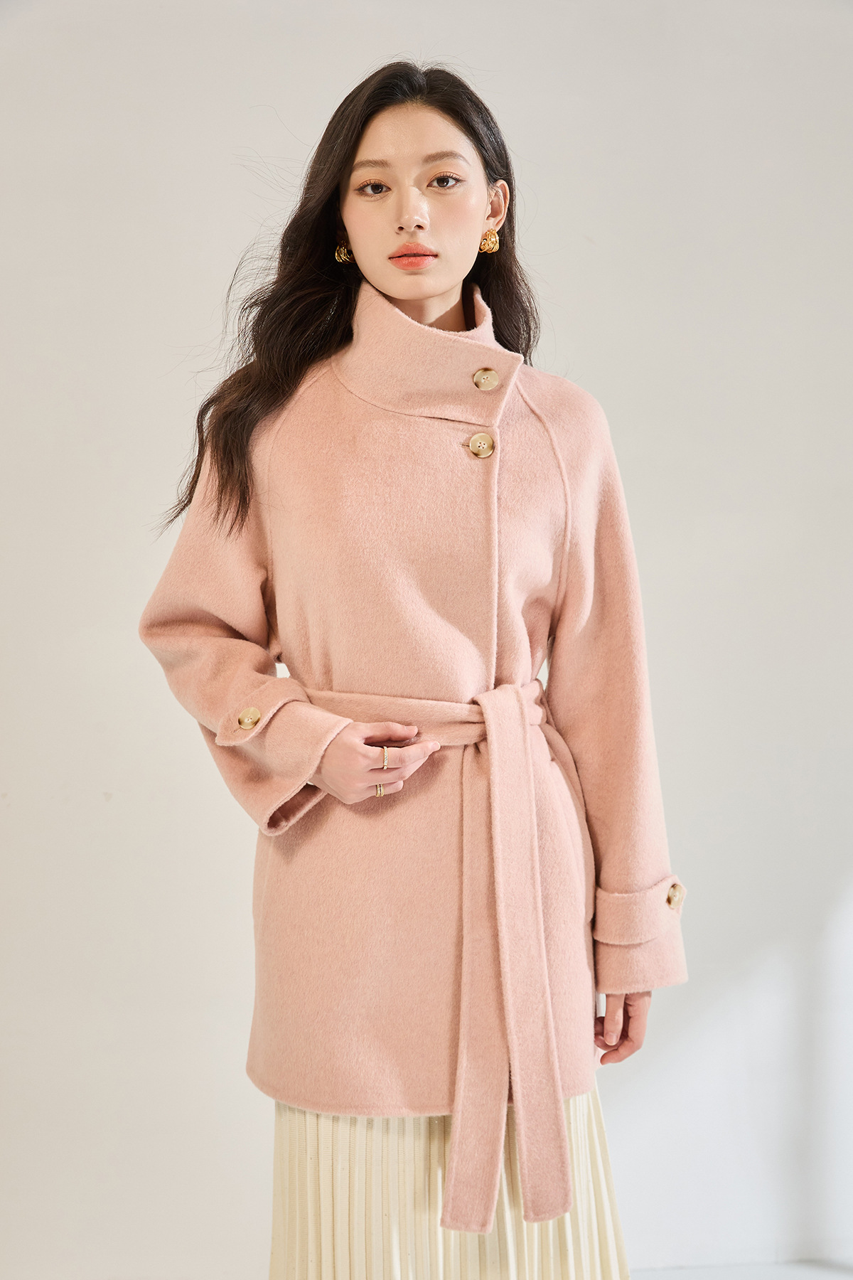 「高货sh」全新升级【铂金会员643/天猫869/差价226】(00148)洛诗琳2025秋冬气质半高领两穿领高级感双面呢中长款外套