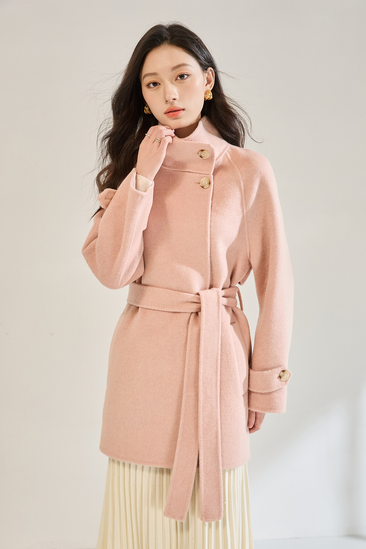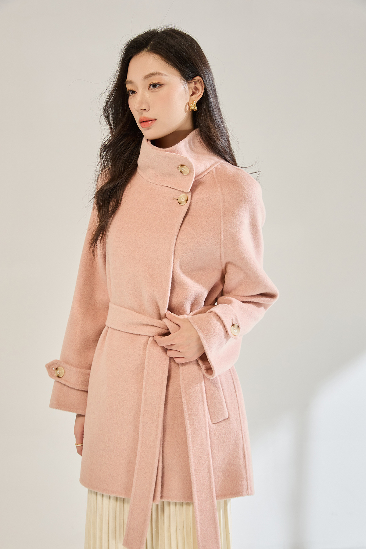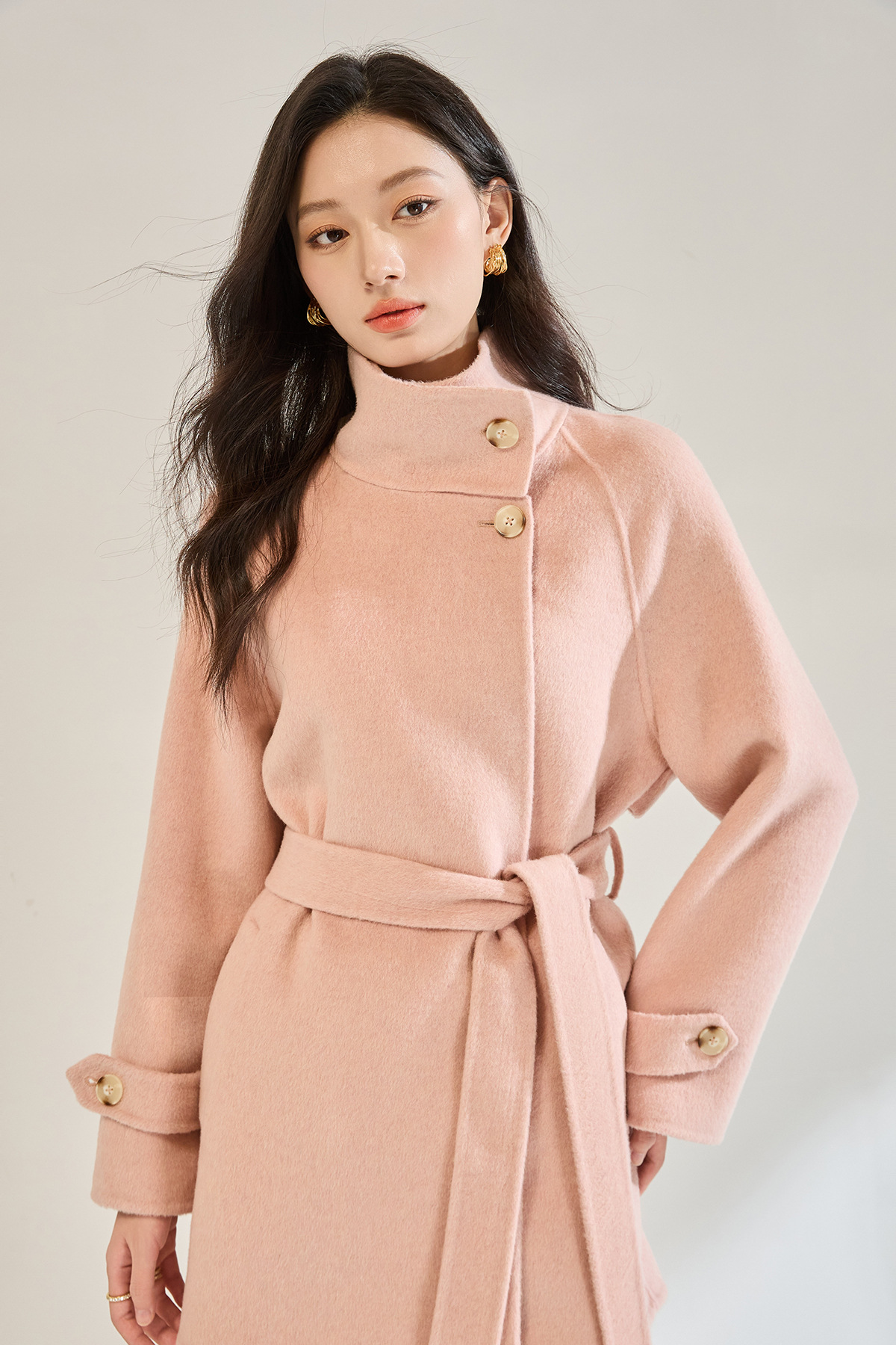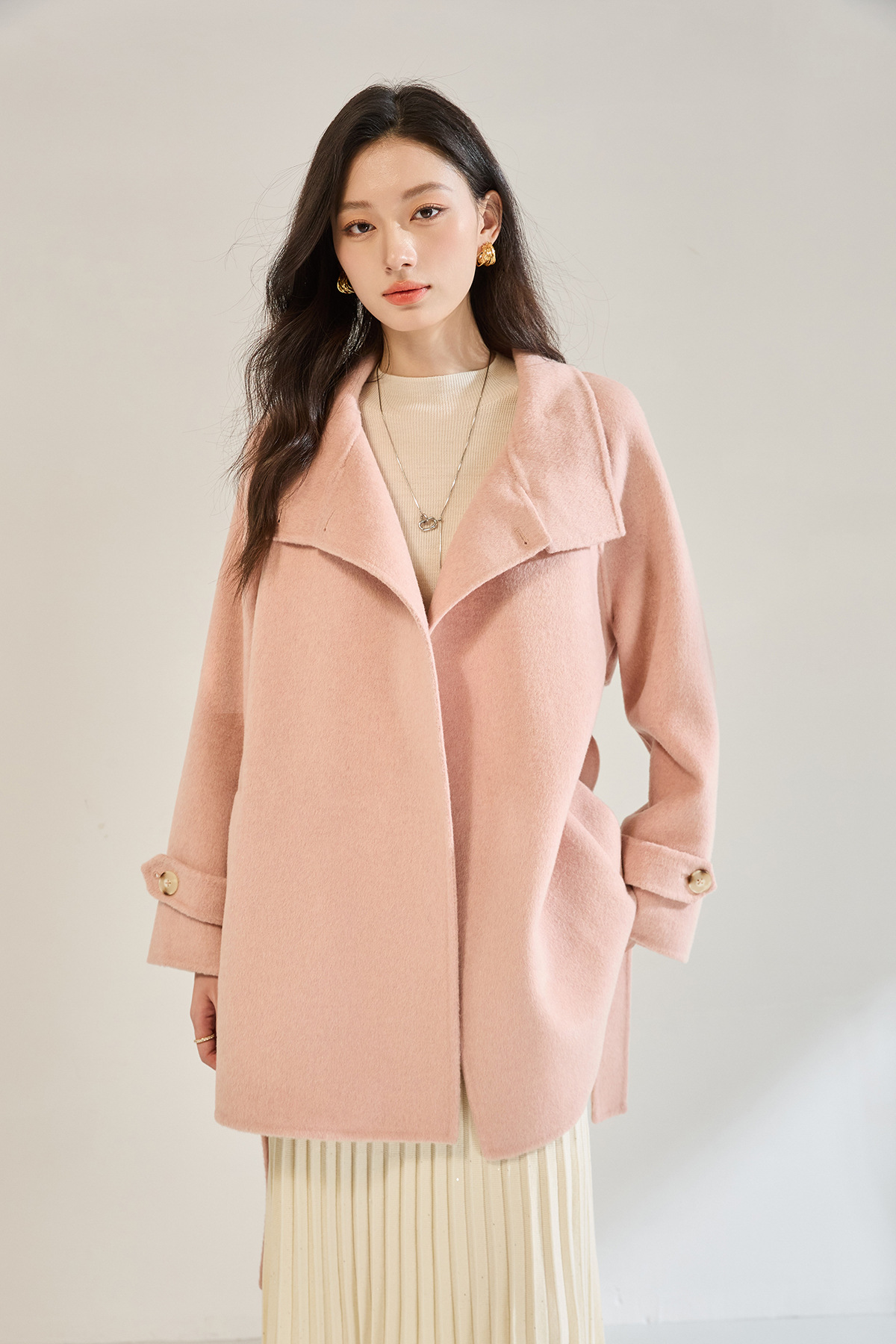 「高货sh」全新升级【铂金会员643/天猫869/差价226】(00148)洛诗琳2025秋冬气质半高领两穿领高级感双面呢中长款外套