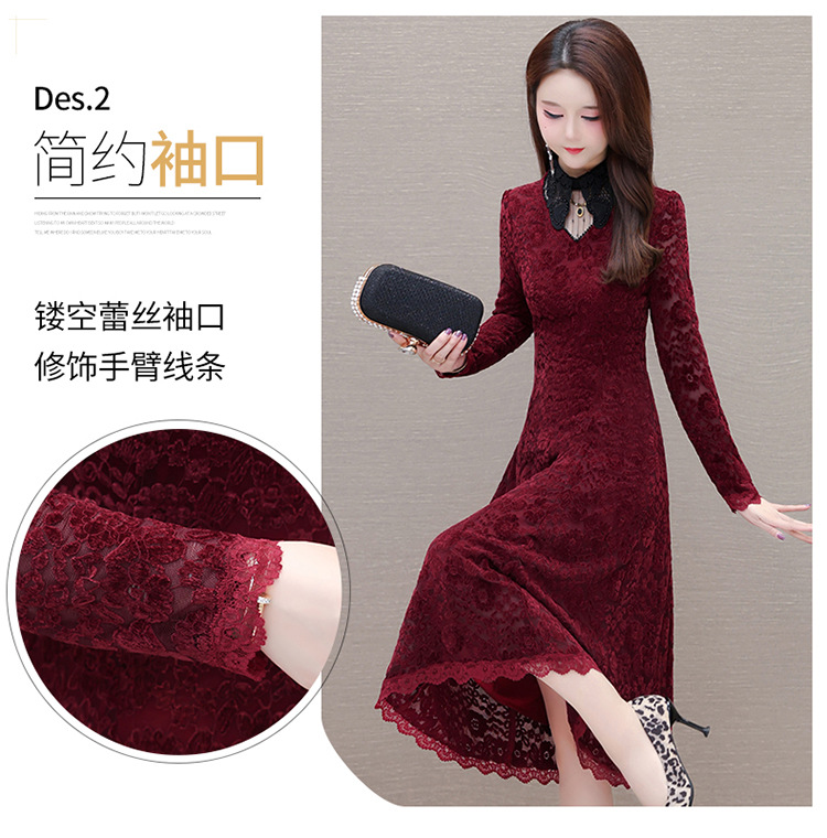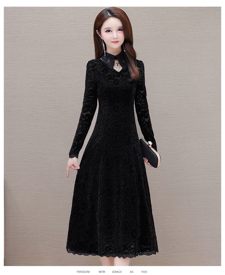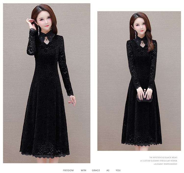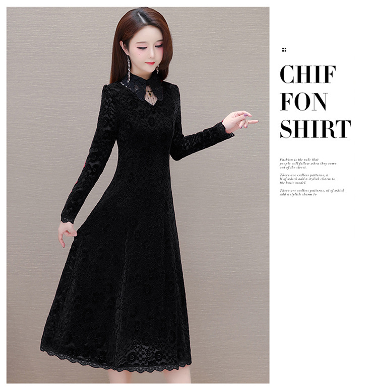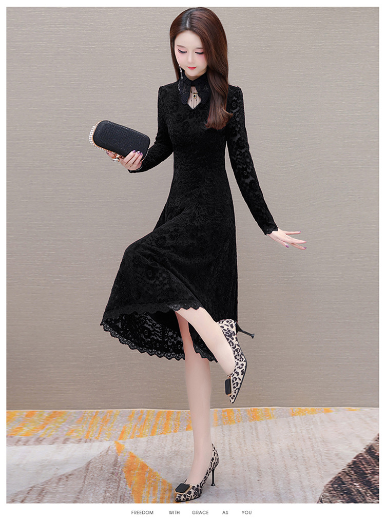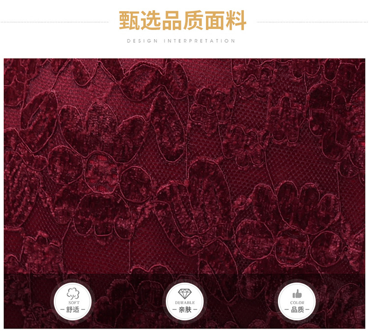 韩国绒印花长款修身长袖旗袍,复古中国风中老年女士旗袍SYK179402
