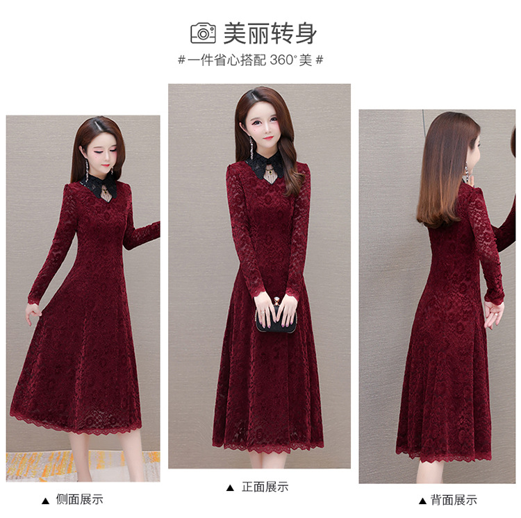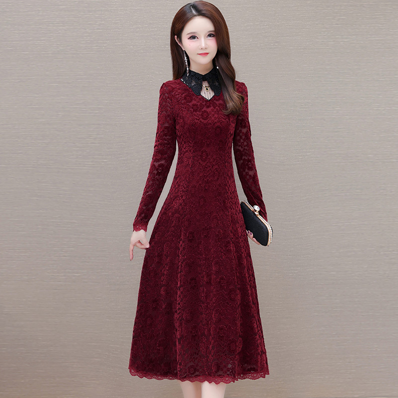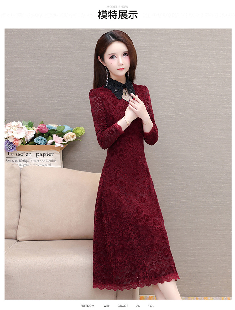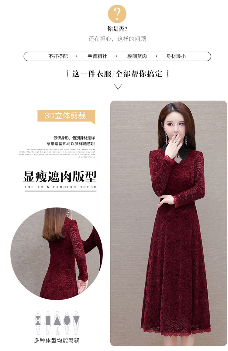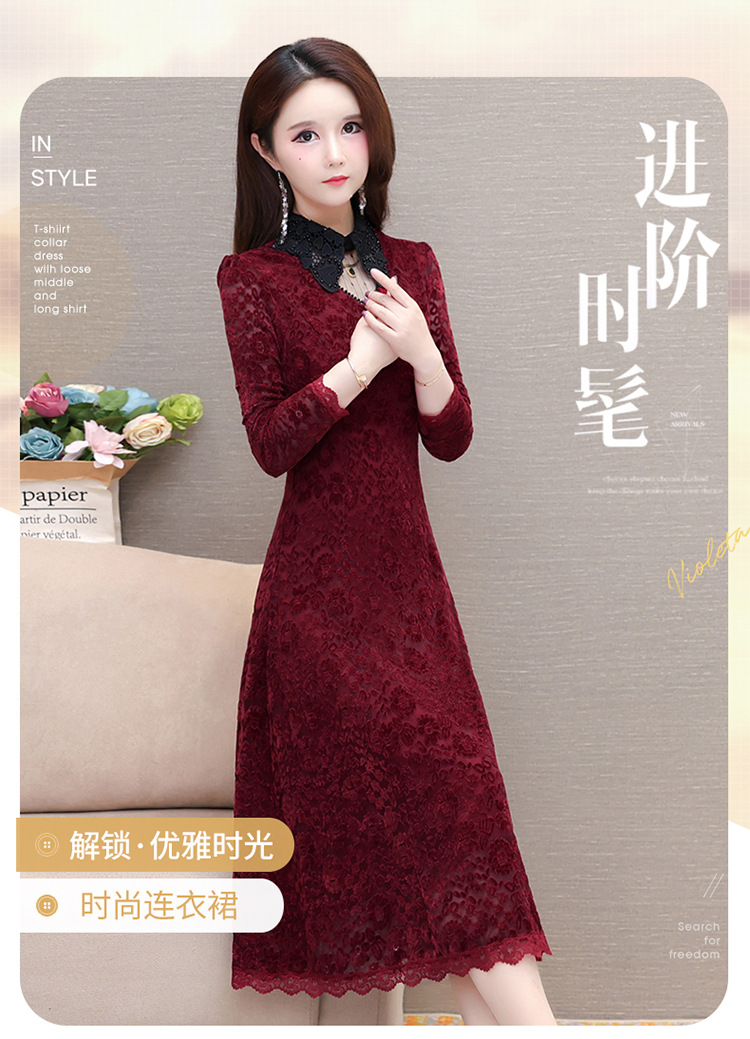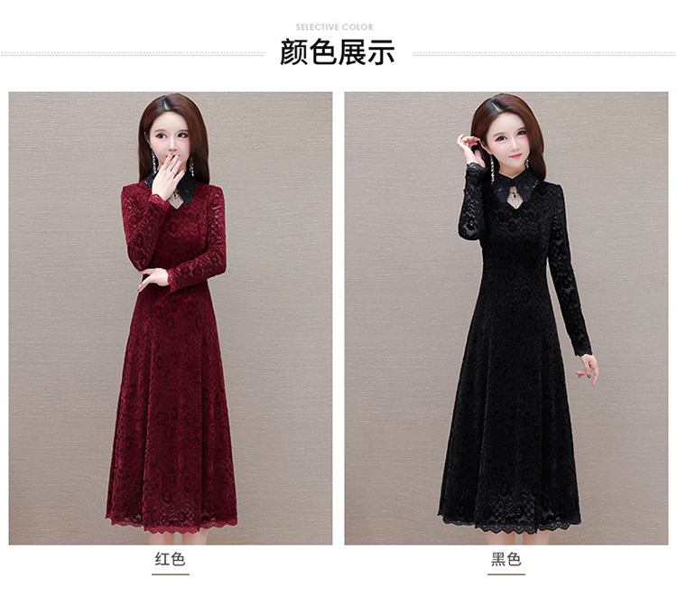 韩国绒印花长款修身长袖旗袍,复古中国风中老年女士旗袍SYK179402