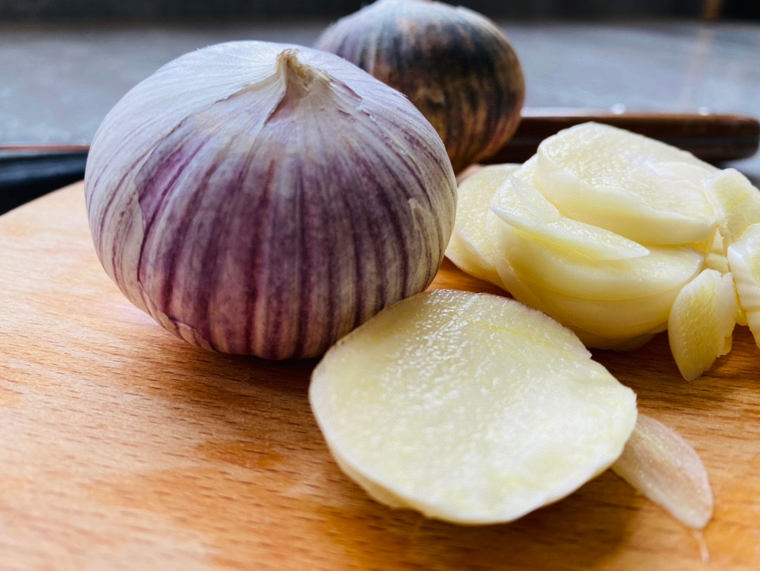 新蒜,大小均匀,一顿一颗刚刚好~放在菜板上轻轻拍一下,蒜皮就裂开,根本不用手剥,非常的省心!