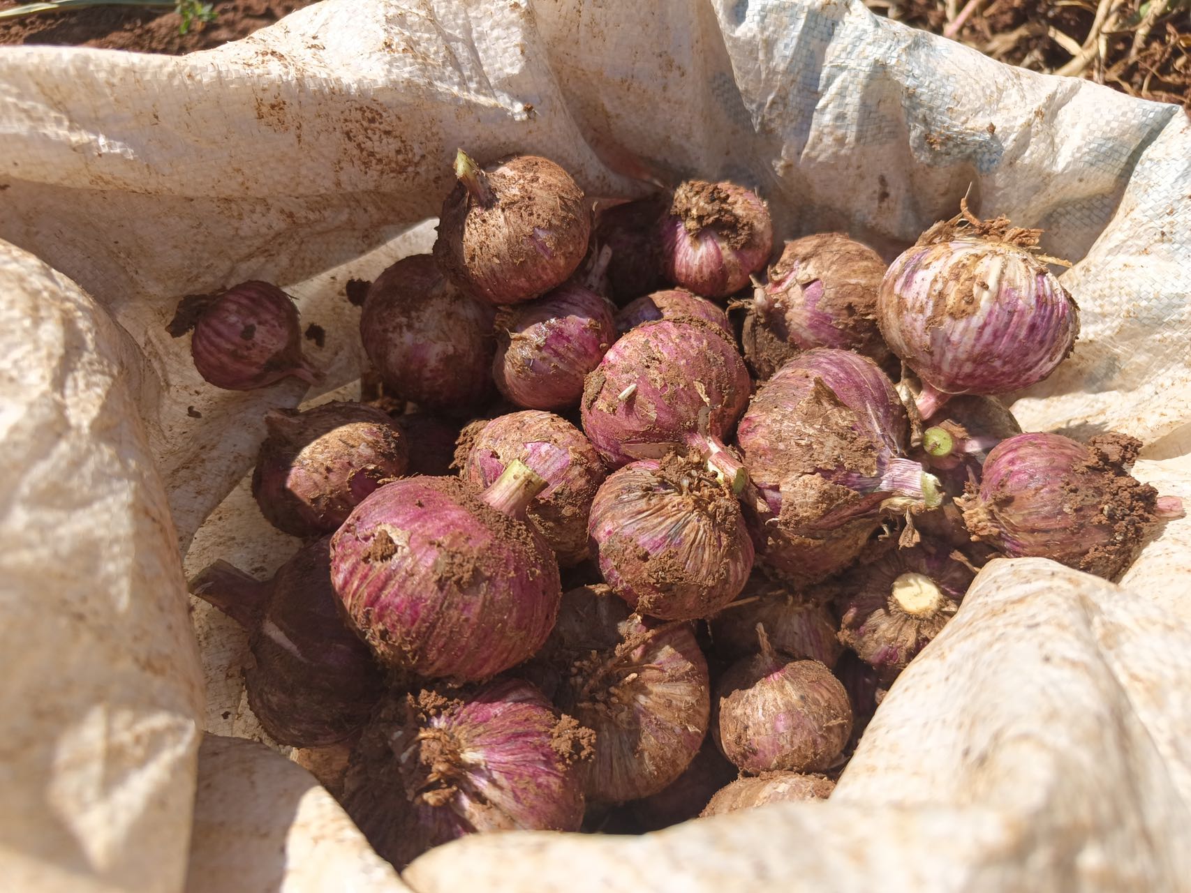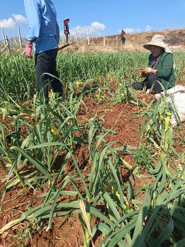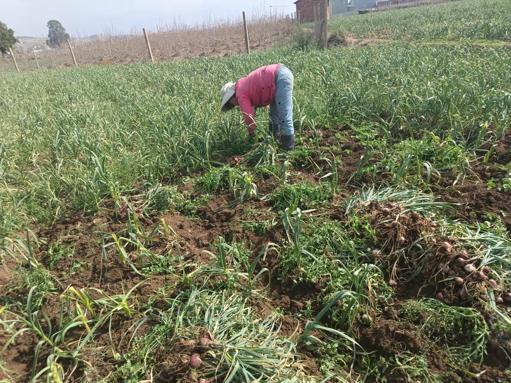 每年到挖蒜的时候,就是一家老小出动的时候,大片大片的蒜地里火热朝天。一个锄头一颗蒜,挖蒜一季下来,大人们的手满是老茧。老人们做事认真,负责分拣,将多头和独头蒜分开,再按照重量进行分级。小孩子们爱破坏,就负责用剪刀减去大蒜杆叶。