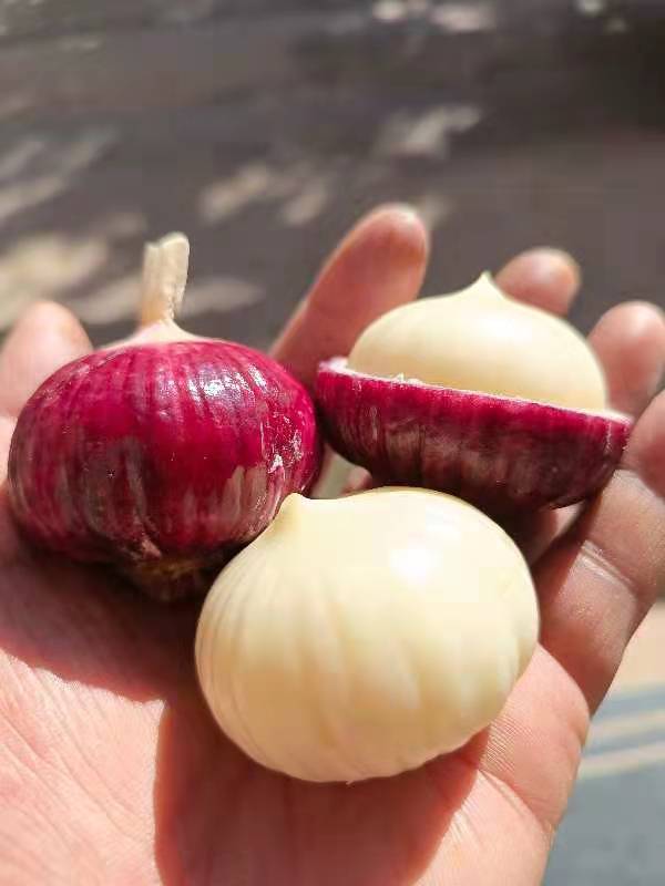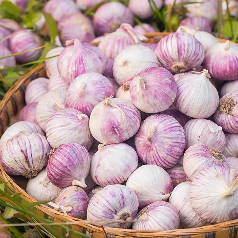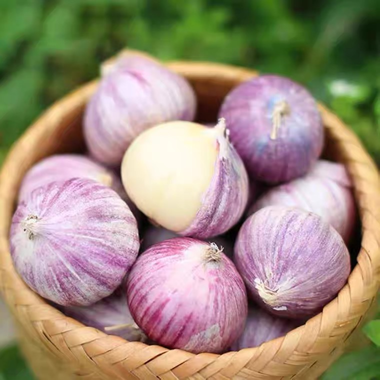 紫皮的外观漂亮,口感也更带劲,火辣辣的,脆脆的,水水的,嫩嫩的,它的品质更是堪称蒜中“贵族”,经常出口欧美等国家。