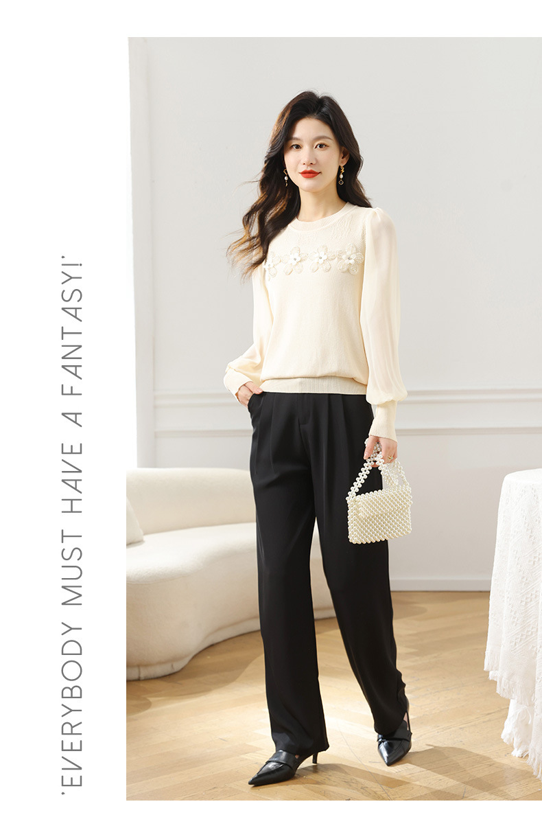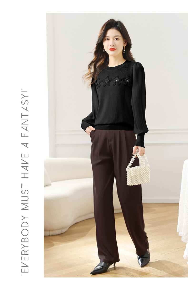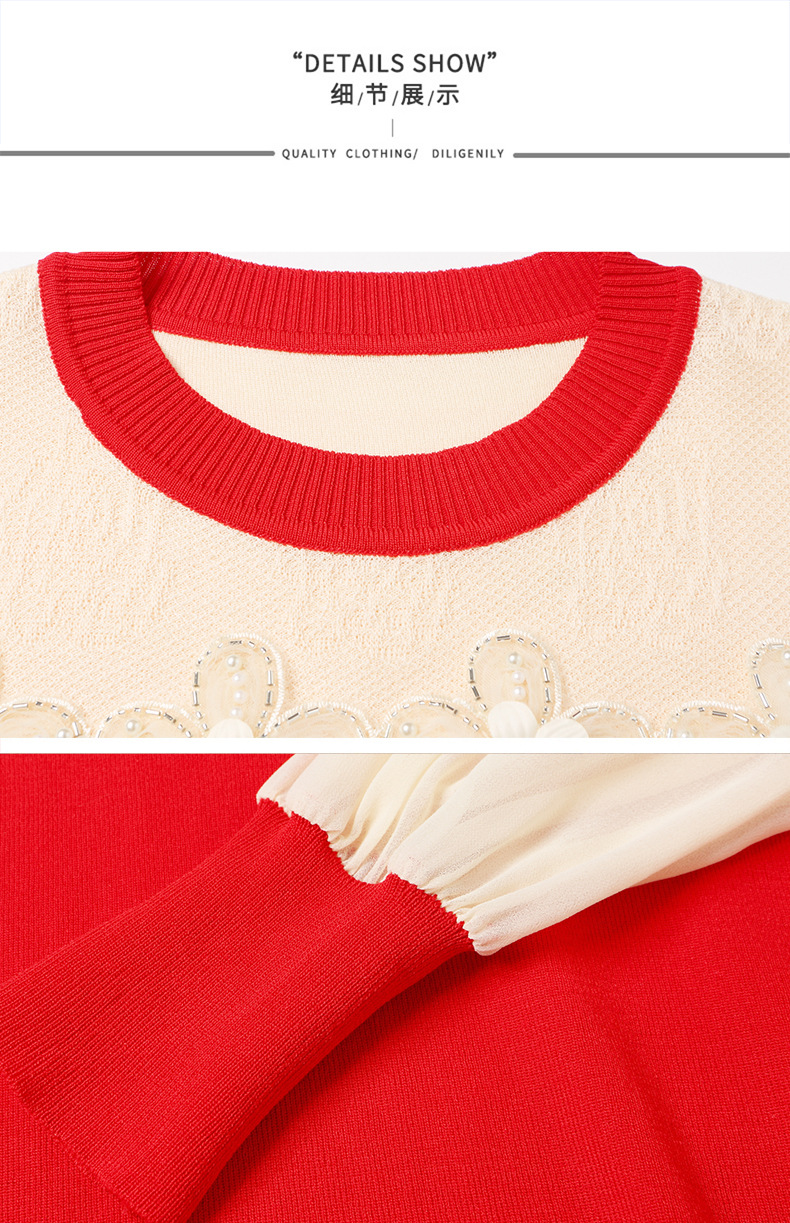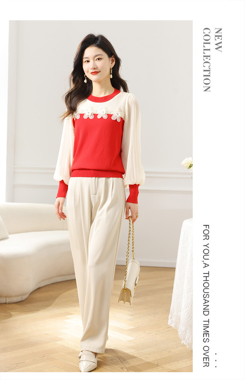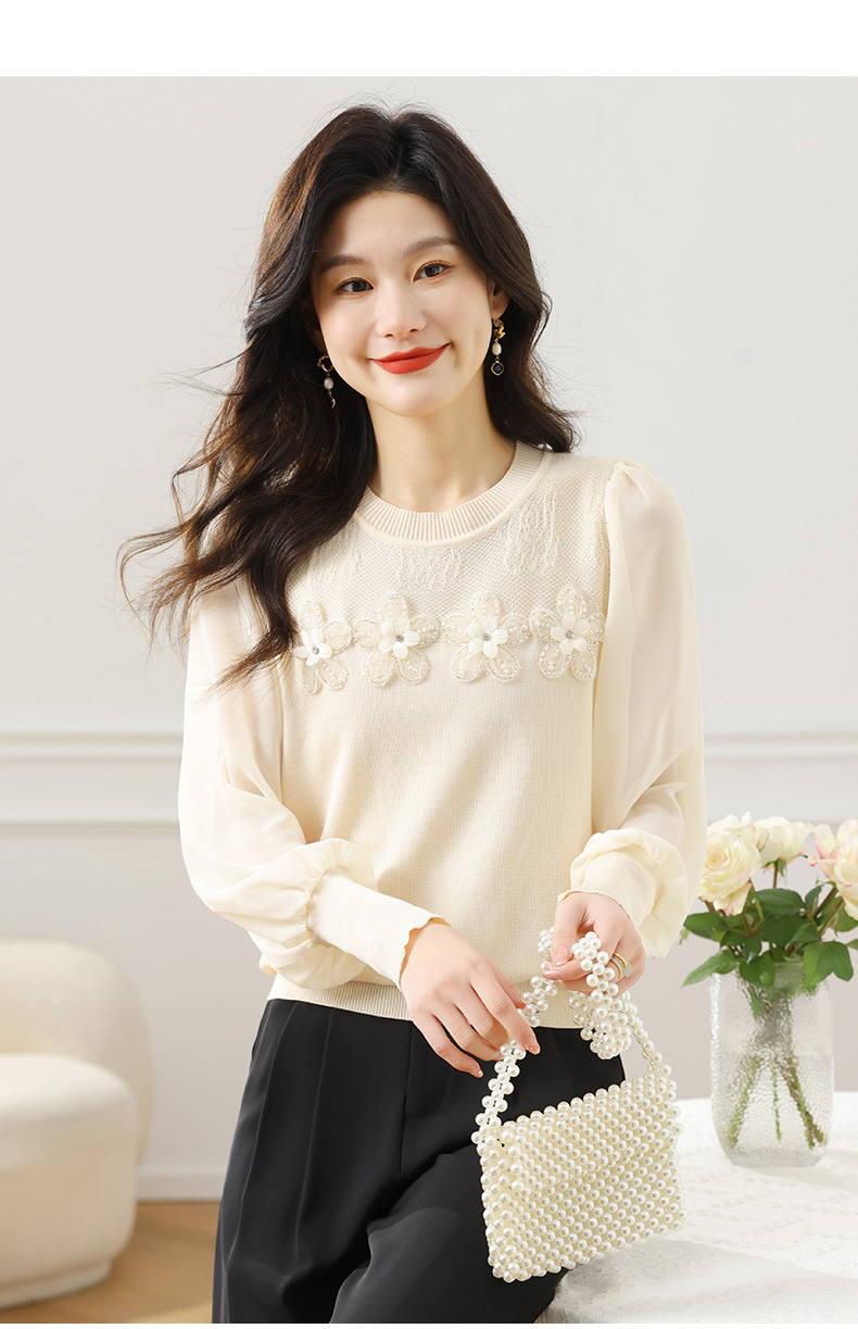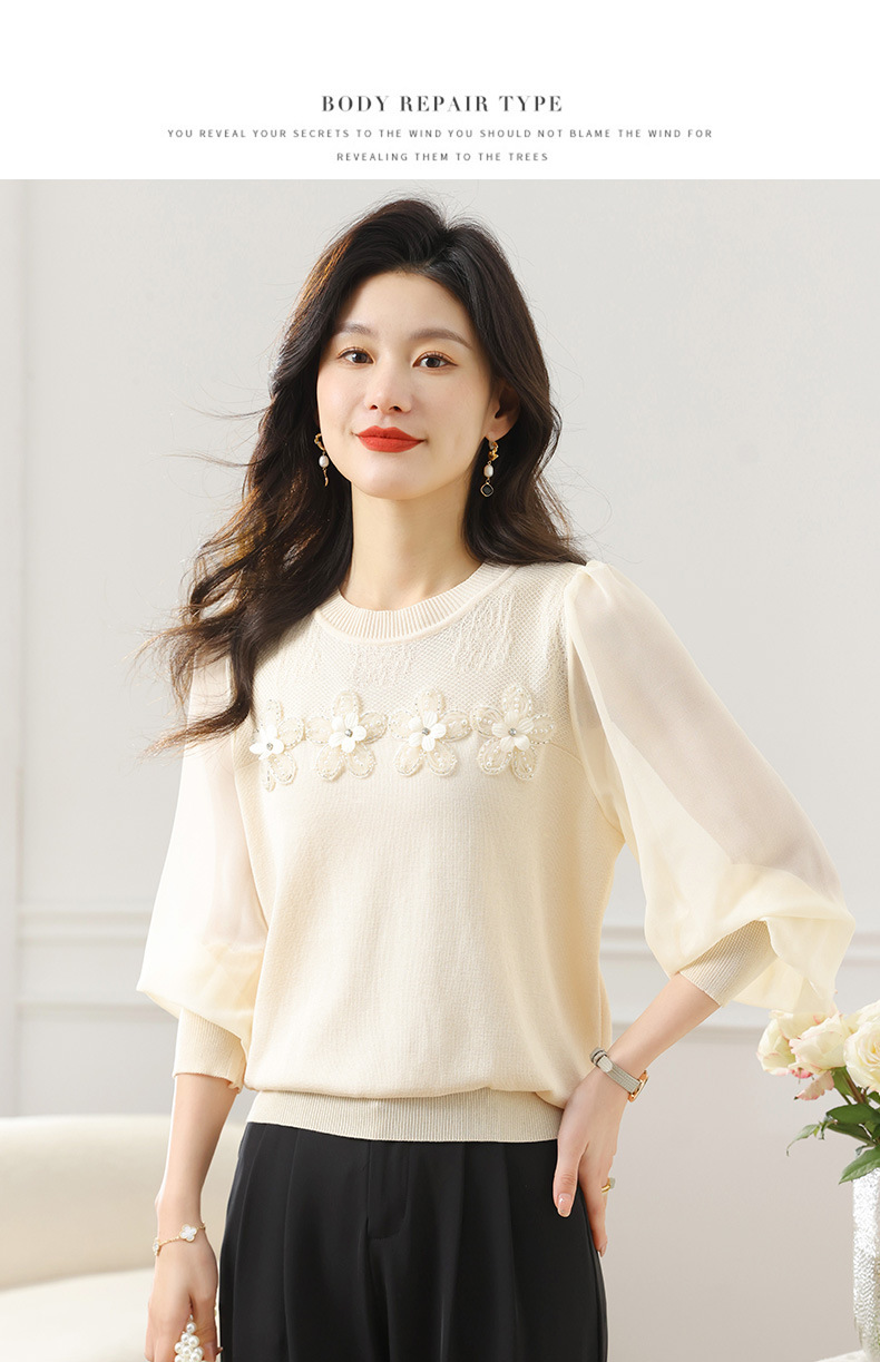 春款长袖T恤内搭圆领打底衫,洋气百搭雪纺拼接针织上衣CC-MY3531