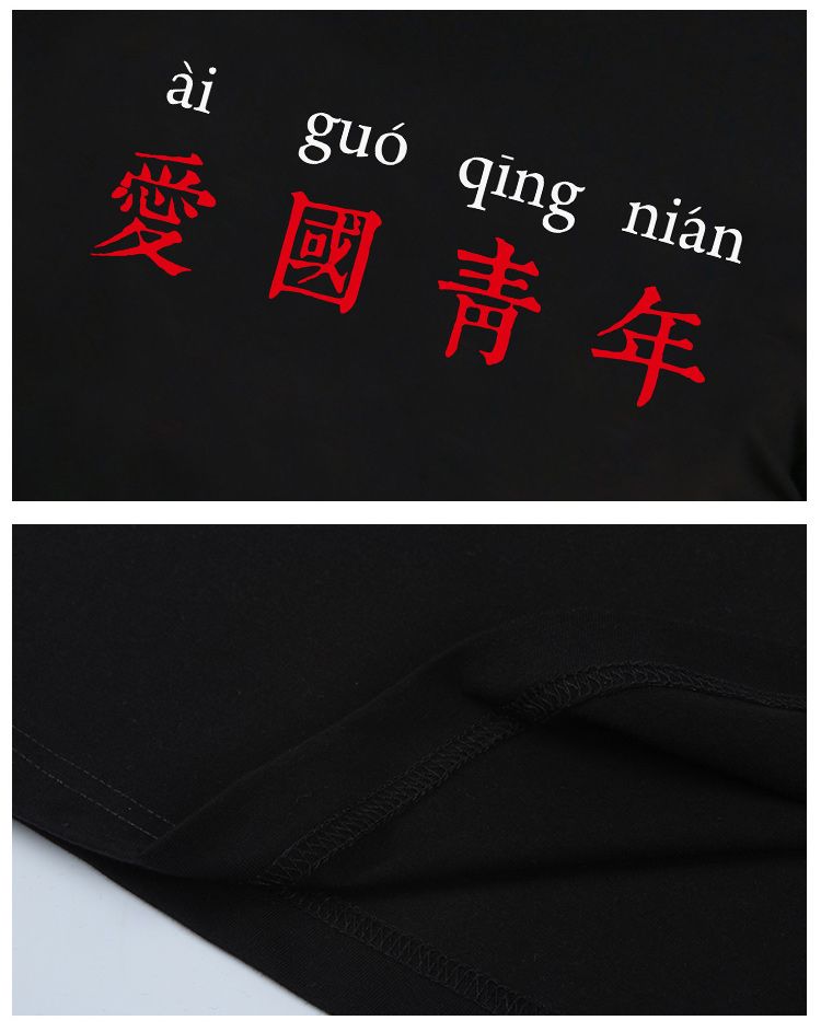 爱国青年潮流简约印花图案纯色夏季短袖T恤国潮半袖打底衫 NMT-1661