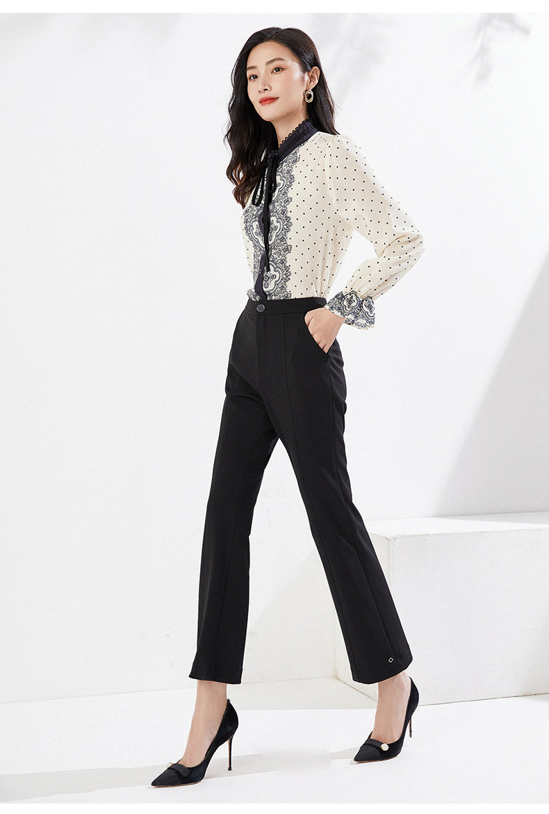 【两色可选】乔万尼早春新款休闲裤直筒微喇显瘦弹力长裤EI3F141