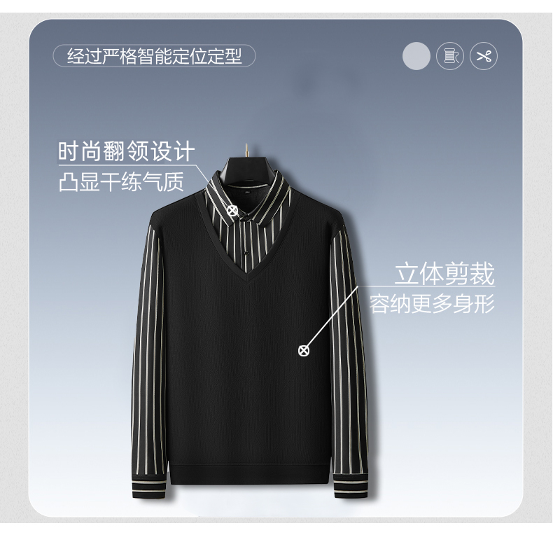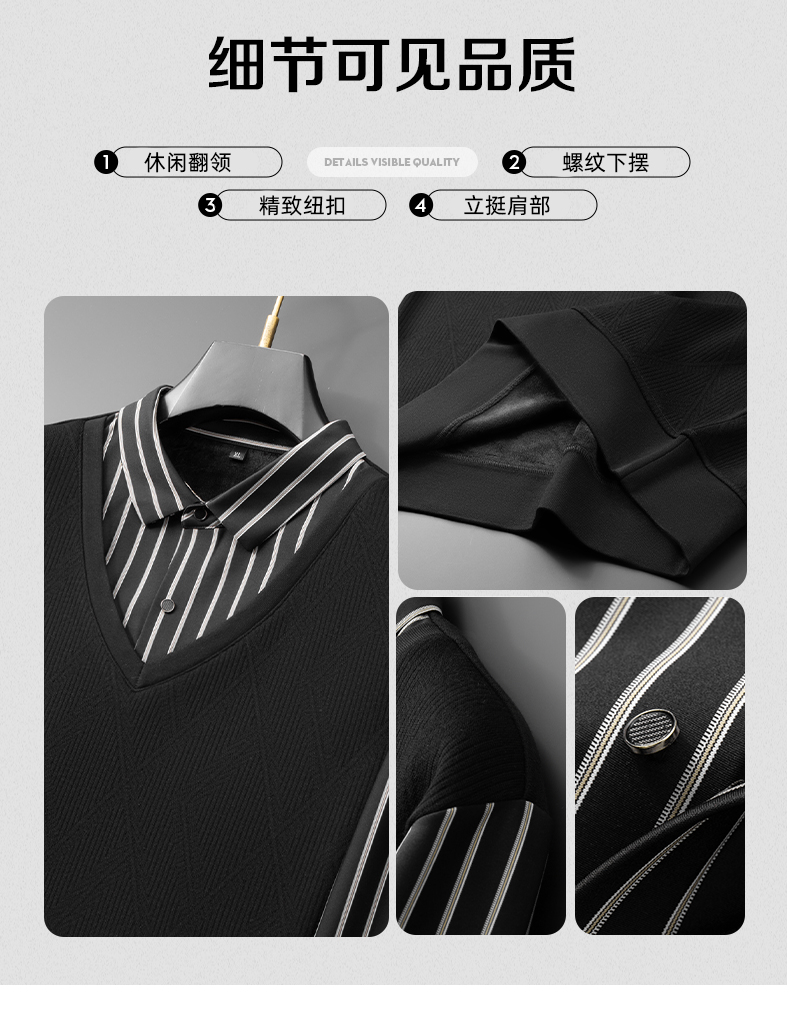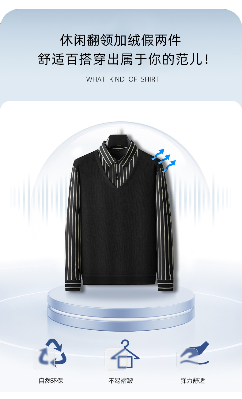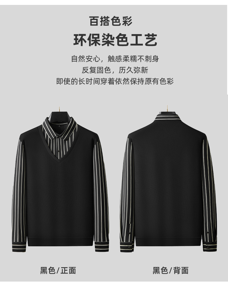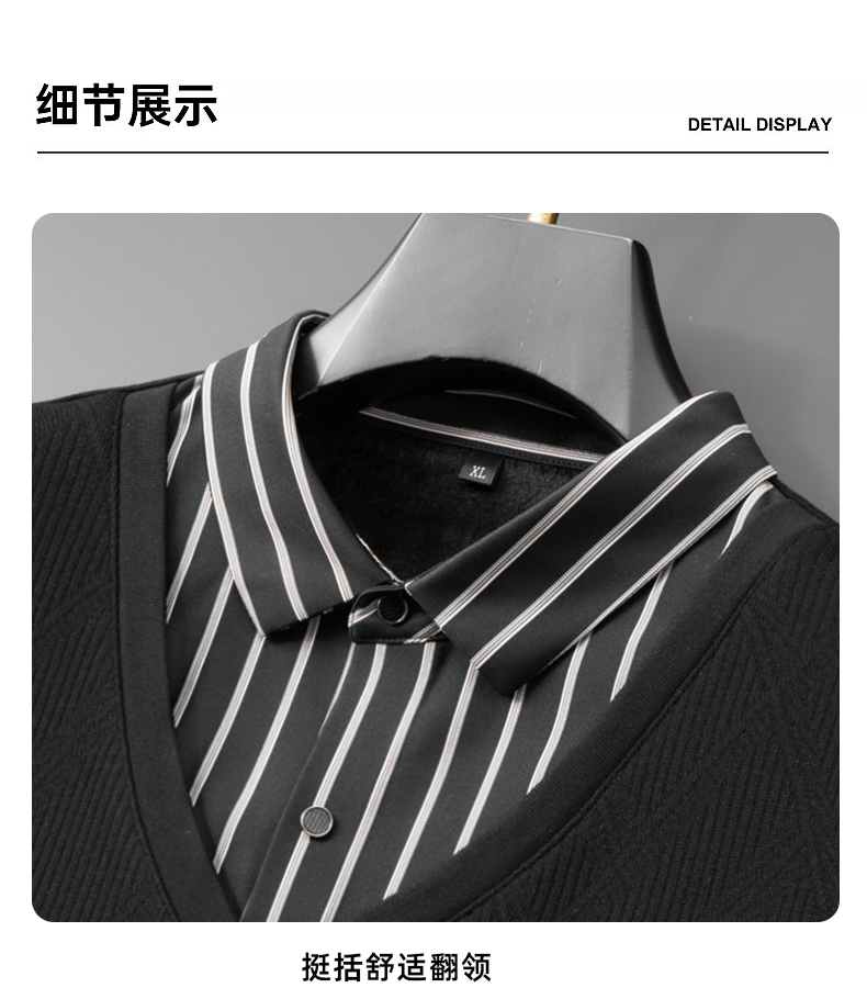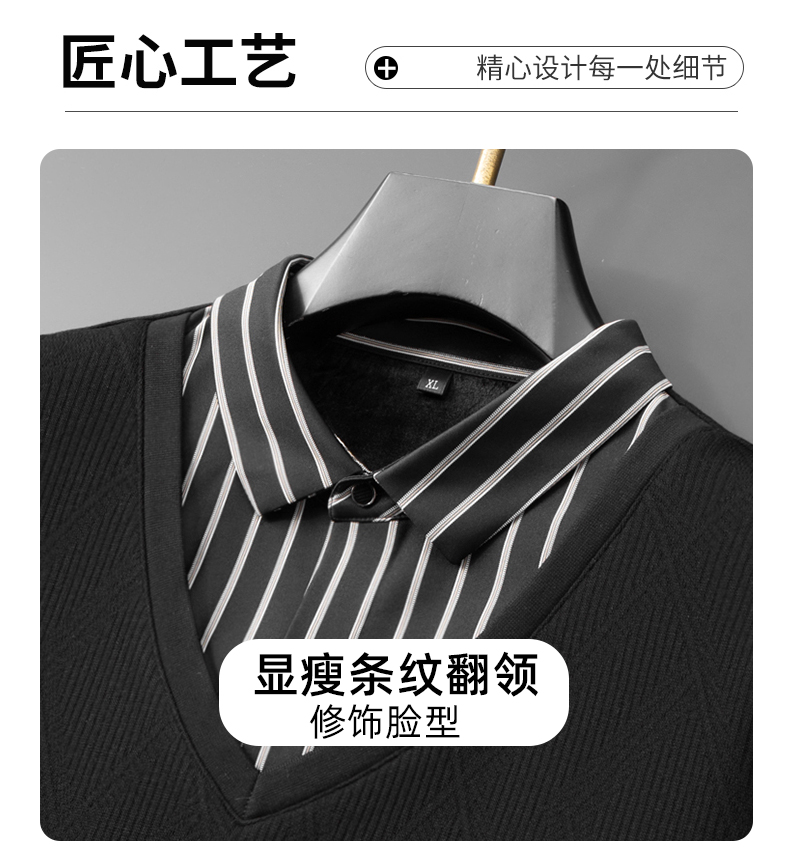 【加绒假两件】【新款DDA】大依优型大码男士假两件长袖T恤商务休闲上衣加肥加大胖子舒适