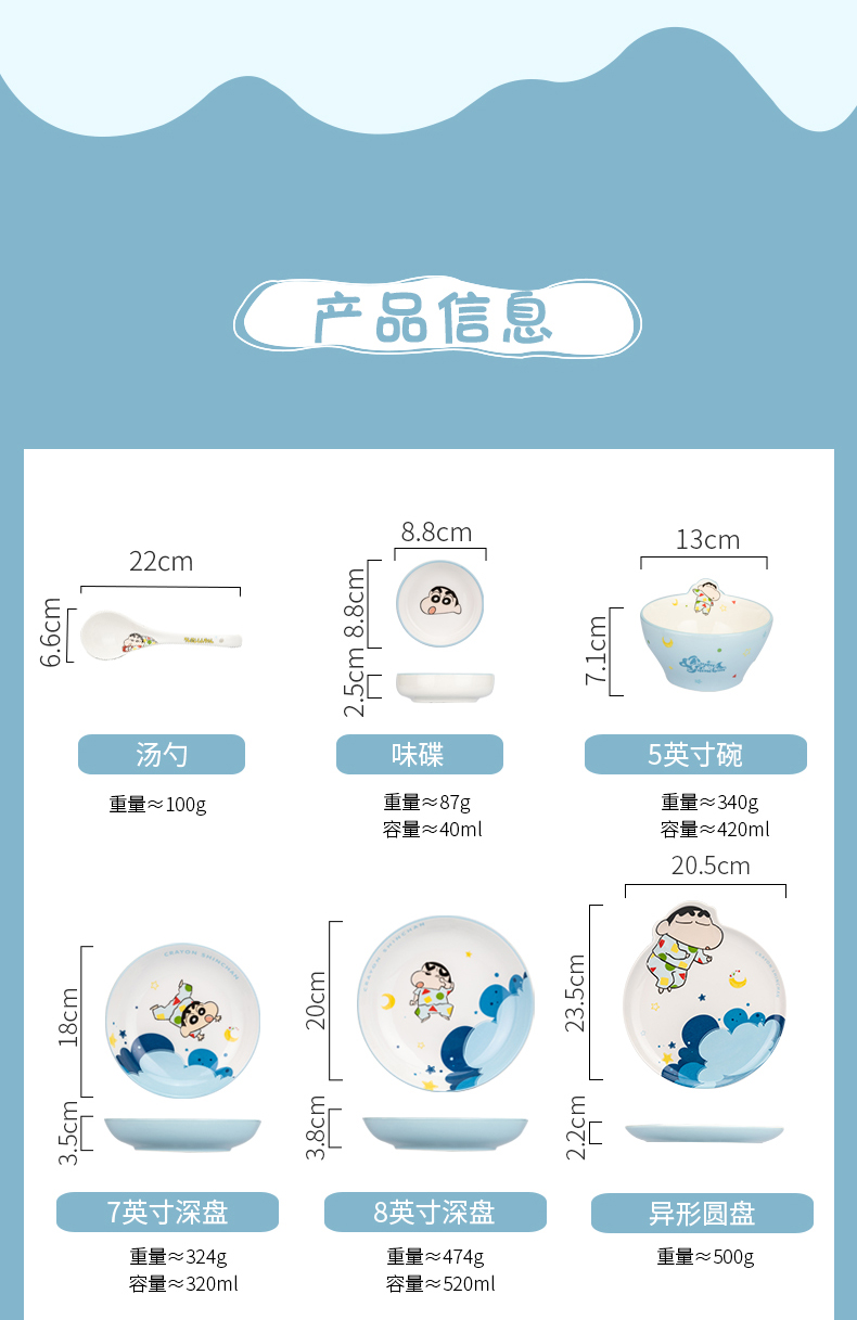 【摩登主妇&蜡笔小新联名】碗具套装菜碟家用陶瓷可爱儿童饭碗盘