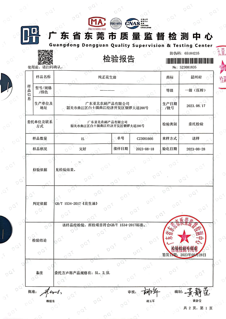 【韶关特产】韶州府纯正花生油,甄选红衣花生,压榨一级花生油,省内包邮