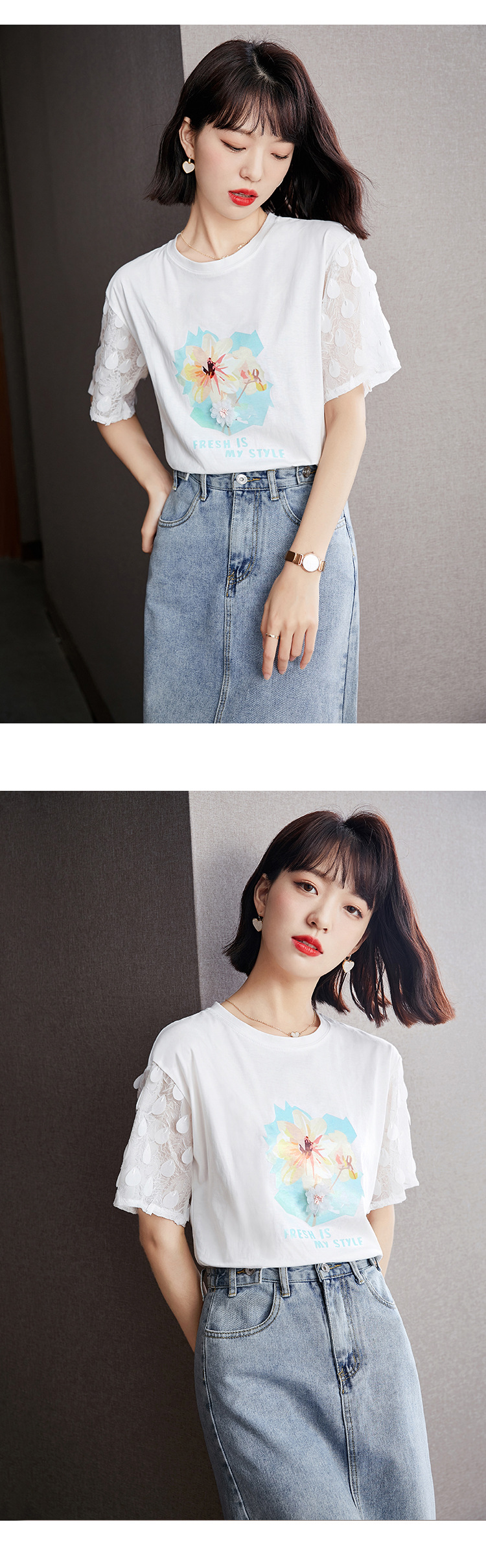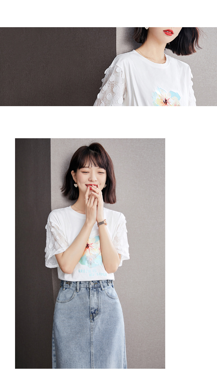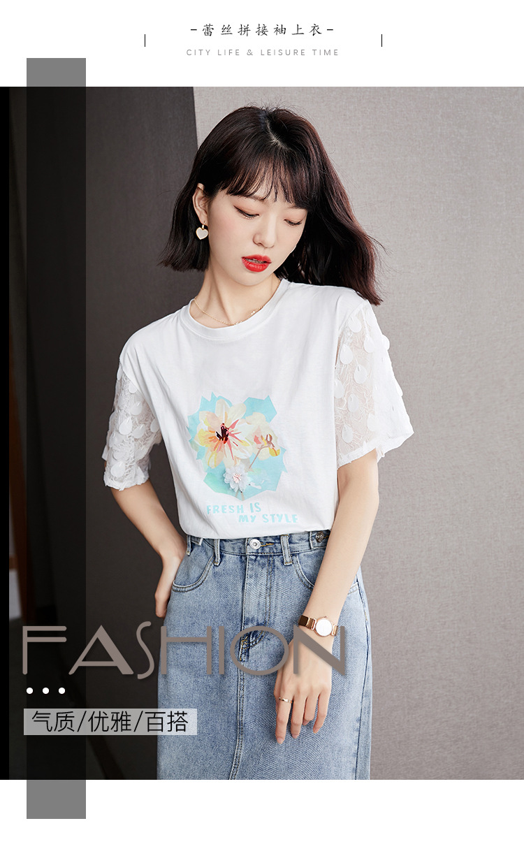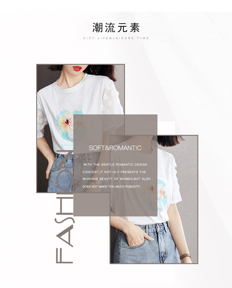 夏季新款,棉质风蕾丝拼接小衫短袖T恤S92327027