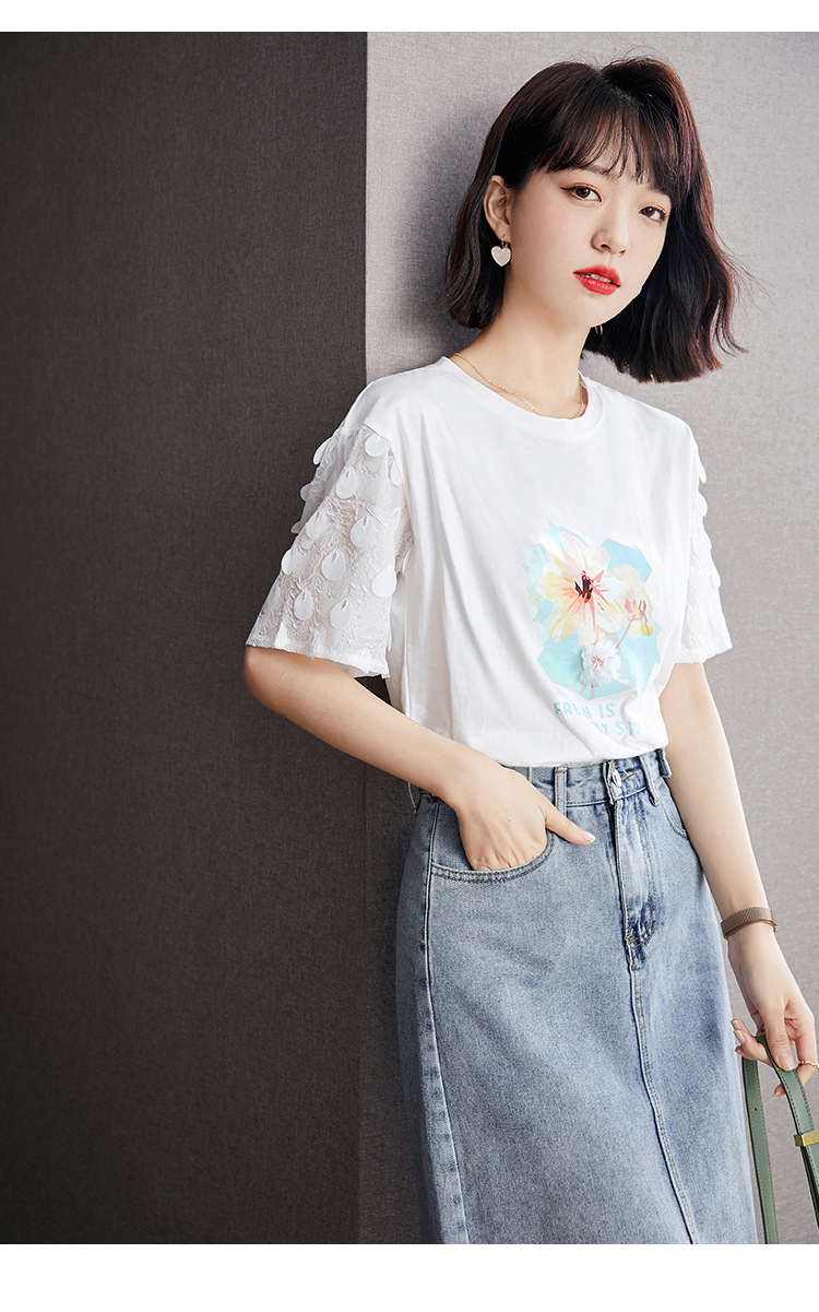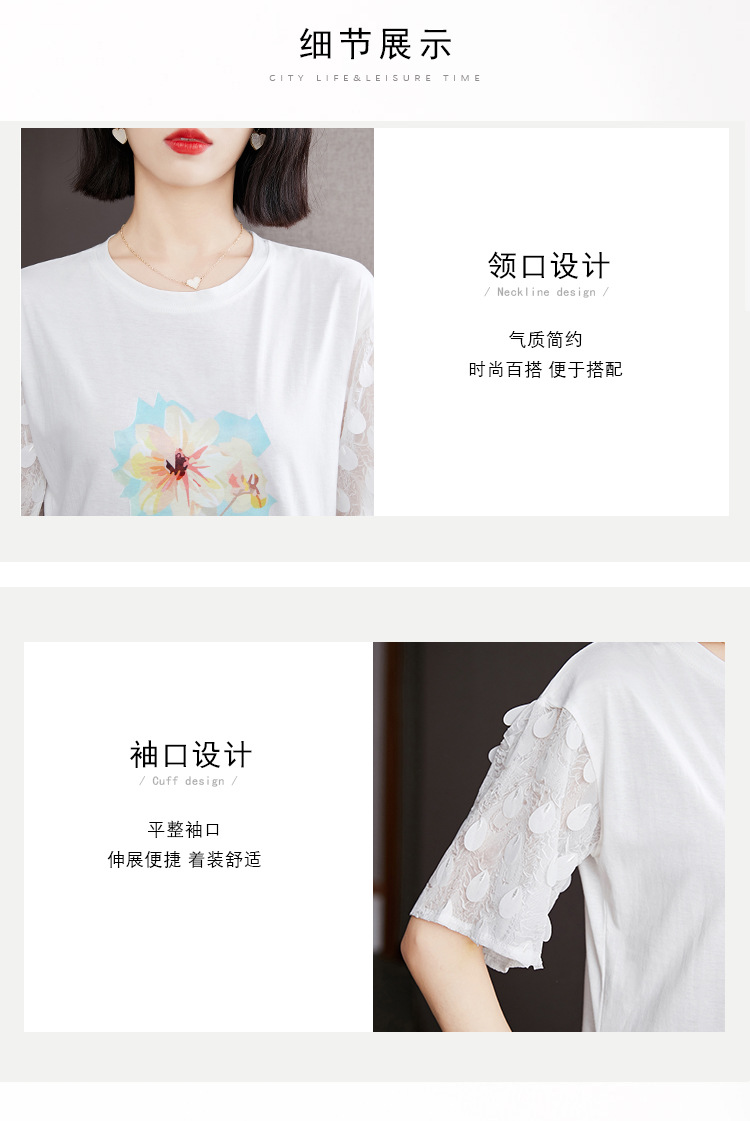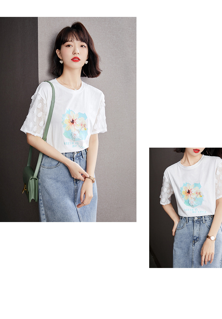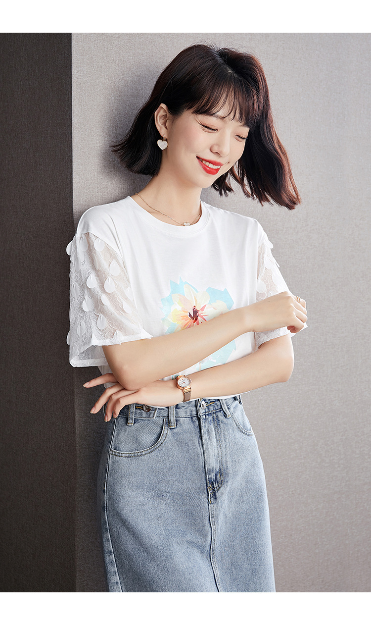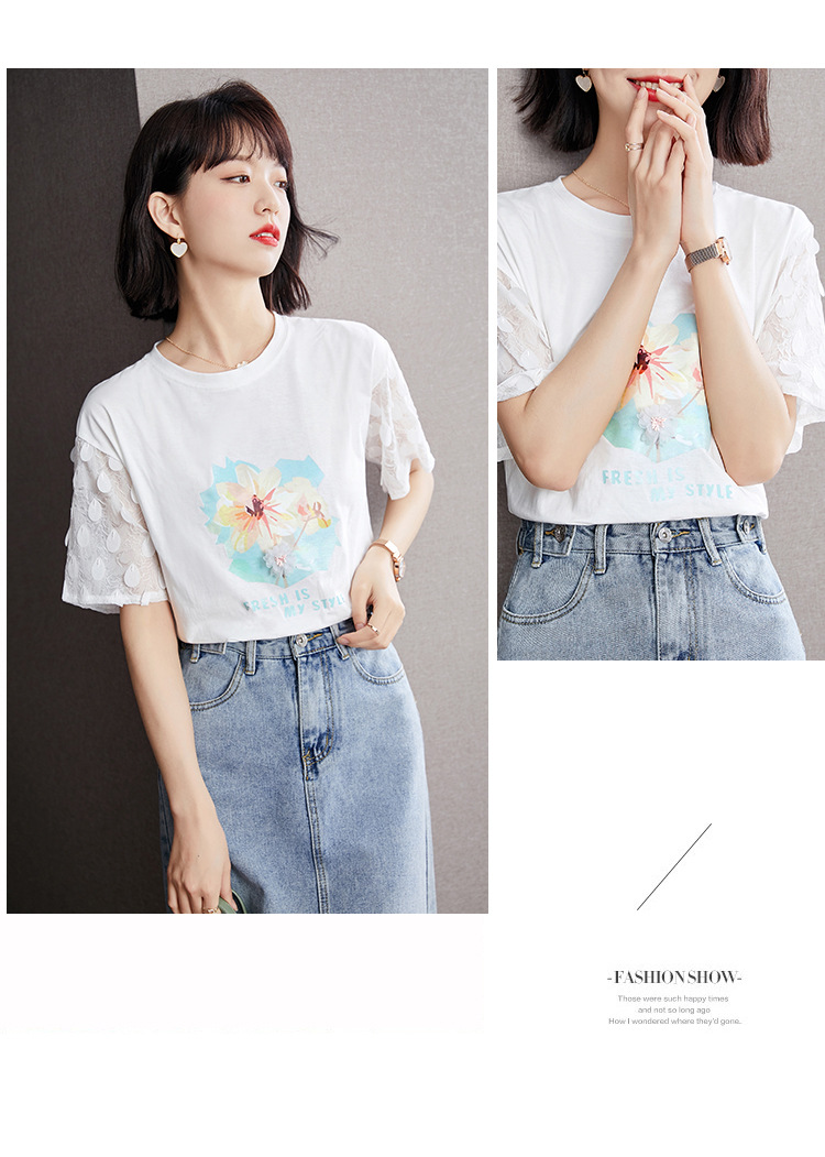 夏季新款,棉质风蕾丝拼接小衫短袖T恤S92327027