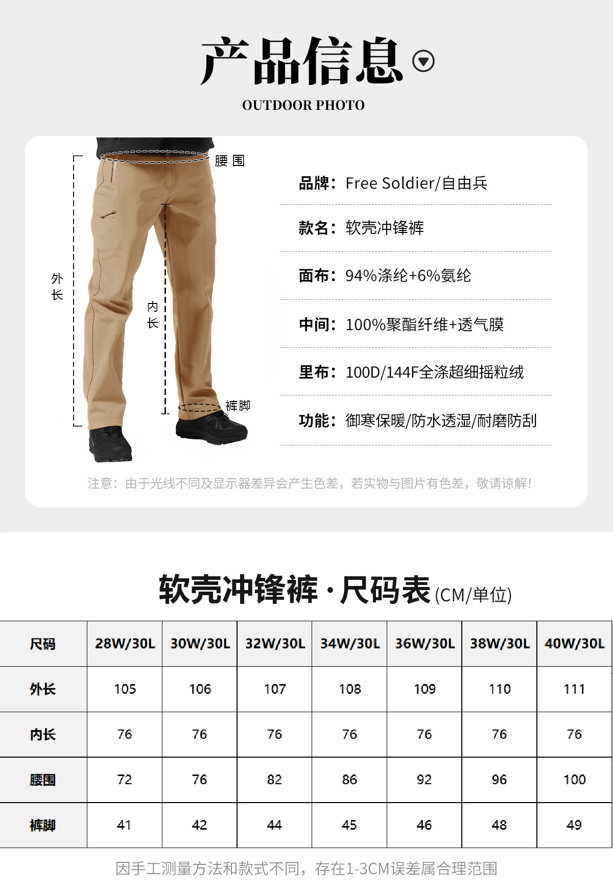 【内里加绒 防泼保暖 多口袋装载】L5级耐磨抗造四面弹力软壳裤 ds(zb)