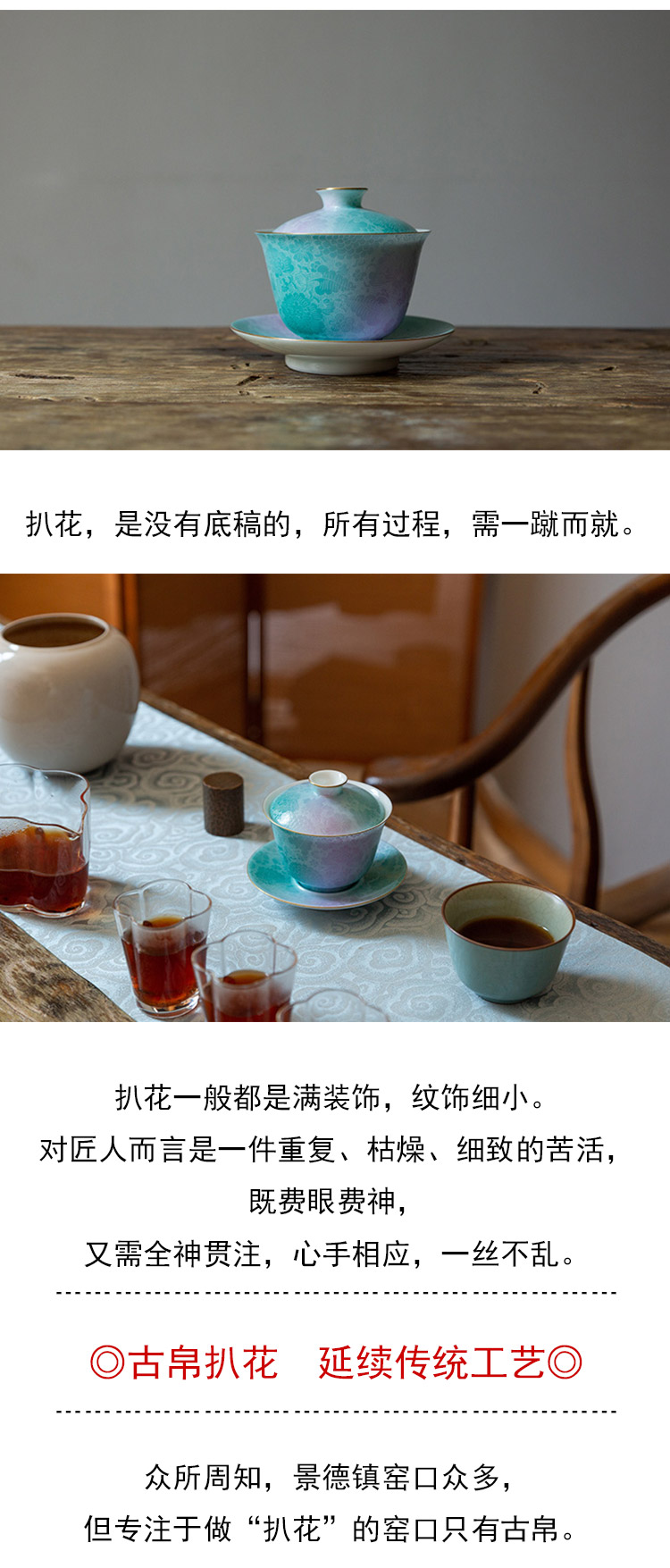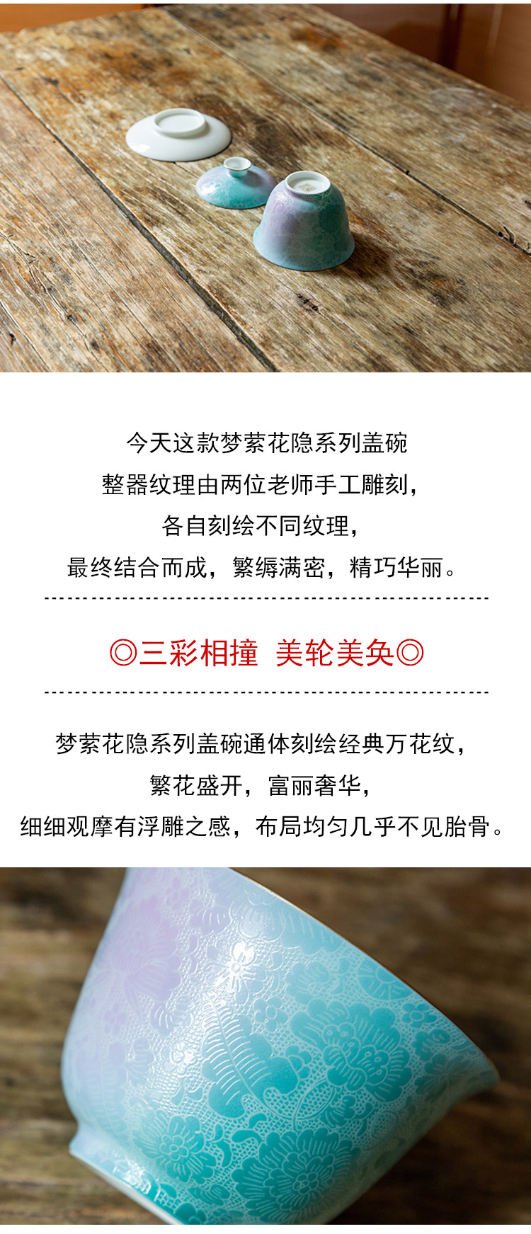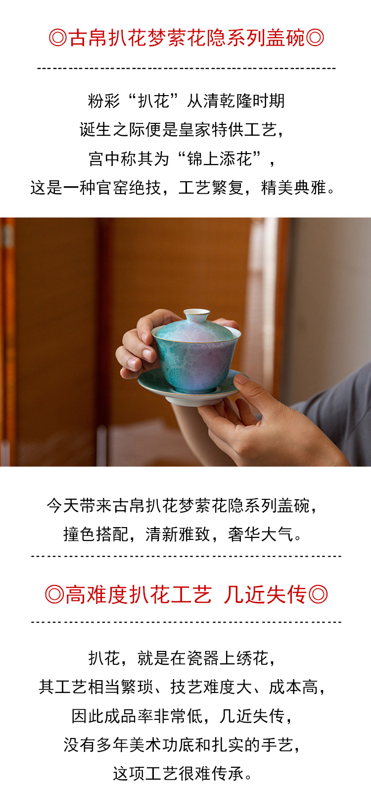 茶香记 古帛扒花 梦萦花隐系列盖碗 陶瓷 流光溢彩 三彩相撞 经典器型 精巧华丽