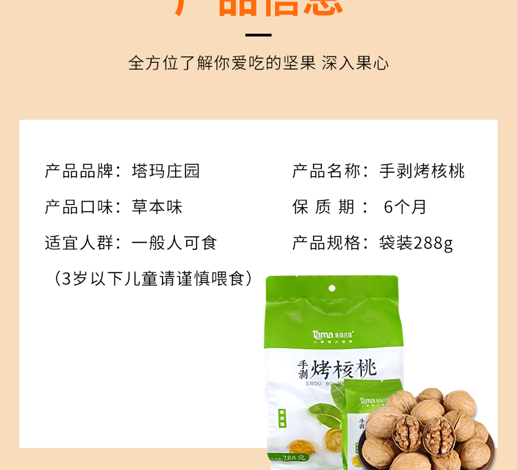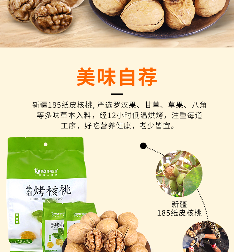 【塔玛庄园】手剥烤核桃草本味纸皮易剥香酥可口老少皆宜健康营养288g