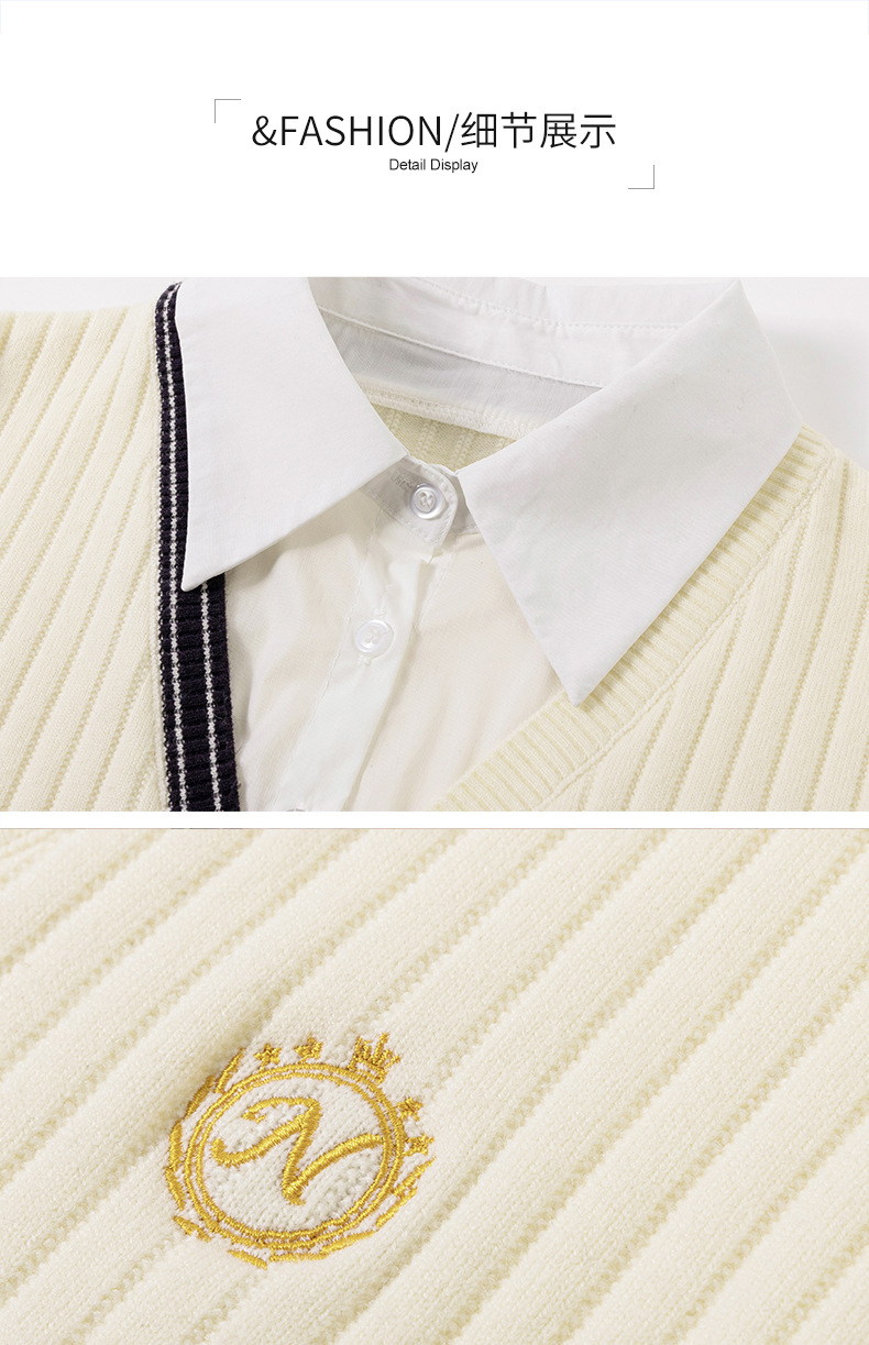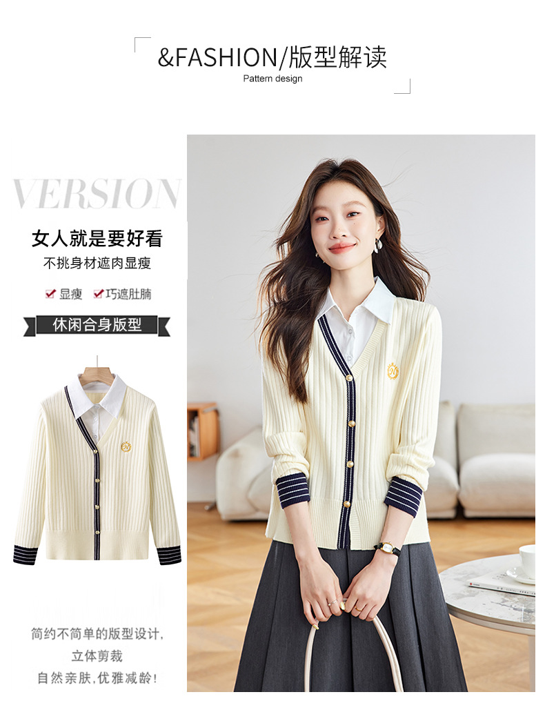 CC 66-6039假两件洋气上衣显瘦减龄拼接毛衣