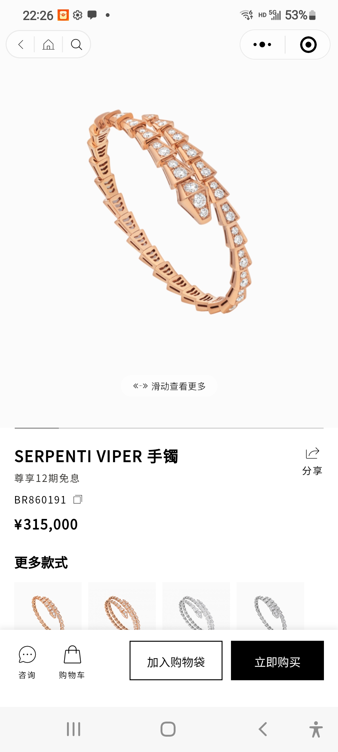 上新 BVLGARI 宝格丽灵蛇 蛇骨手镯