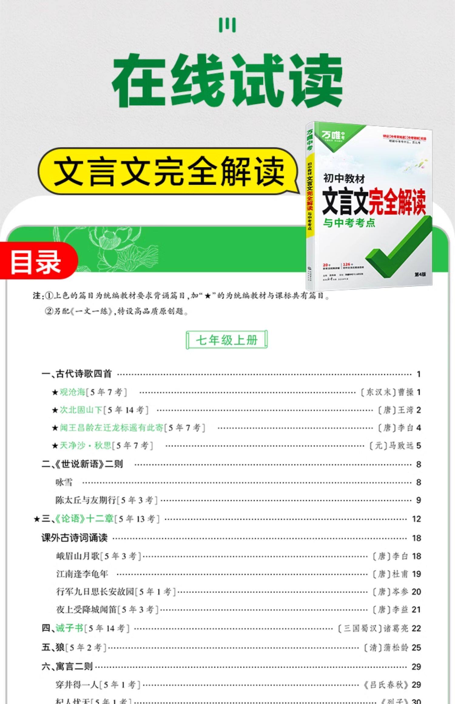 初中文言文完全解读万唯中考2024语文文言文全解专项训练初一初二初三八九七年级古诗文阅读理解初中语文复习资料
