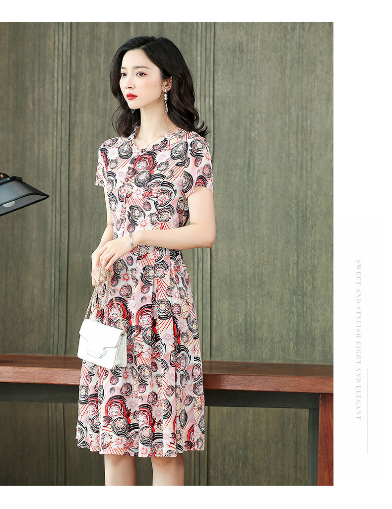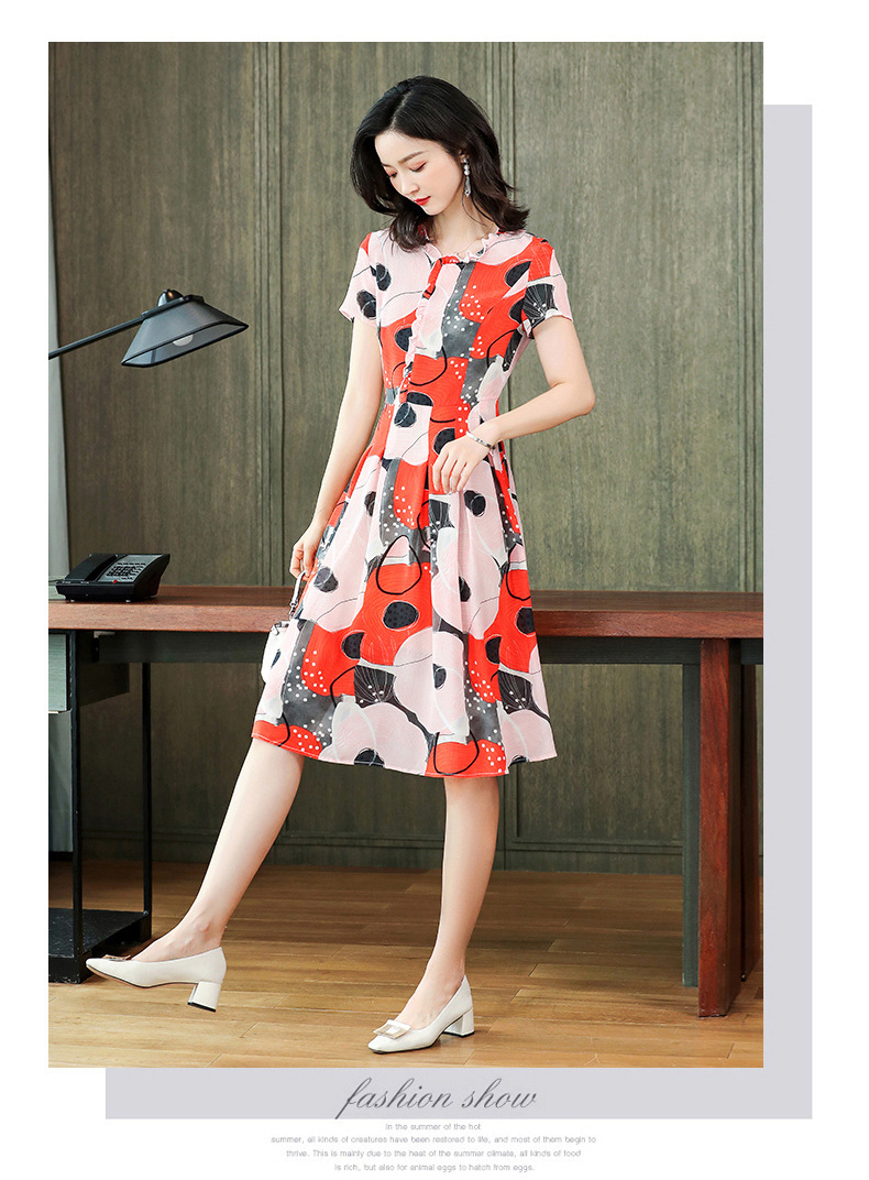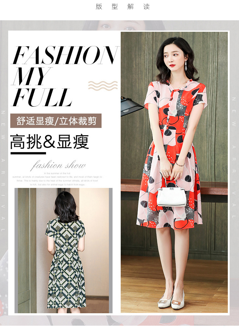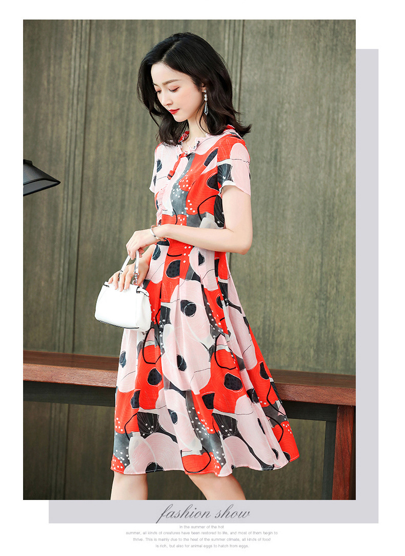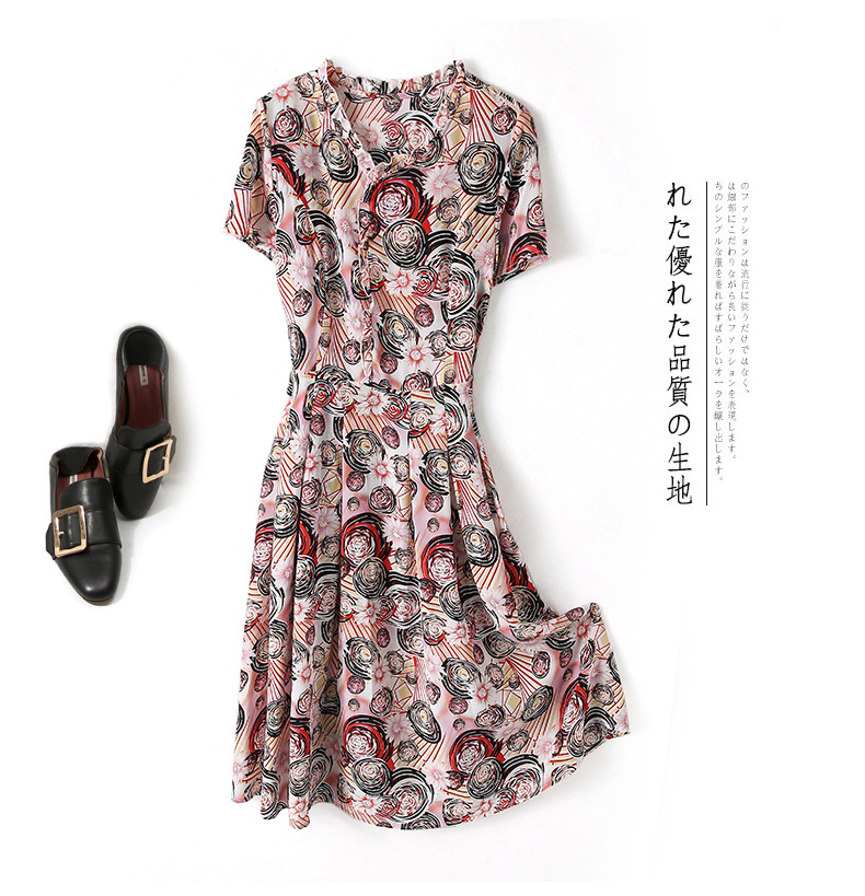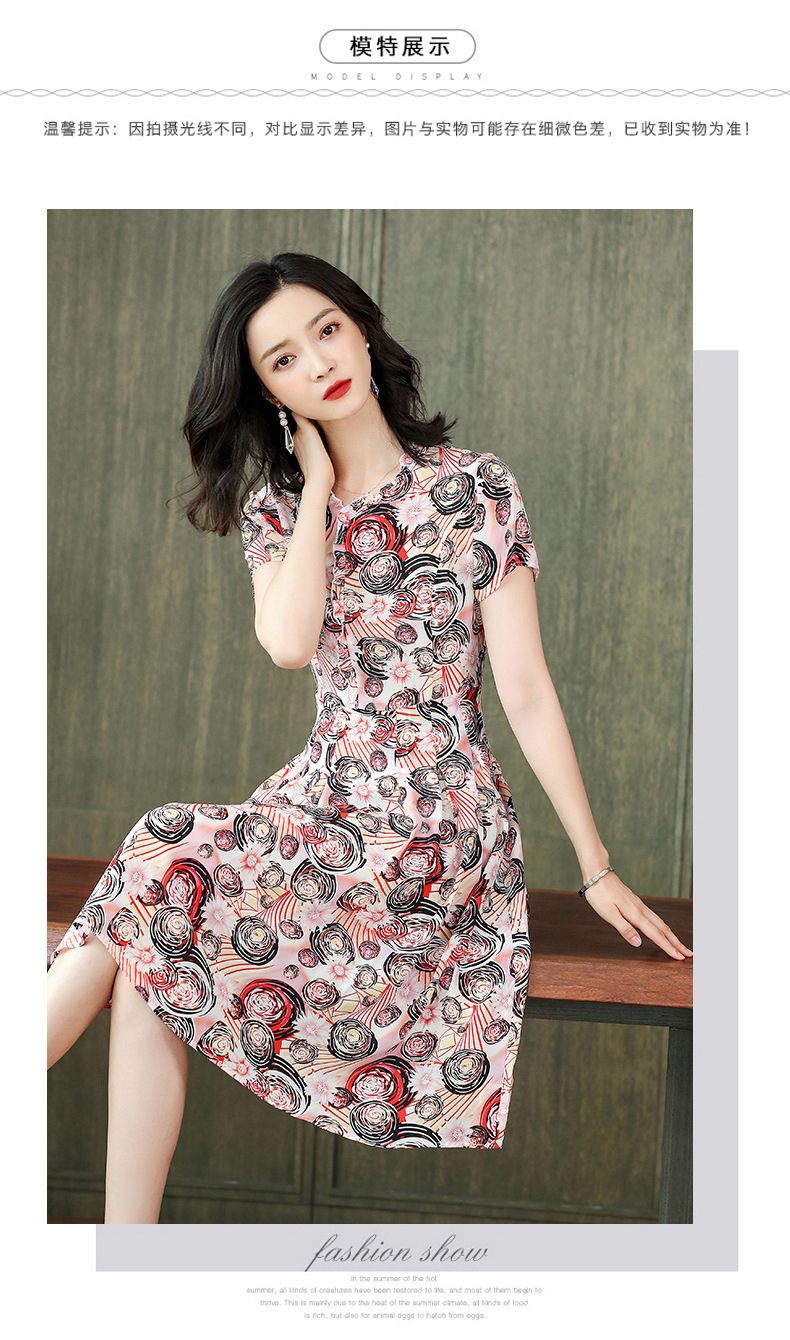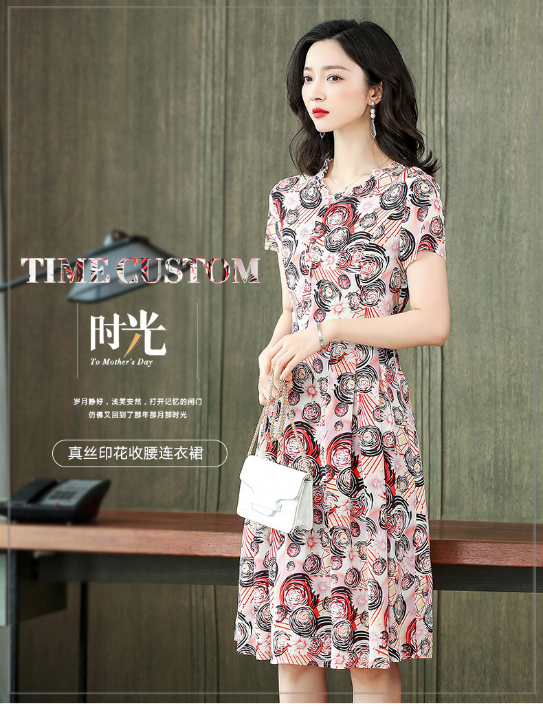 上海旗袍厂ASE-2267收腰印花时尚真丝连衣裙