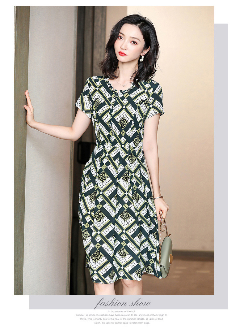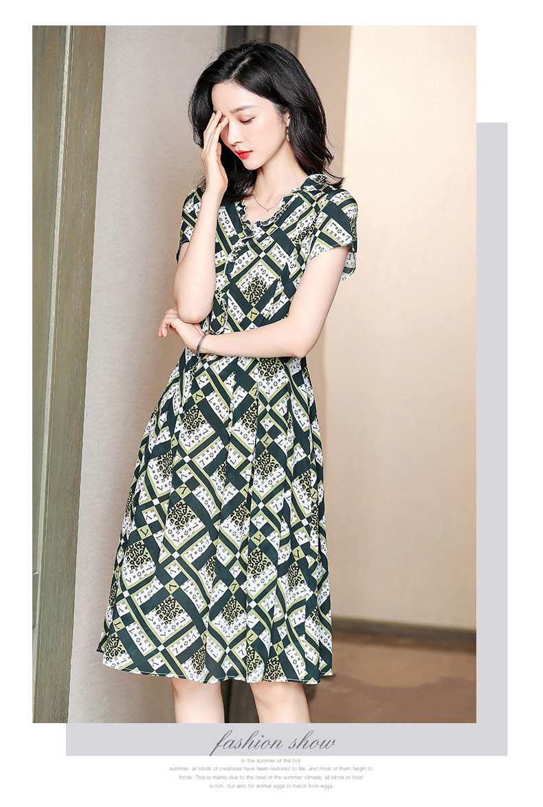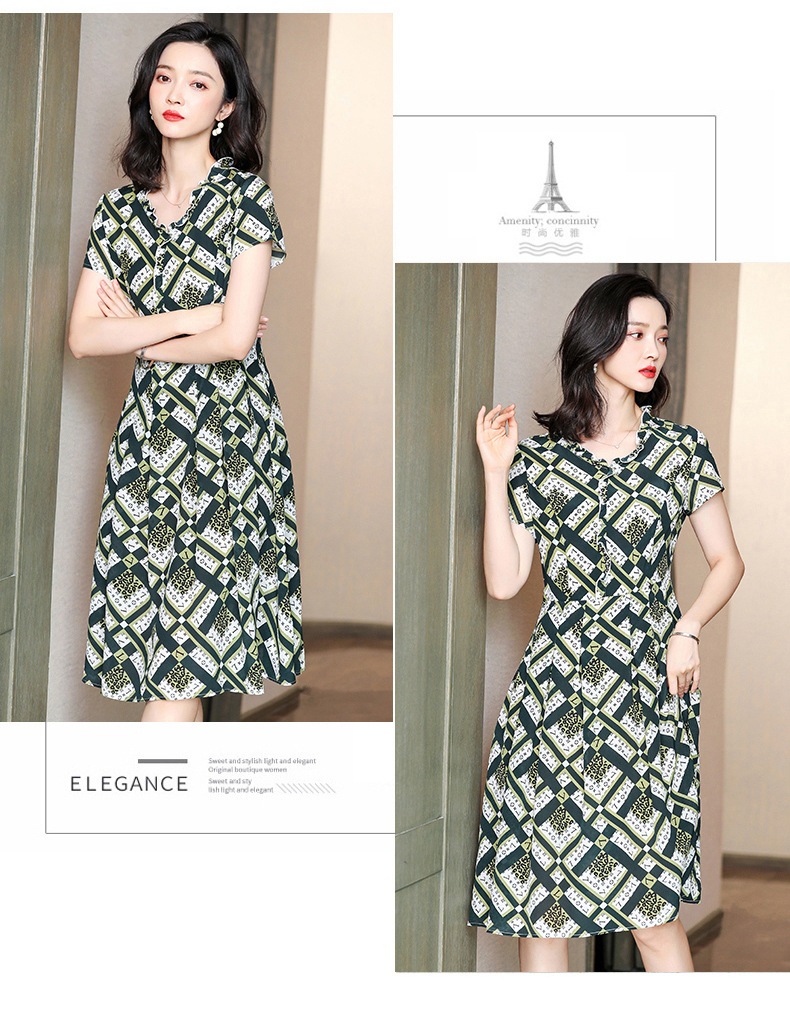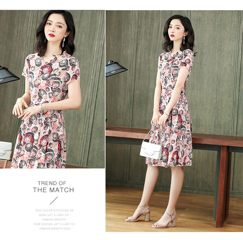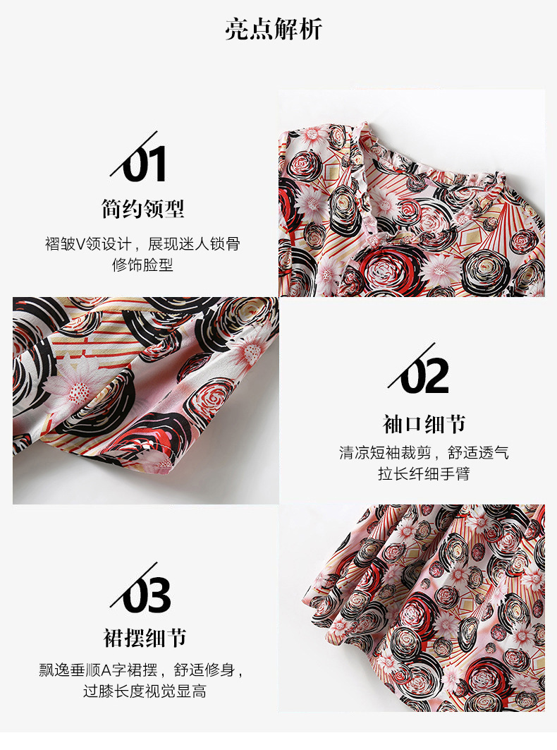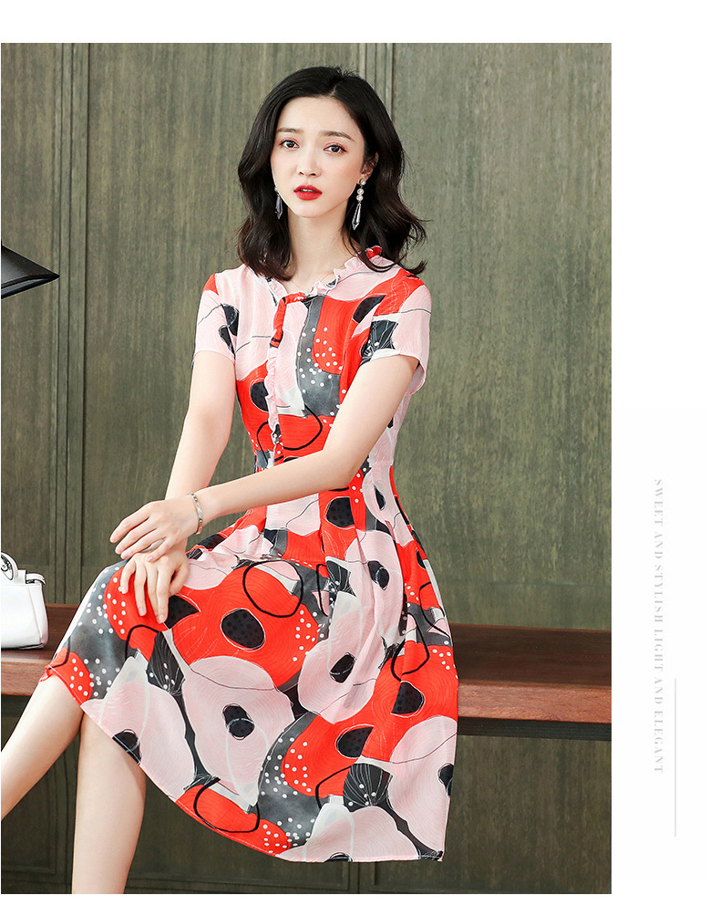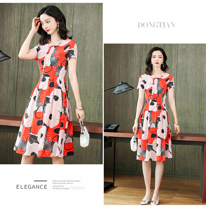 上海旗袍厂ASE-2267收腰印花时尚真丝连衣裙