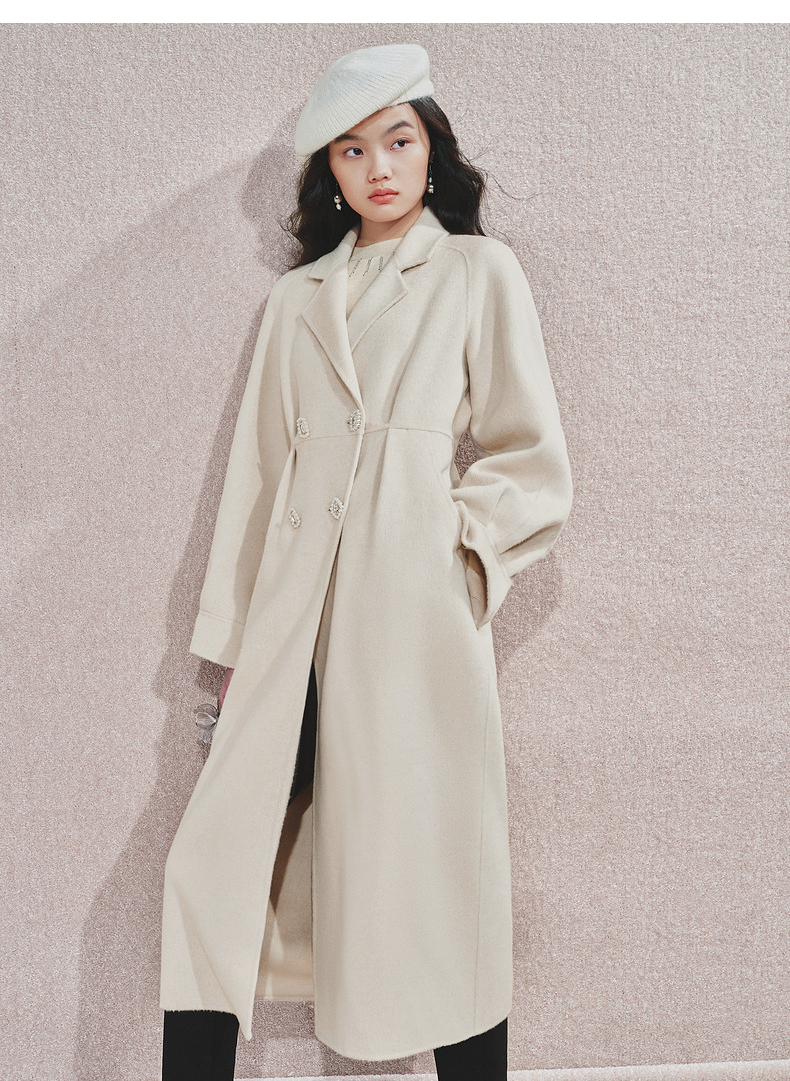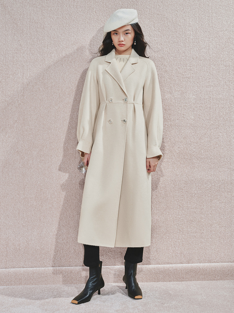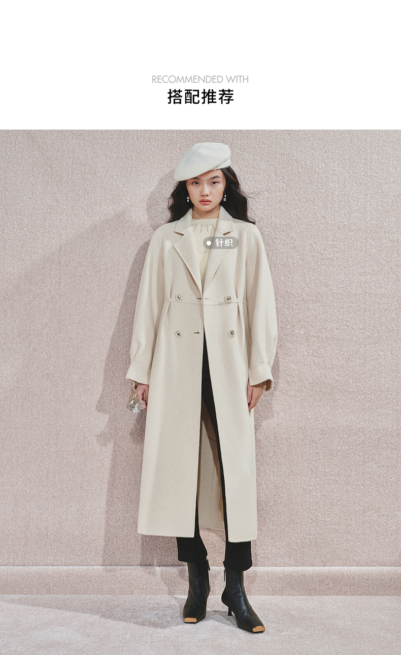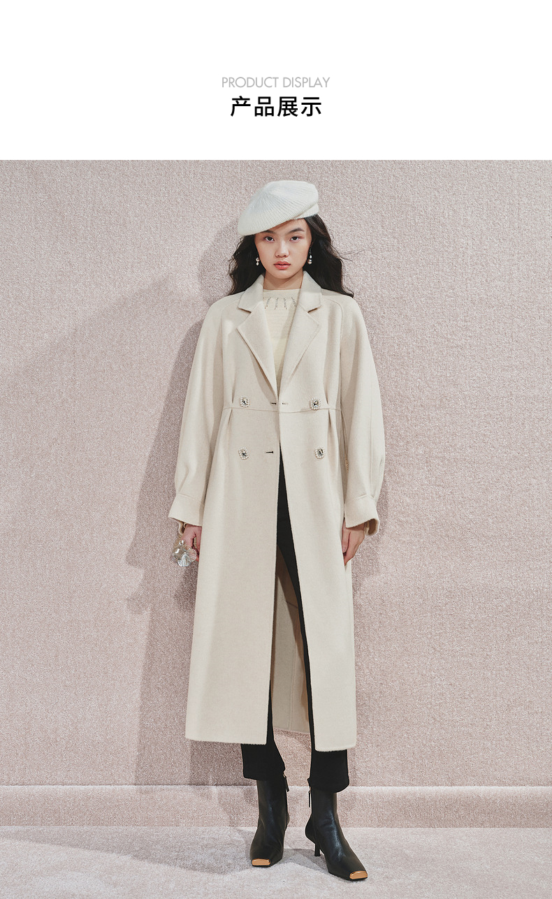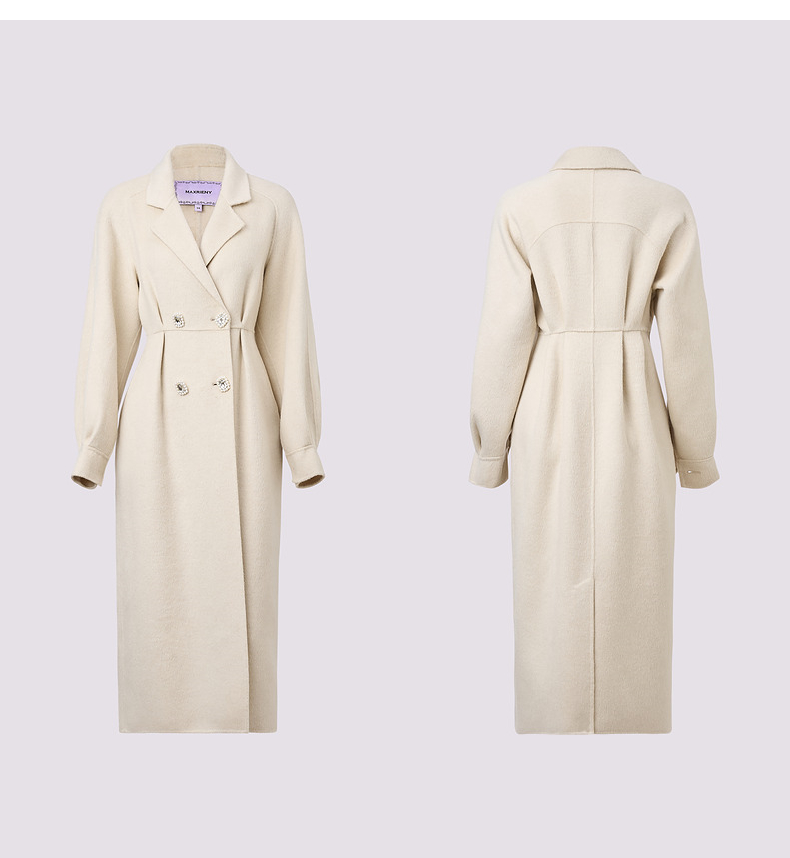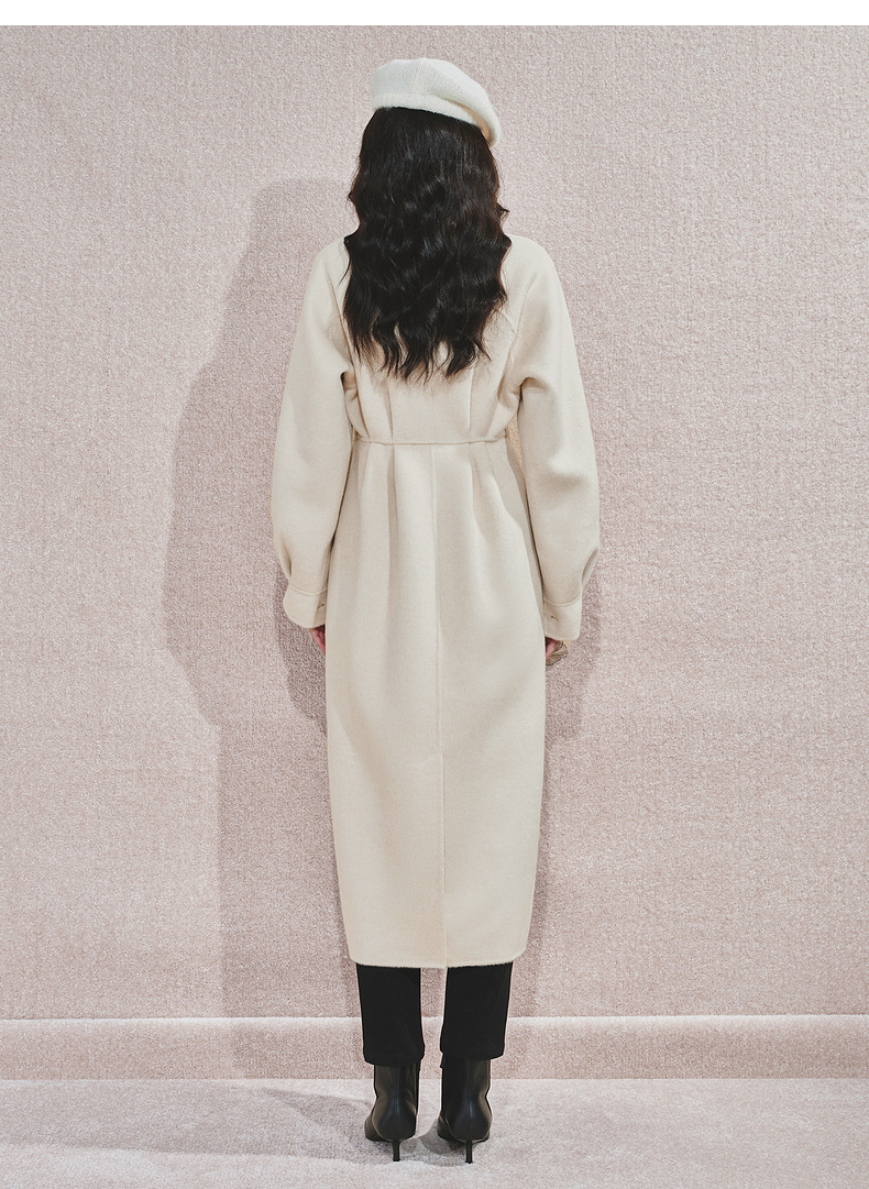 MAXRIENY极简绵羊毛大衣收腰藏肉24冬新款女装廓形毛呢过膝中长款(货号:MS85CT506)