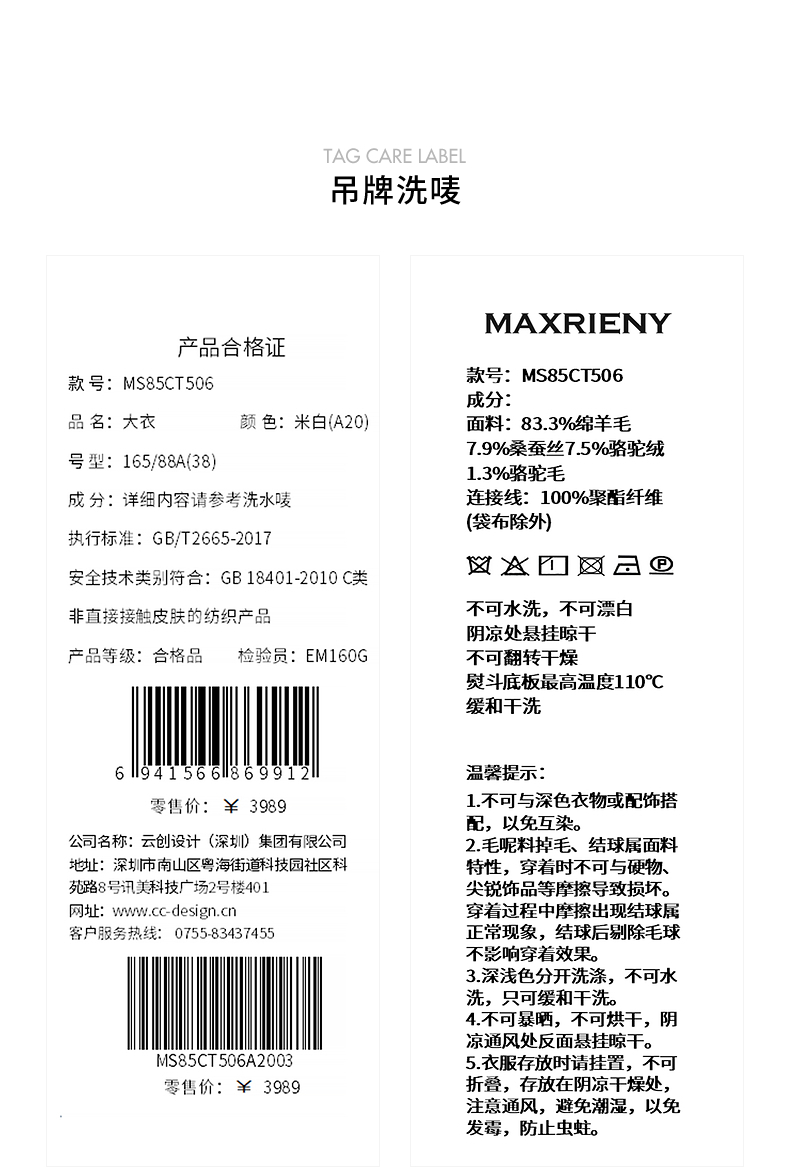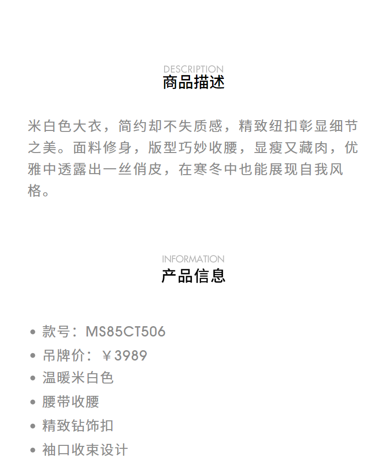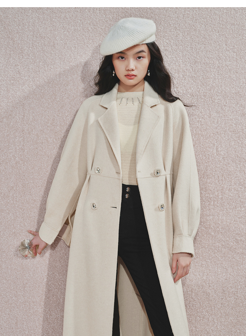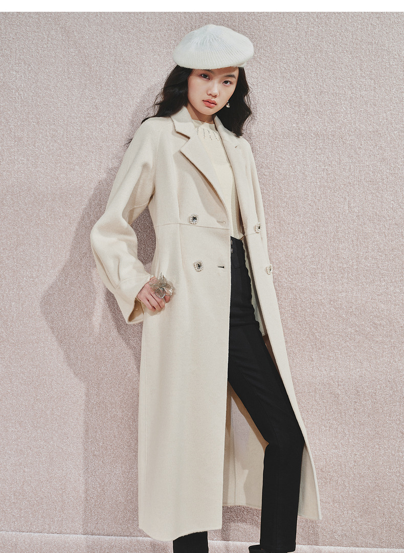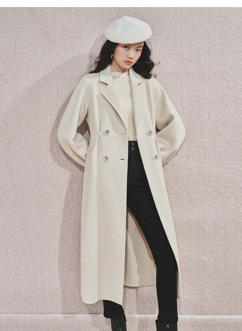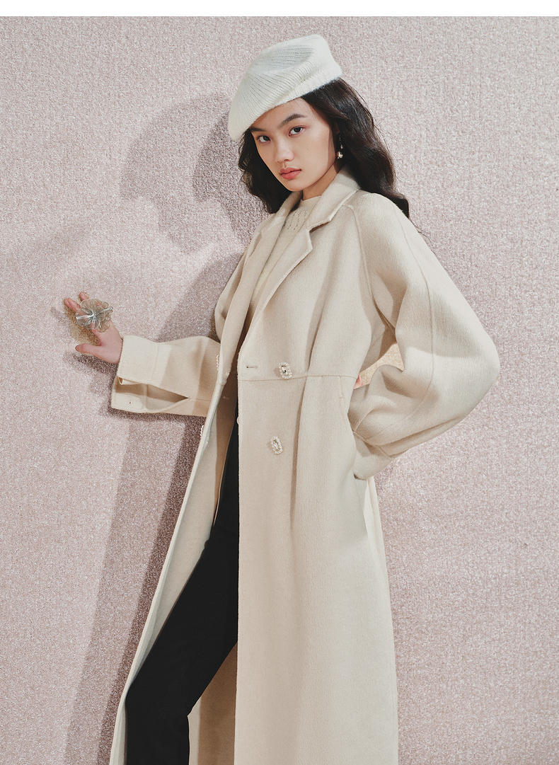 MAXRIENY极简绵羊毛大衣收腰藏肉24冬新款女装廓形毛呢过膝中长款(货号:MS85CT506)