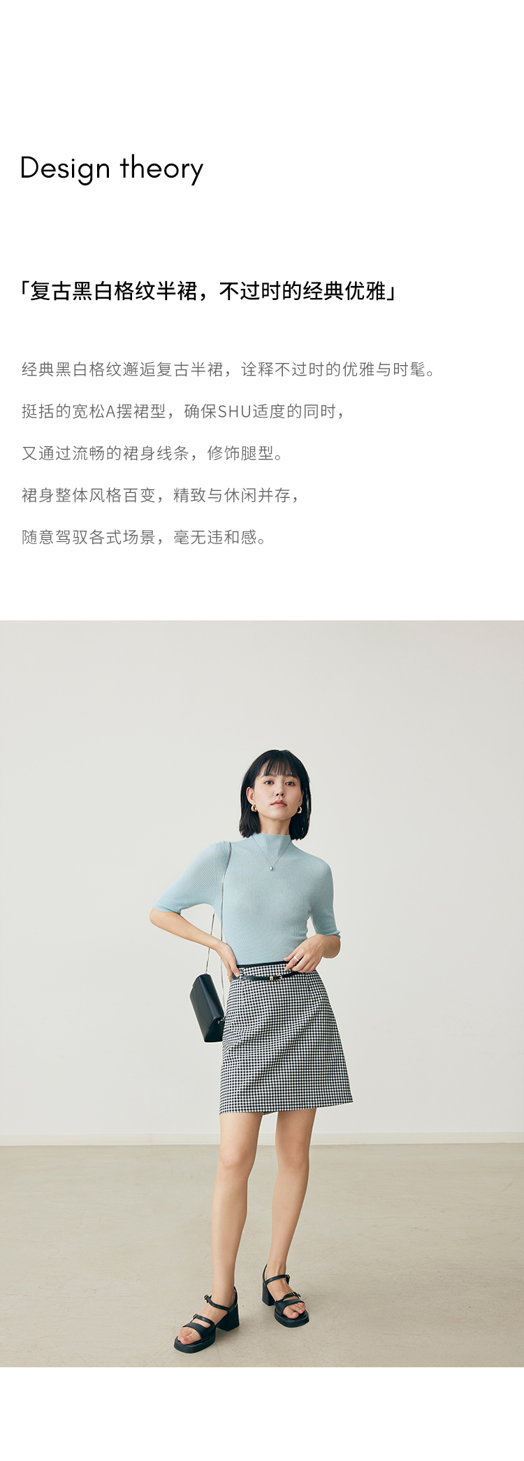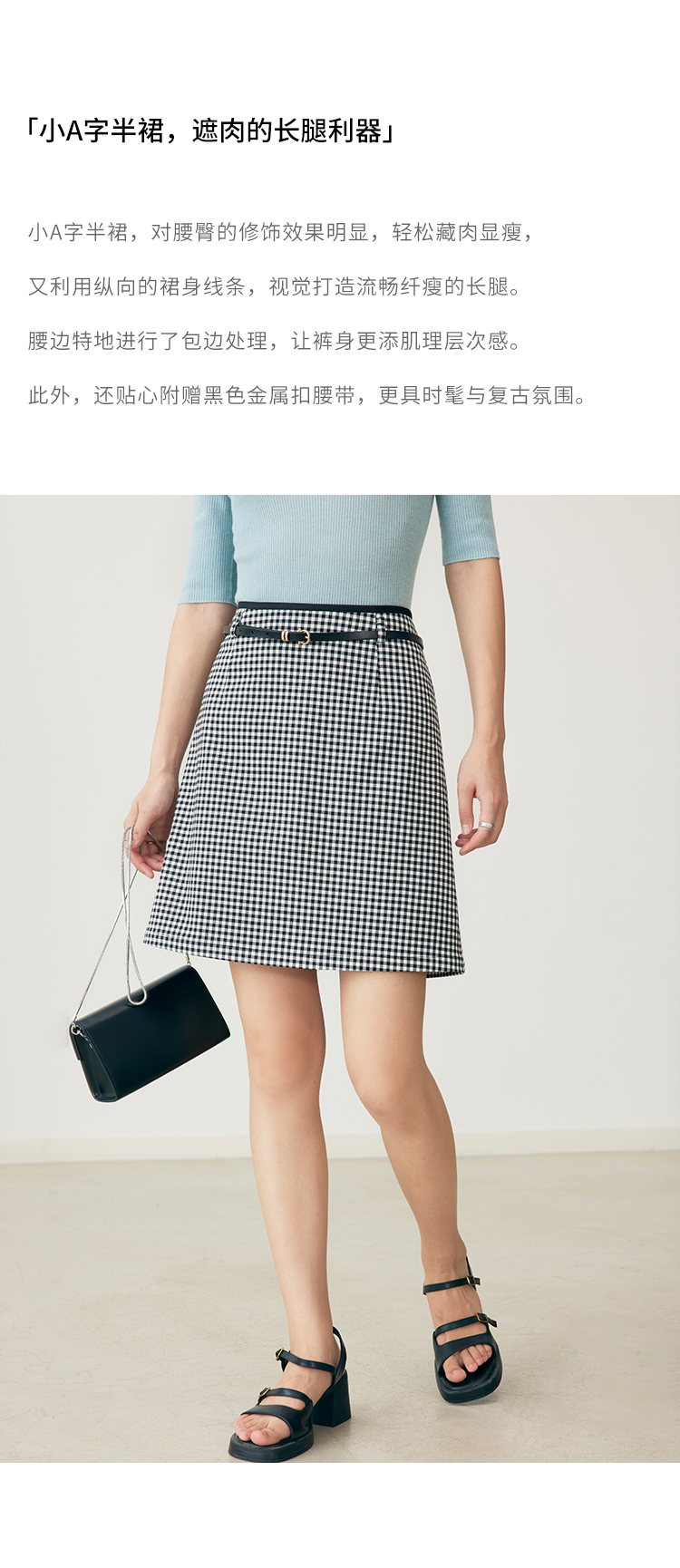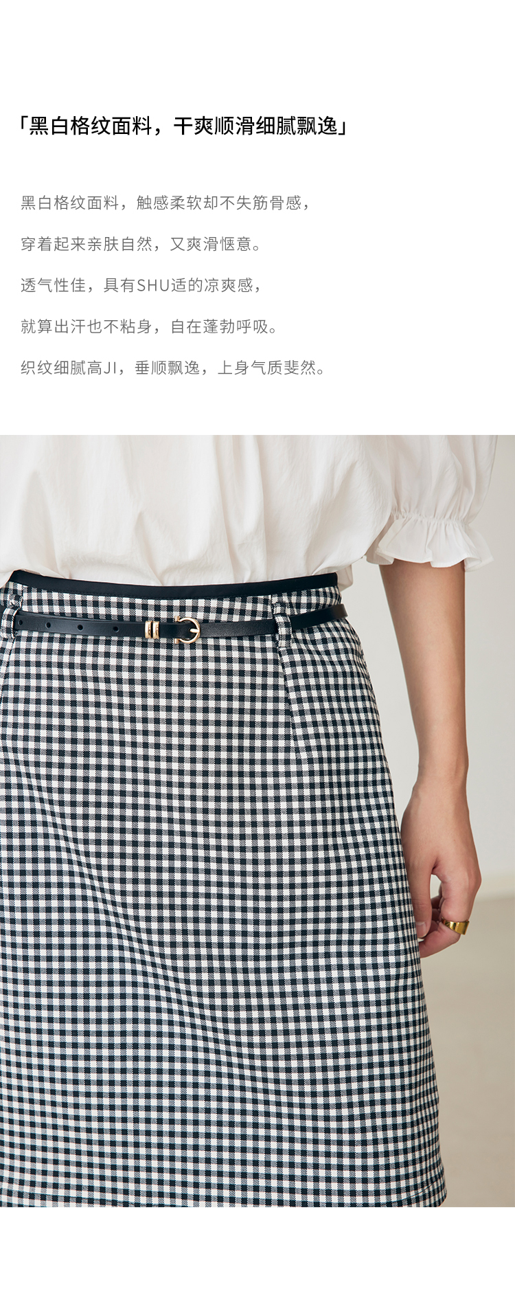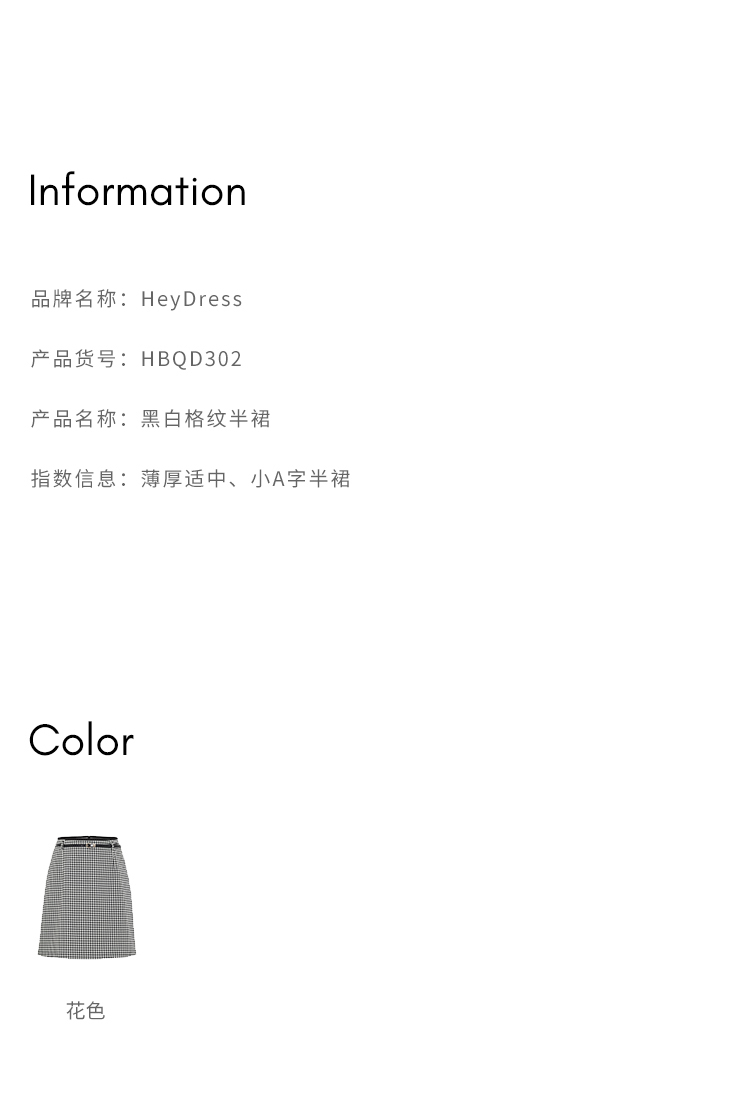 HeyDress法式黑白格纹半身裙女夏季高腰复古半裙优雅气质裙子