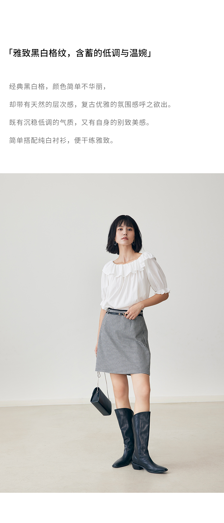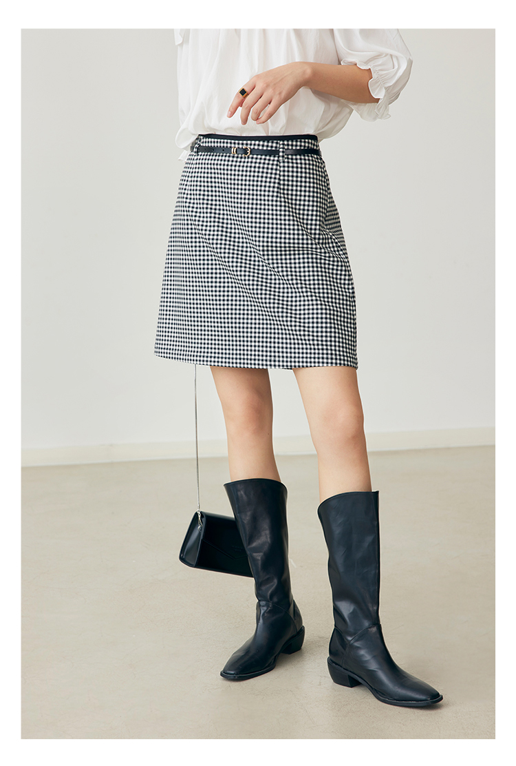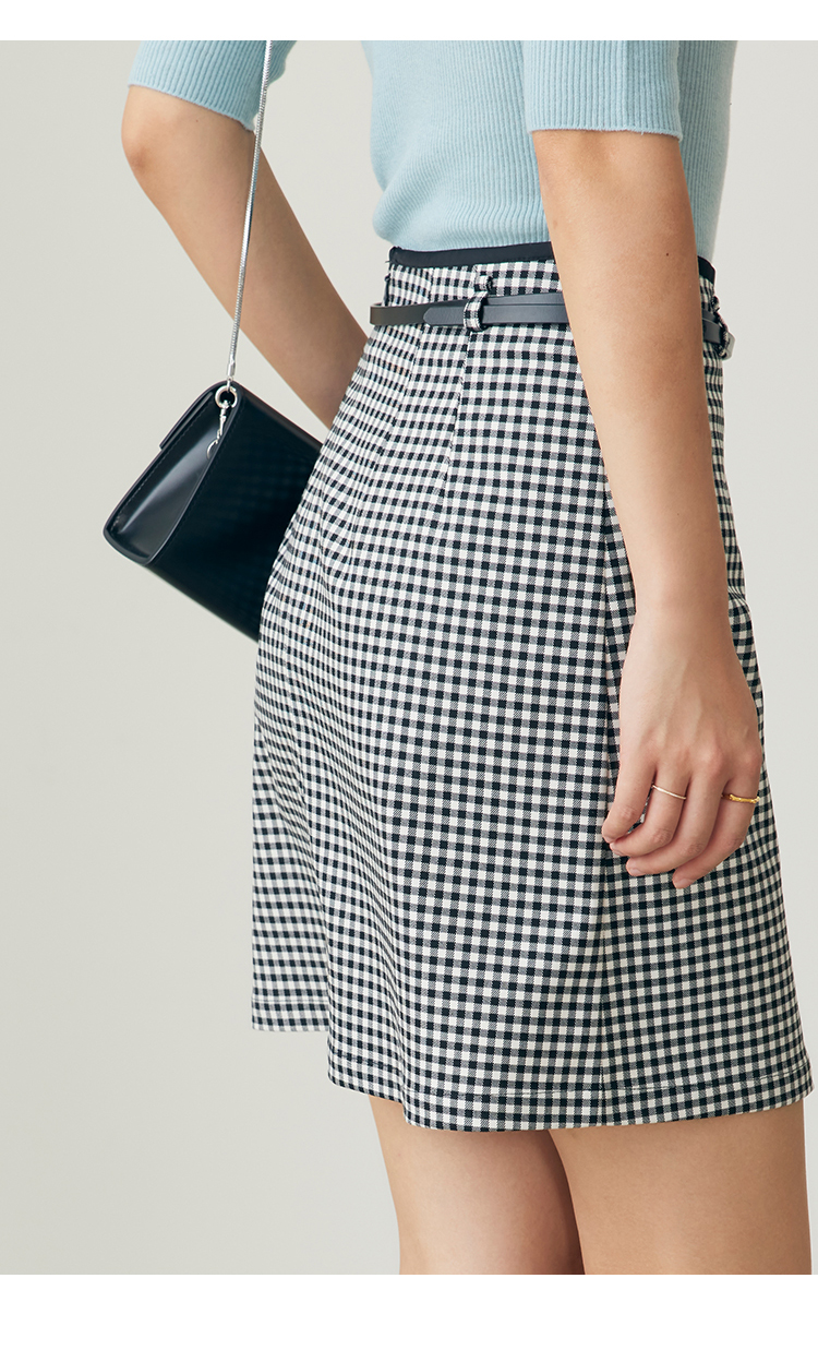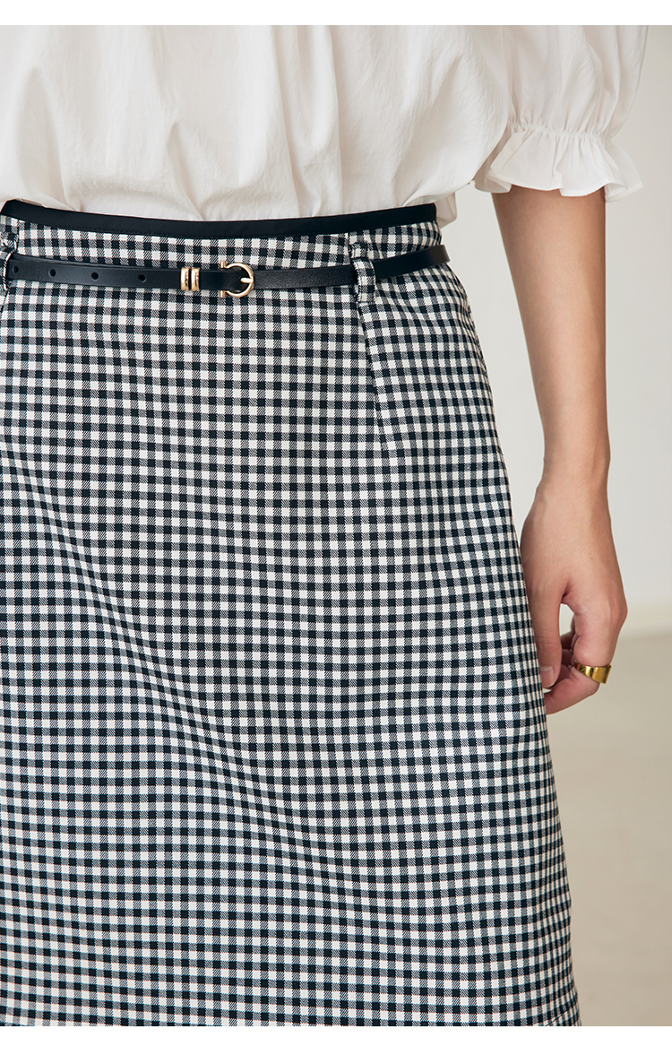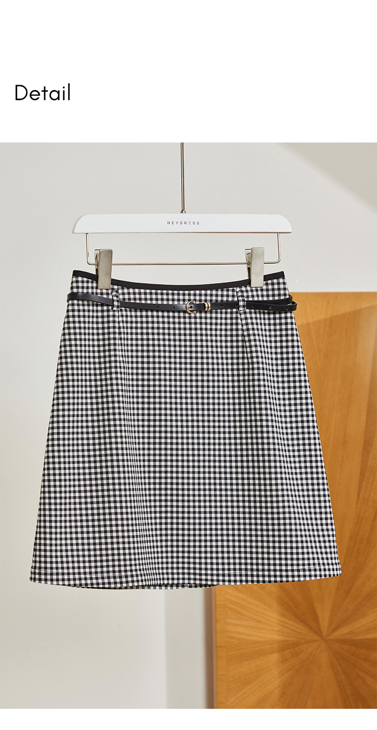 HeyDress法式黑白格纹半身裙女夏季高腰复古半裙优雅气质裙子