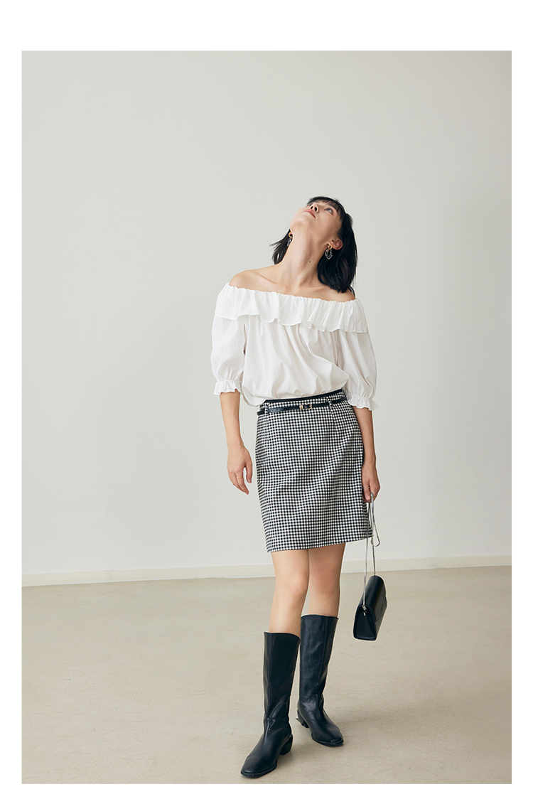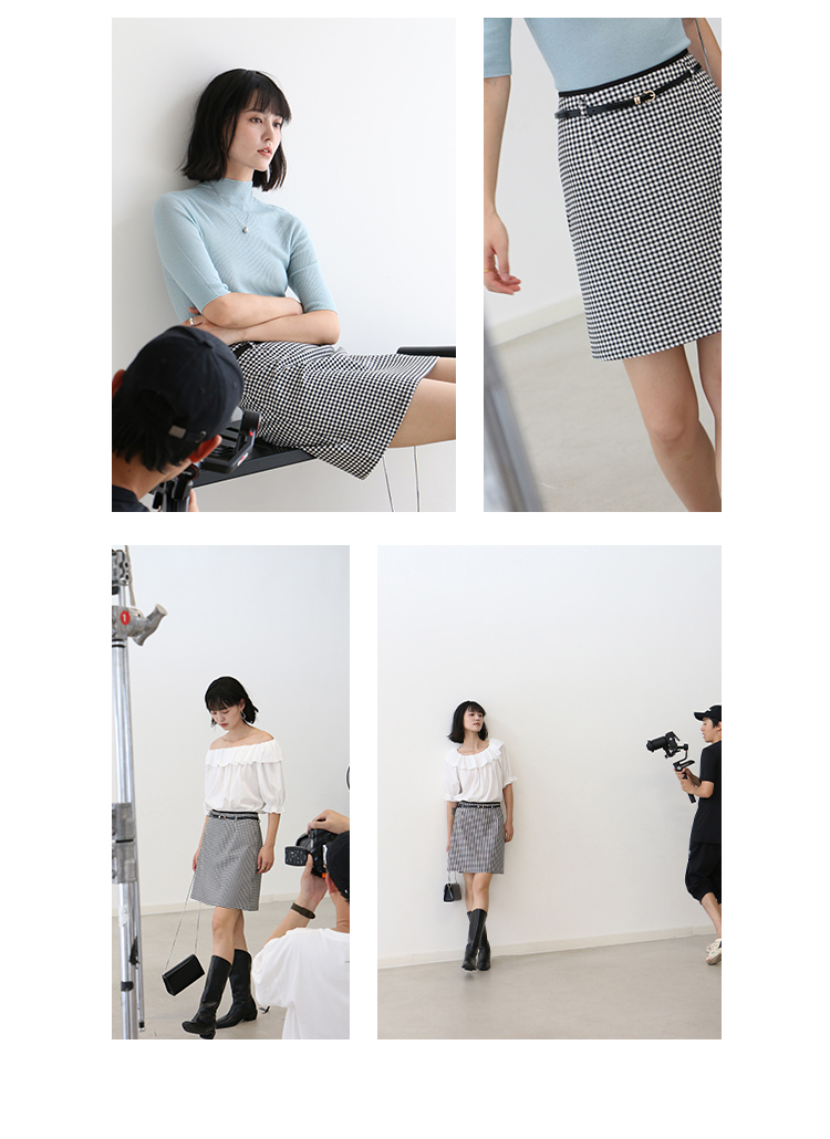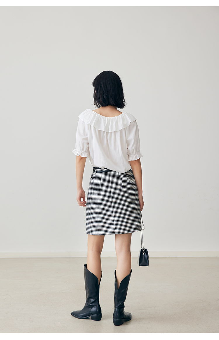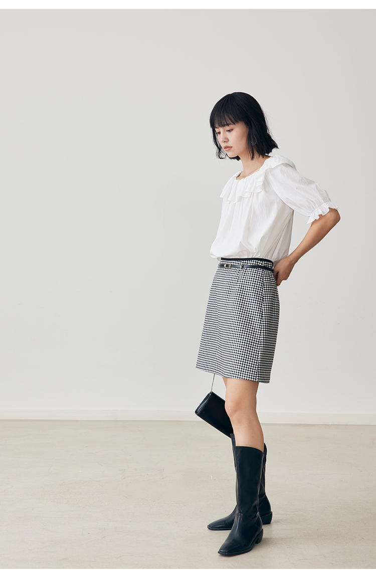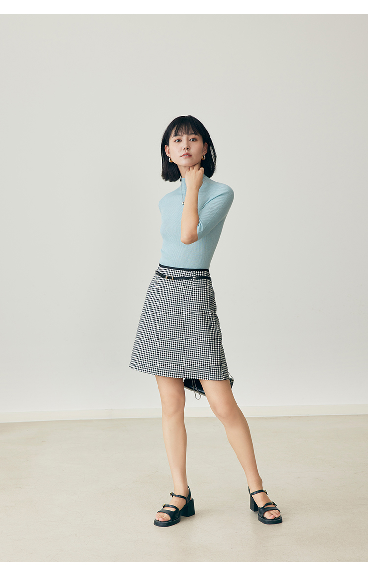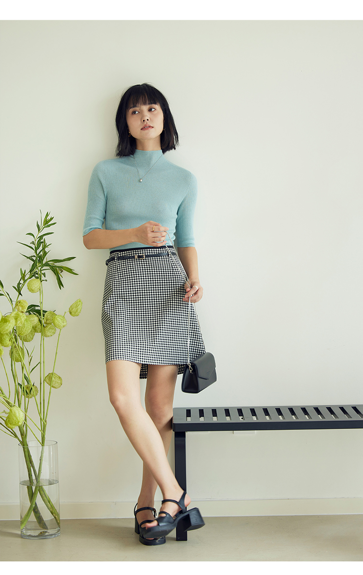 HeyDress法式黑白格纹半身裙女夏季高腰复古半裙优雅气质裙子