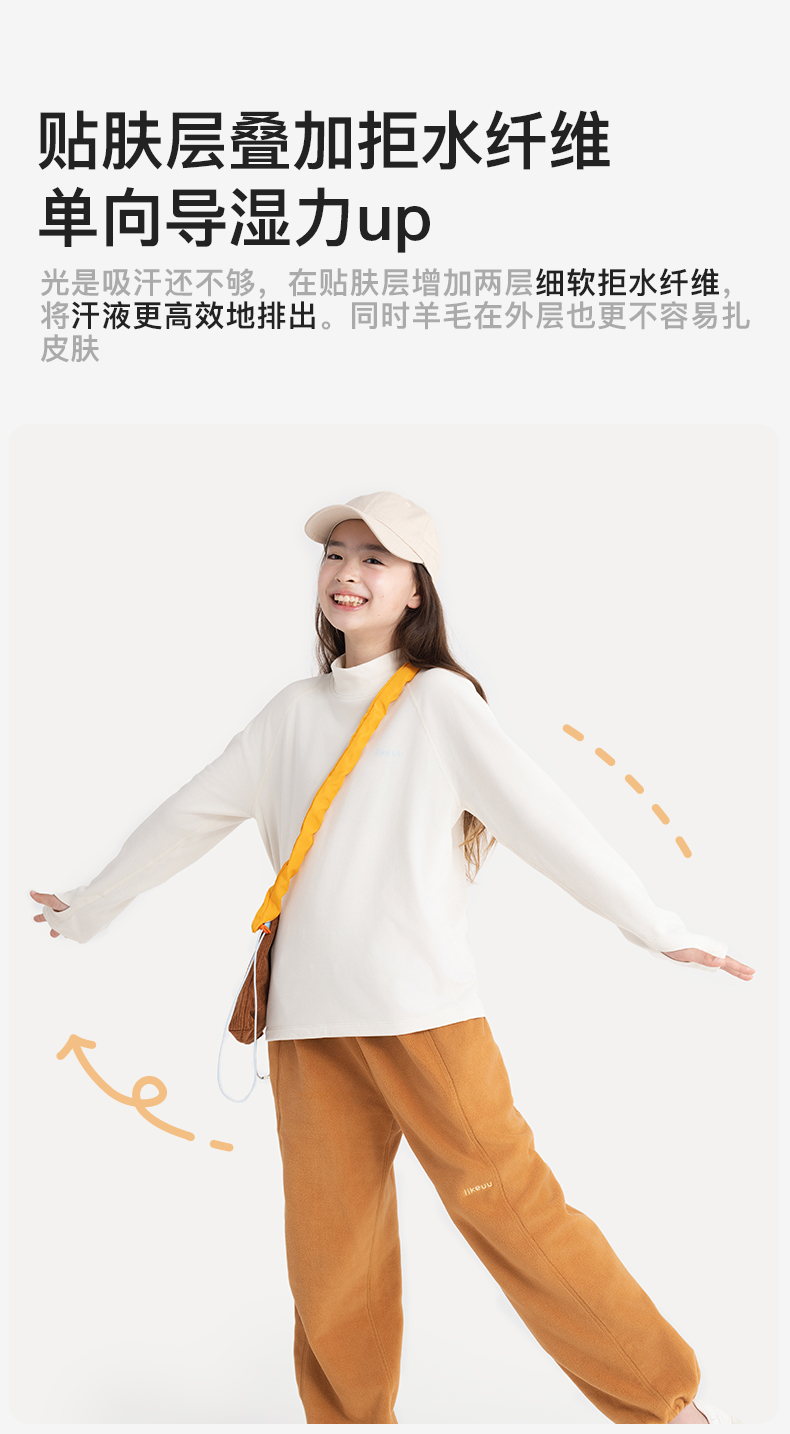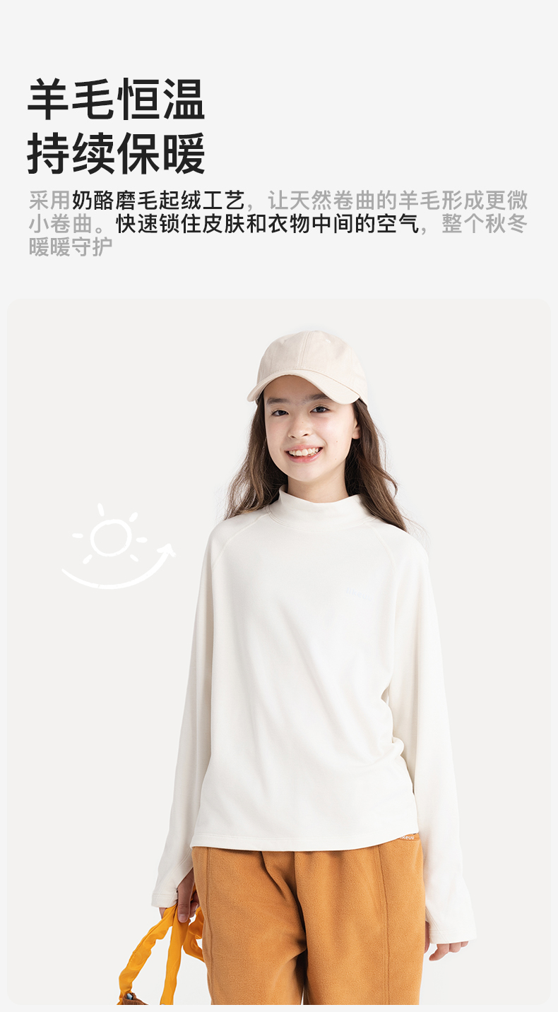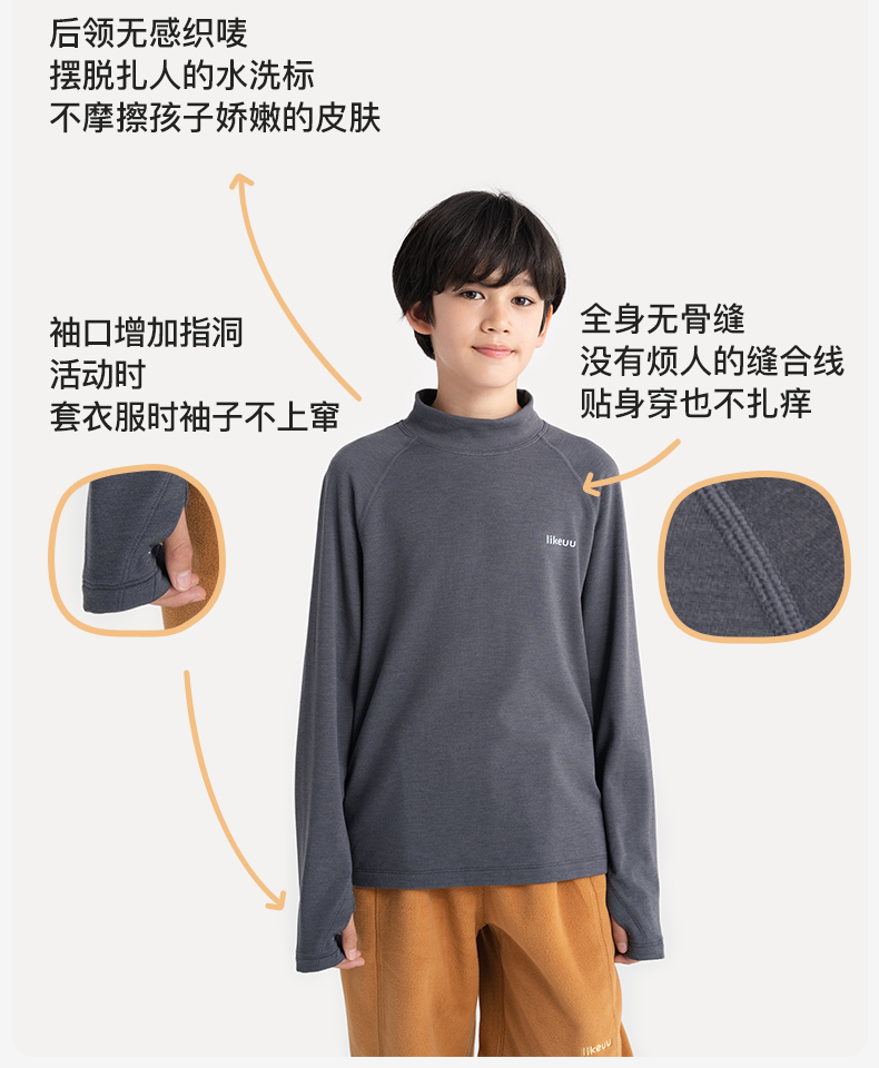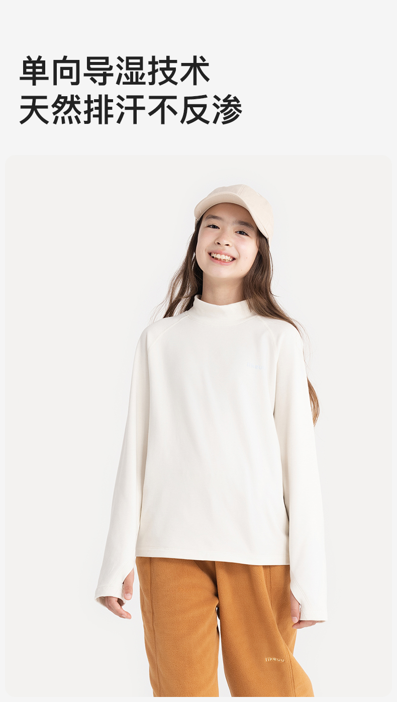 likeuu儿童T恤长袖男女大童美利奴羊毛排汗秋冬保暖A类吸湿透气ZY
