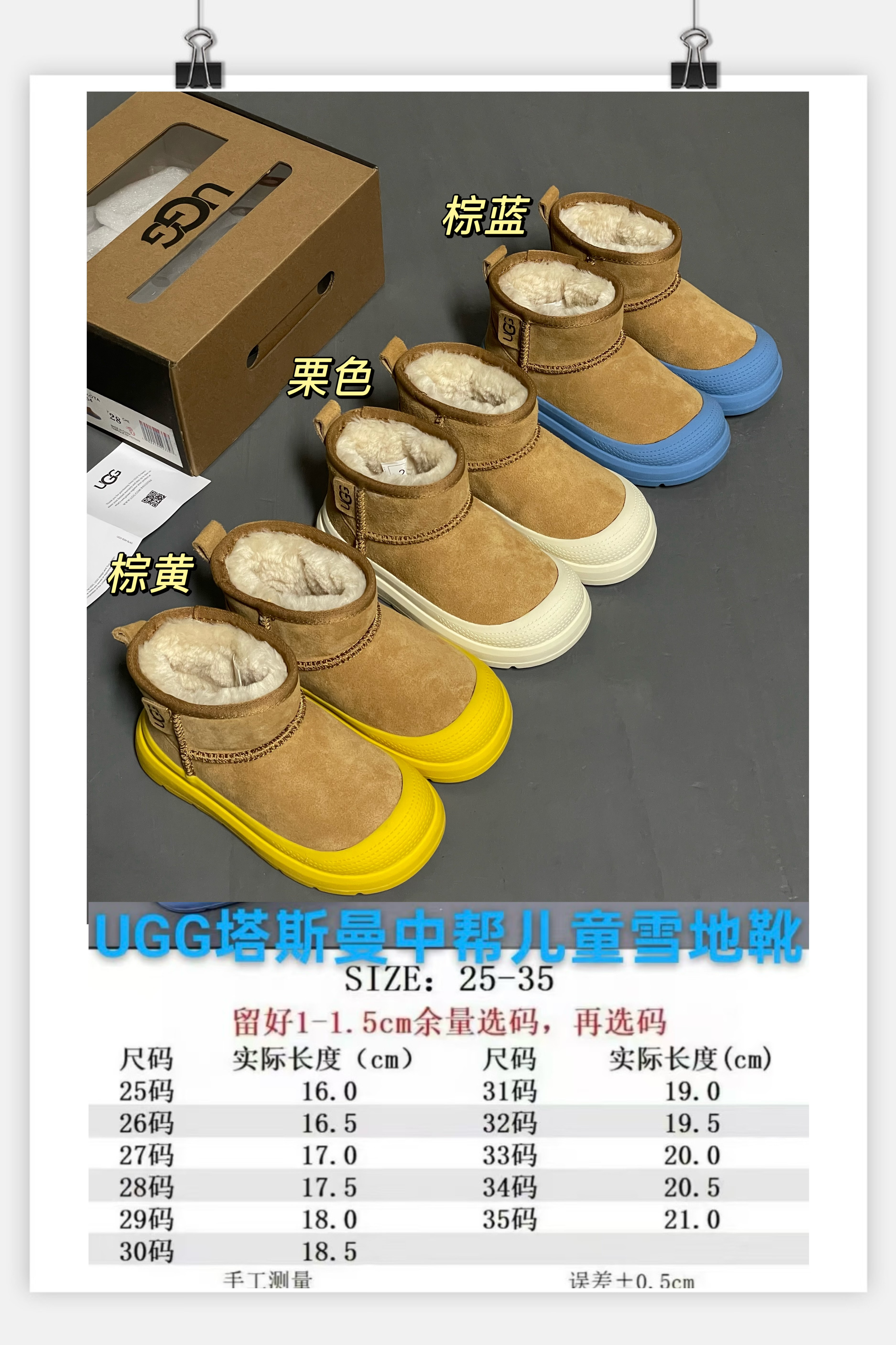 莞产 【童鞋款】‼️UG&G王一博同款儿童中帮雪地靴 经典UGG明星款式 中帮款式设计, 保暖防风 羊毛一体系列,质感满满 耐磨防踢防滑大底,脚感超赞 尺码:25-35(详情🔎尺码表)