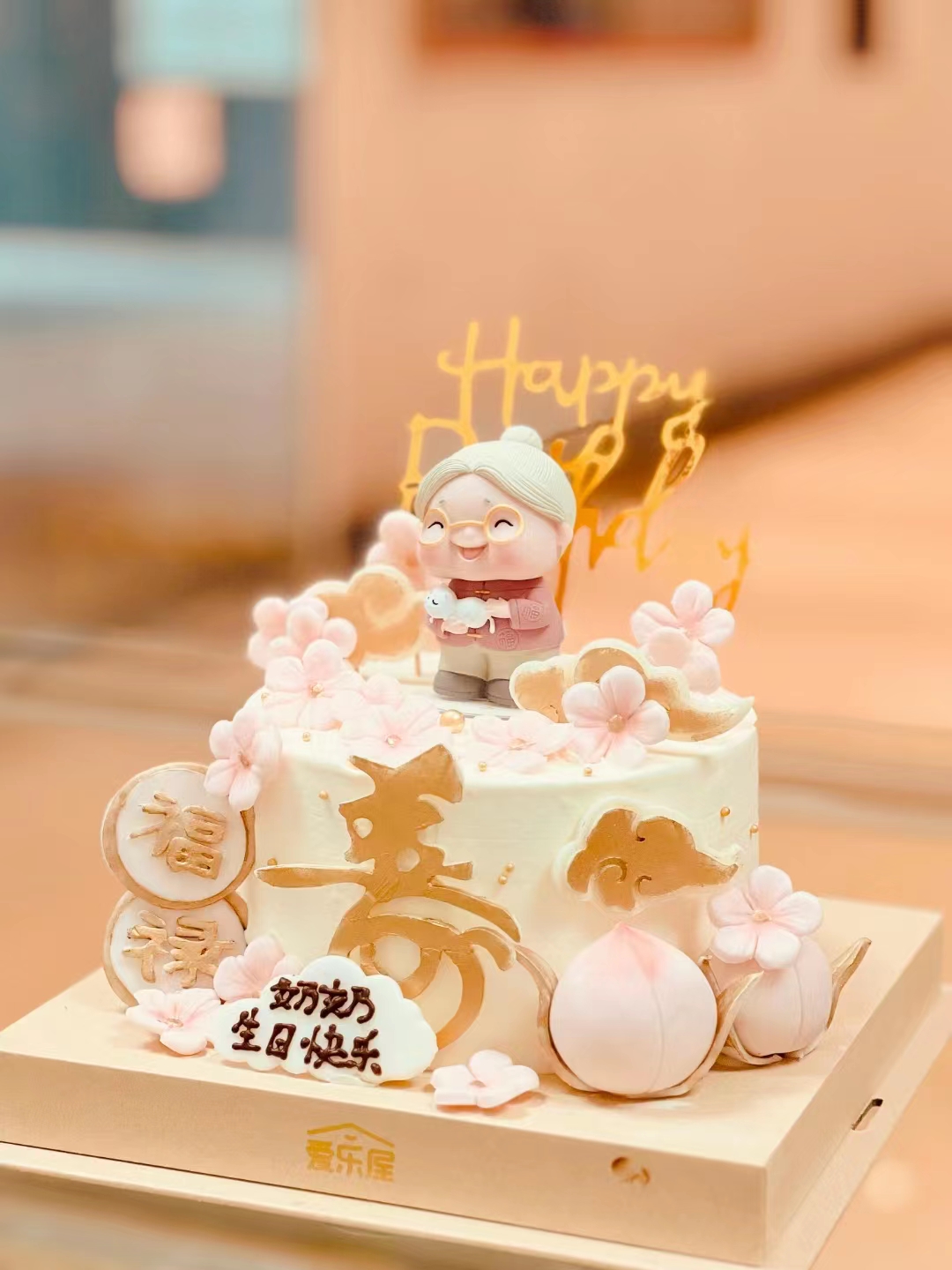 粉色樱花寿桃祝寿蛋糕